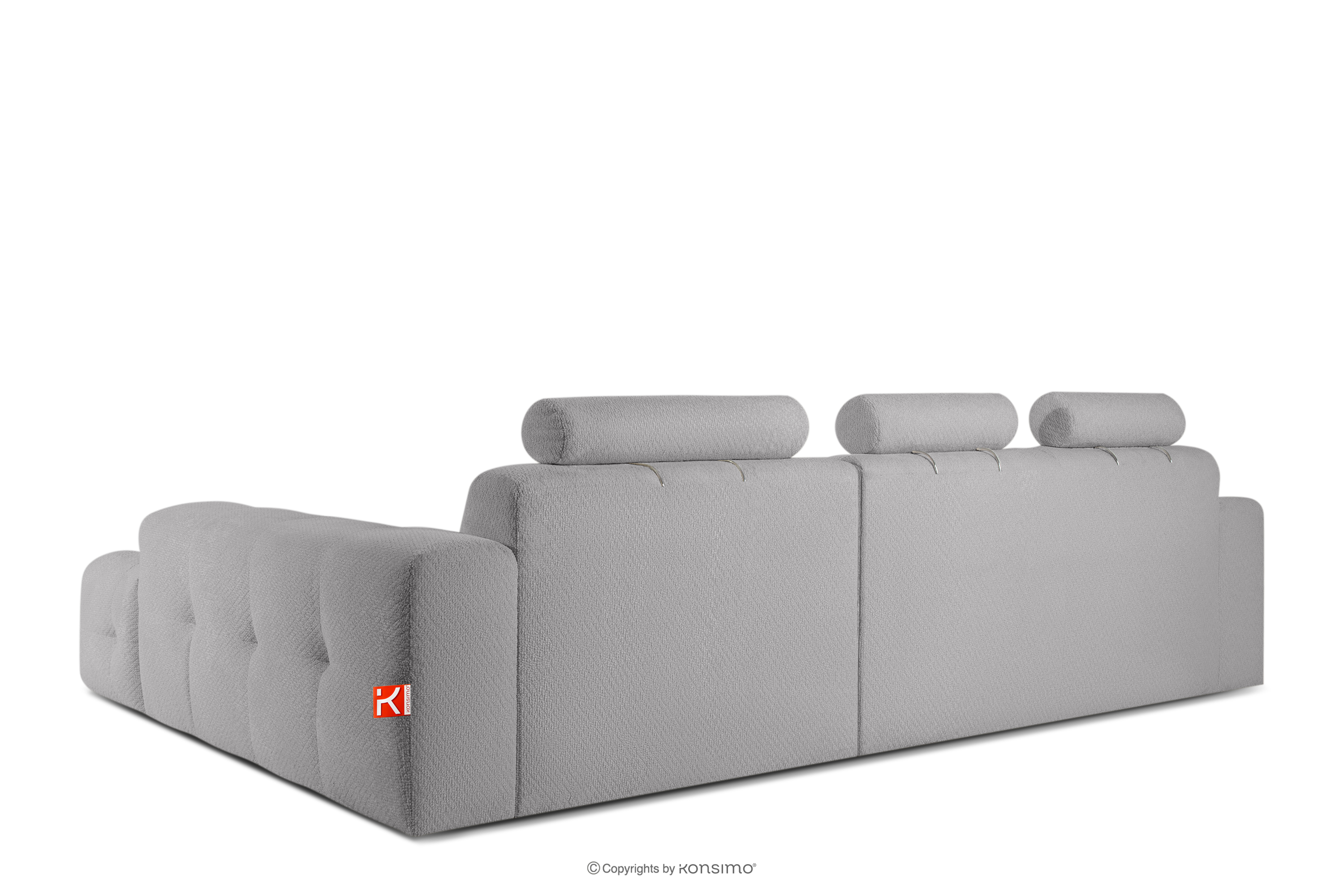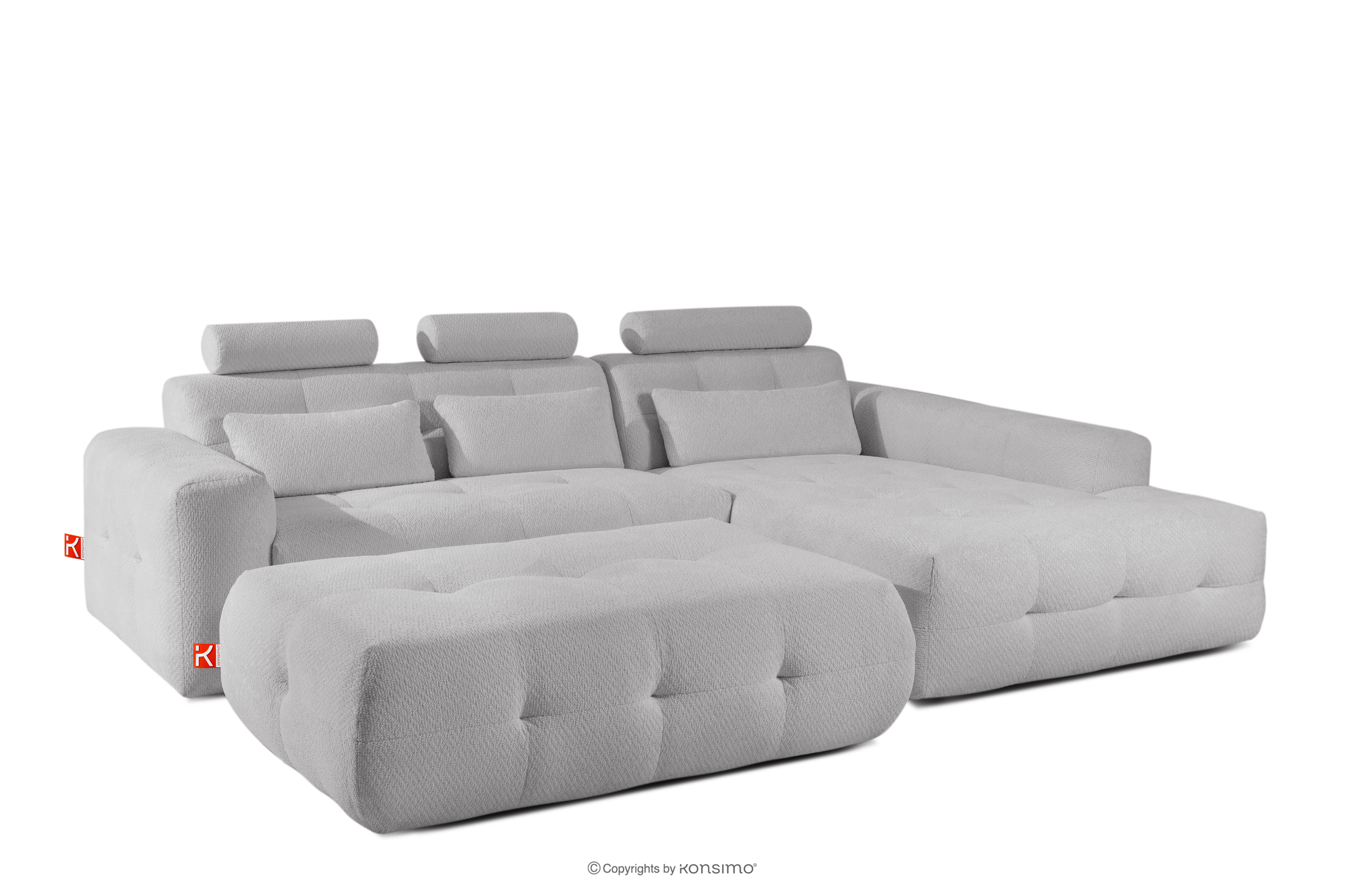 ALIGRA Zestaw mebli do salonu narożnik prawy i puf w kaninie szenil z pikowaniem jasny szary