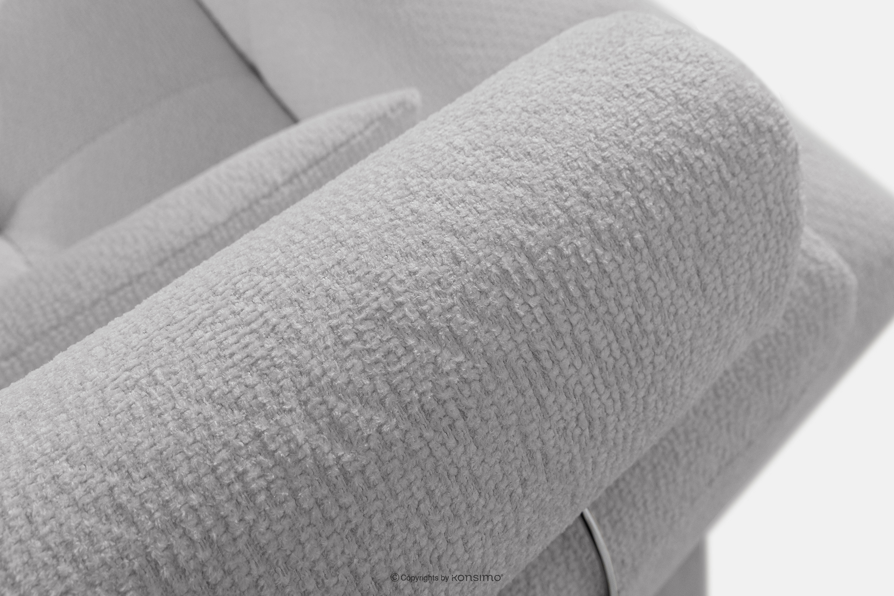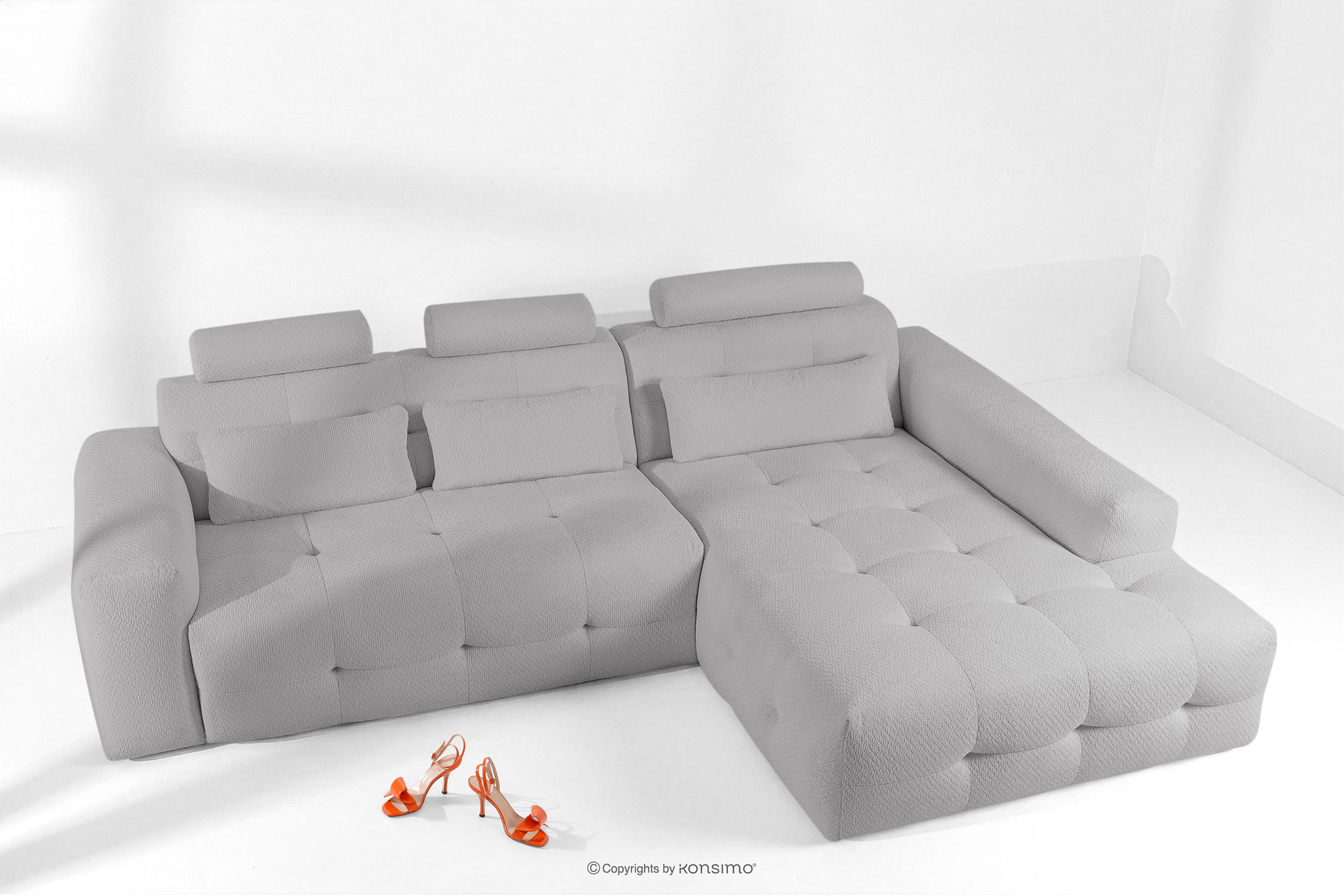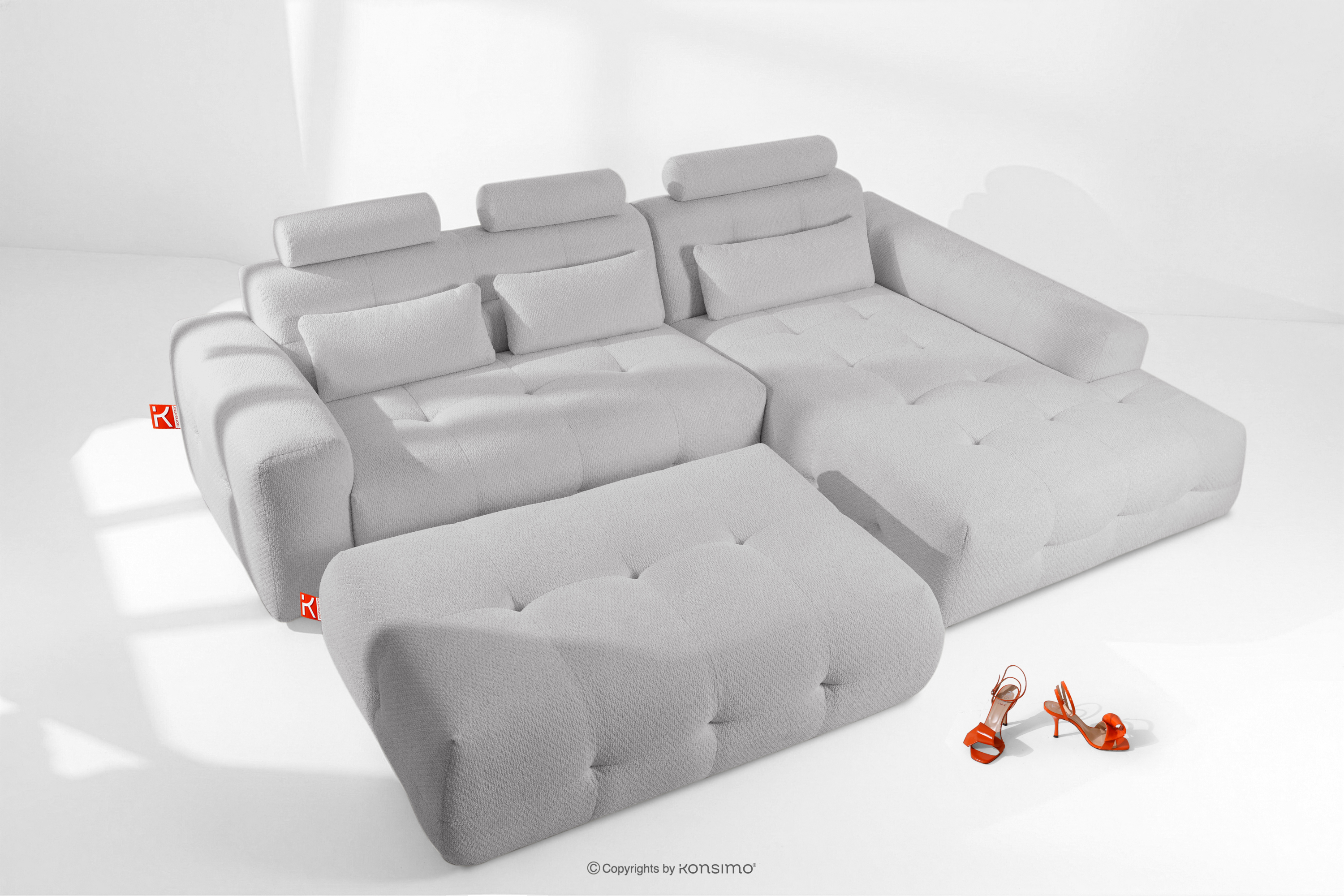 ALIGRA zobacz całą kolekcję Zestaw mebli do salonu narożnik prawy i puf w kaninie szenil z pikowaniem jasny szary- kolor jasny szary