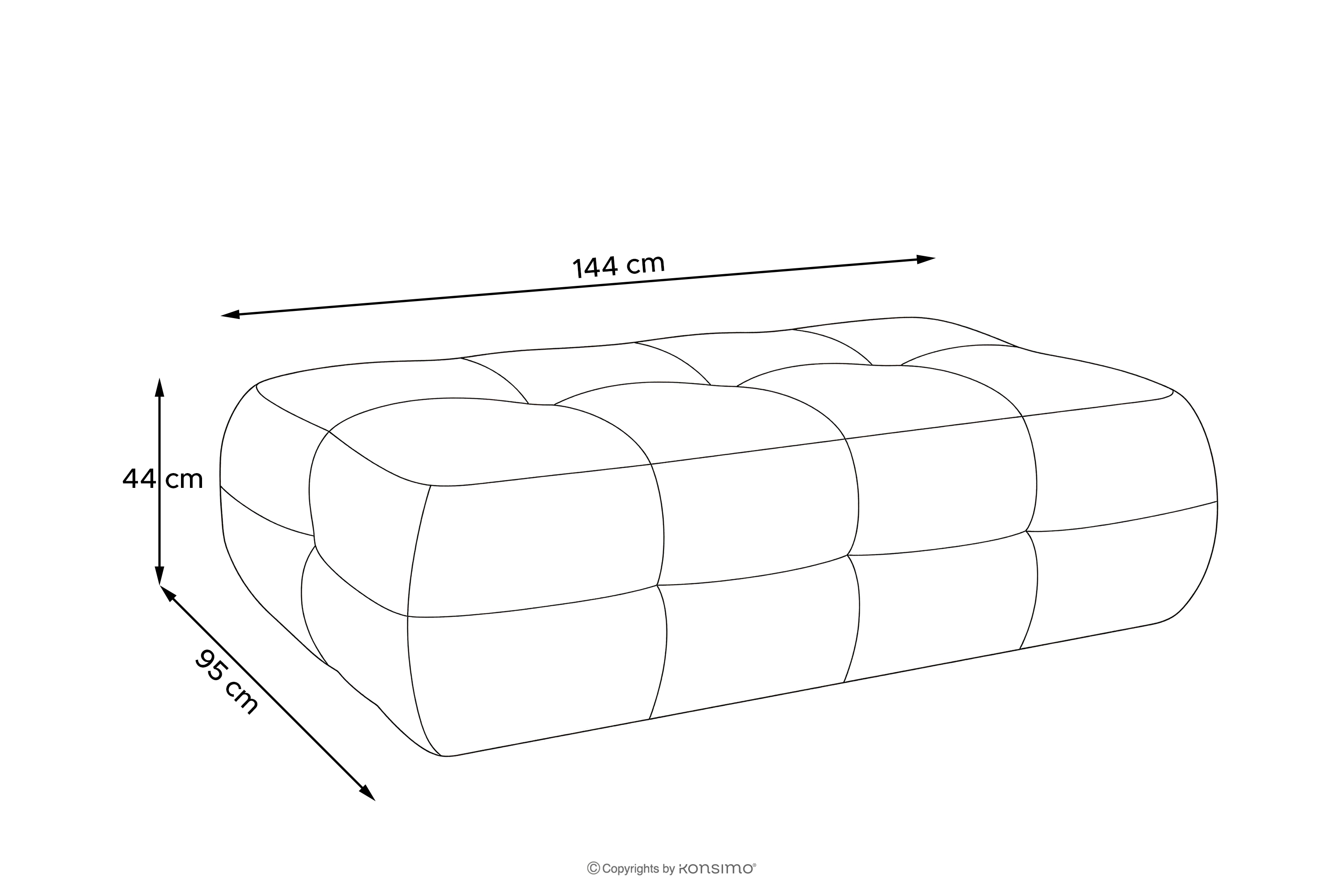 - Wymiary pufy (cm): 144x44x95