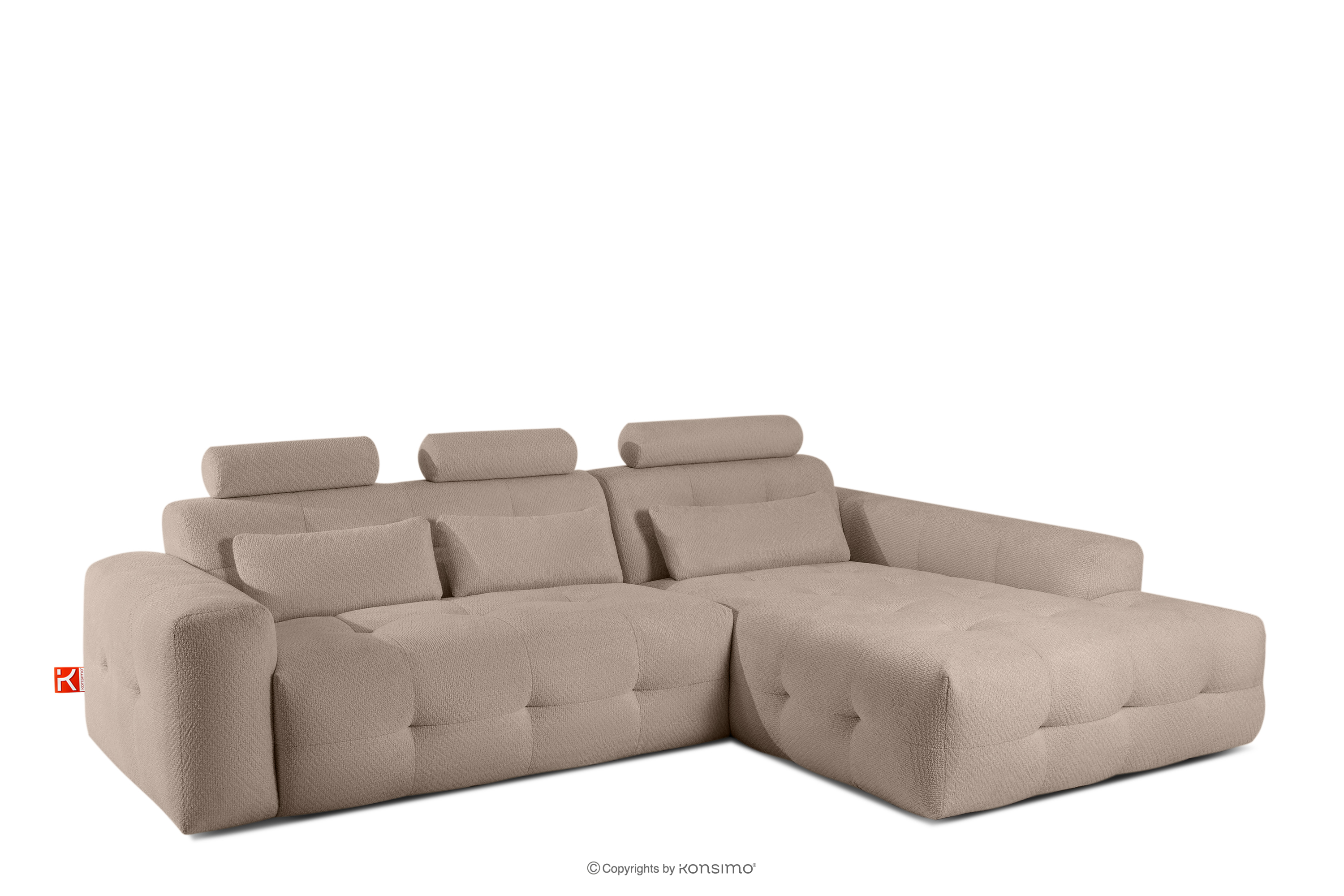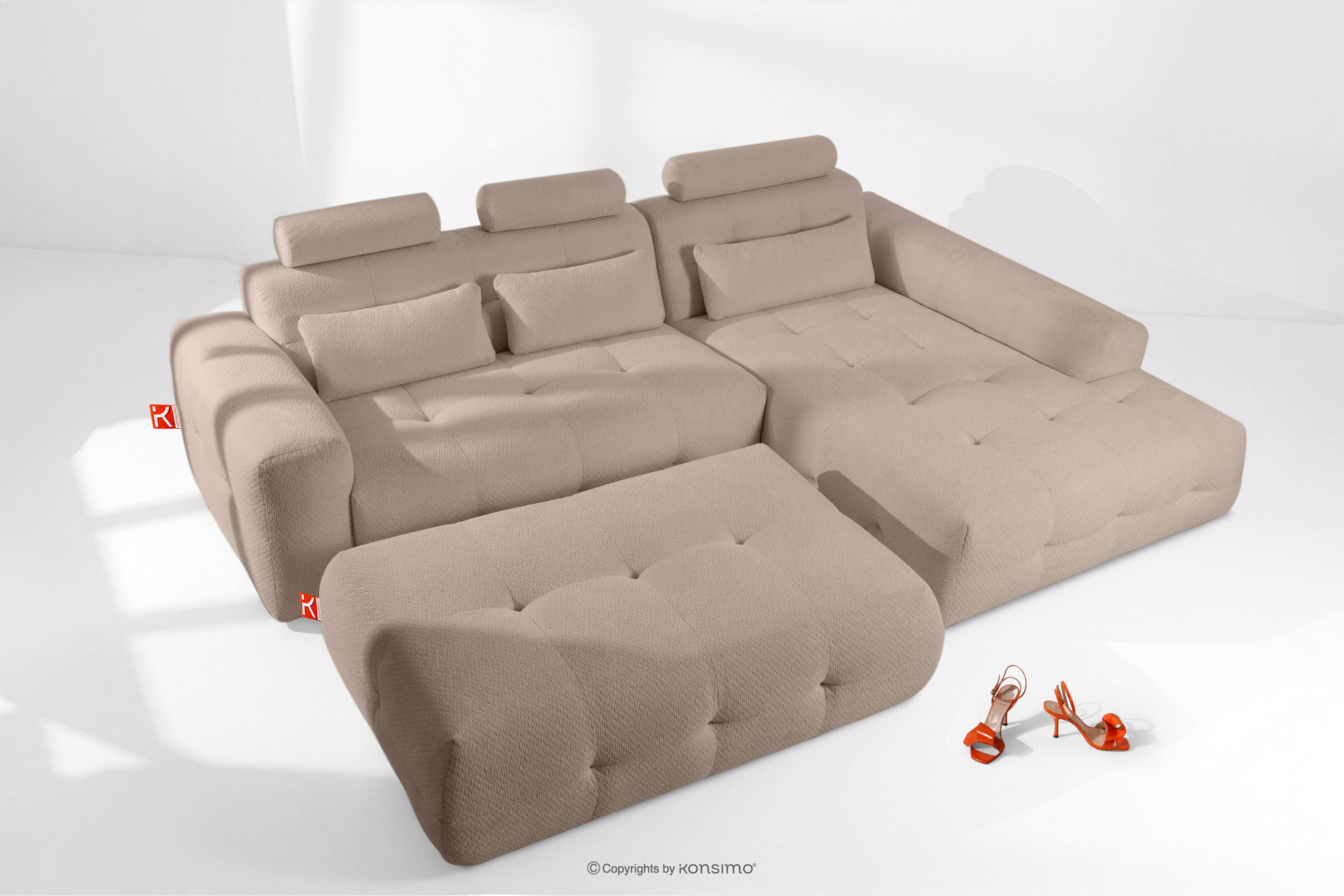 ALIGRA Zestaw mebli do salonu narożnik prawy i puf w kaninie szenil z pikowaniem jasny brązowy