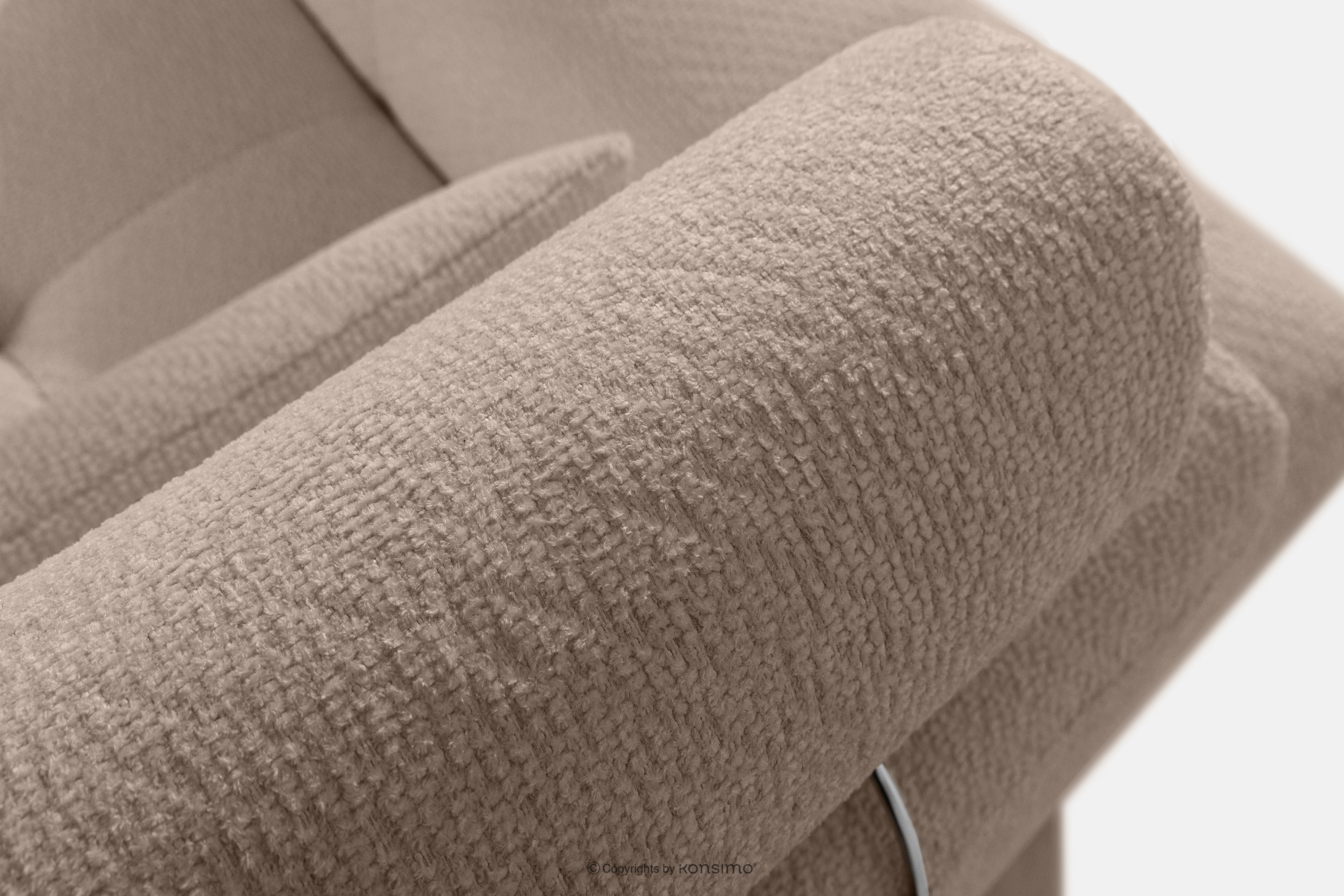 ALIGRA zobacz całą kolekcję Zestaw mebli do salonu narożnik prawy i puf w kaninie szenil z pikowaniem jasny brązowy- kolor jasny brązowy