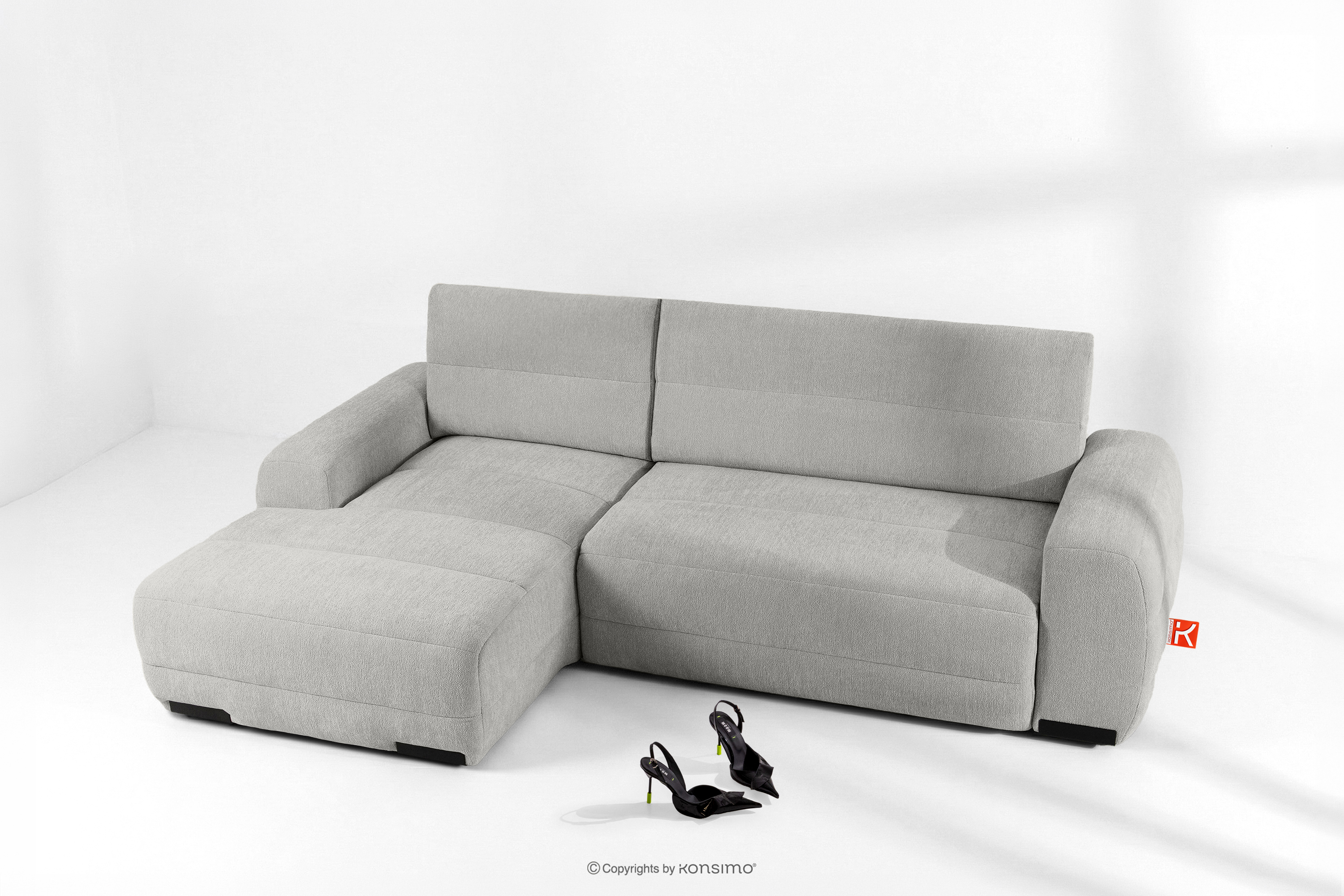 BLUME zobacz całą kolekcję Nowoczesny narożnik w tkaninie szenilowej lewy jasny szary- kolor jasny szary