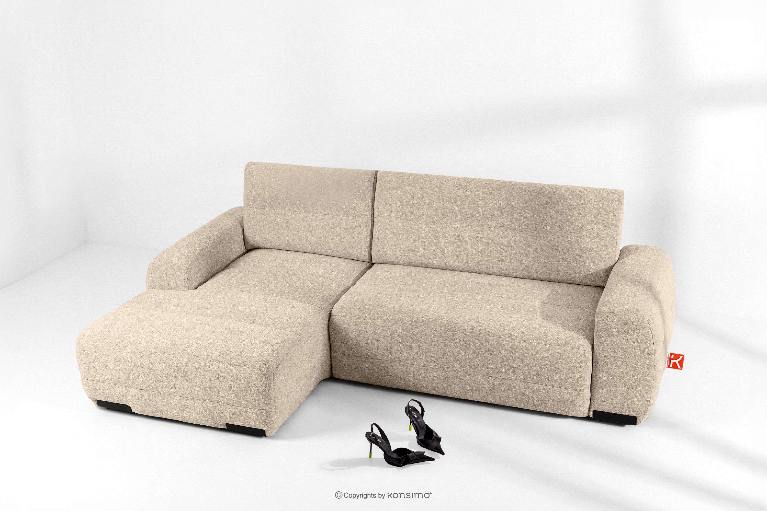 BLUME zobacz całą kolekcję Nowoczesny narożnik w tkaninie szenilowej lewy kremowy- kolor kremowy