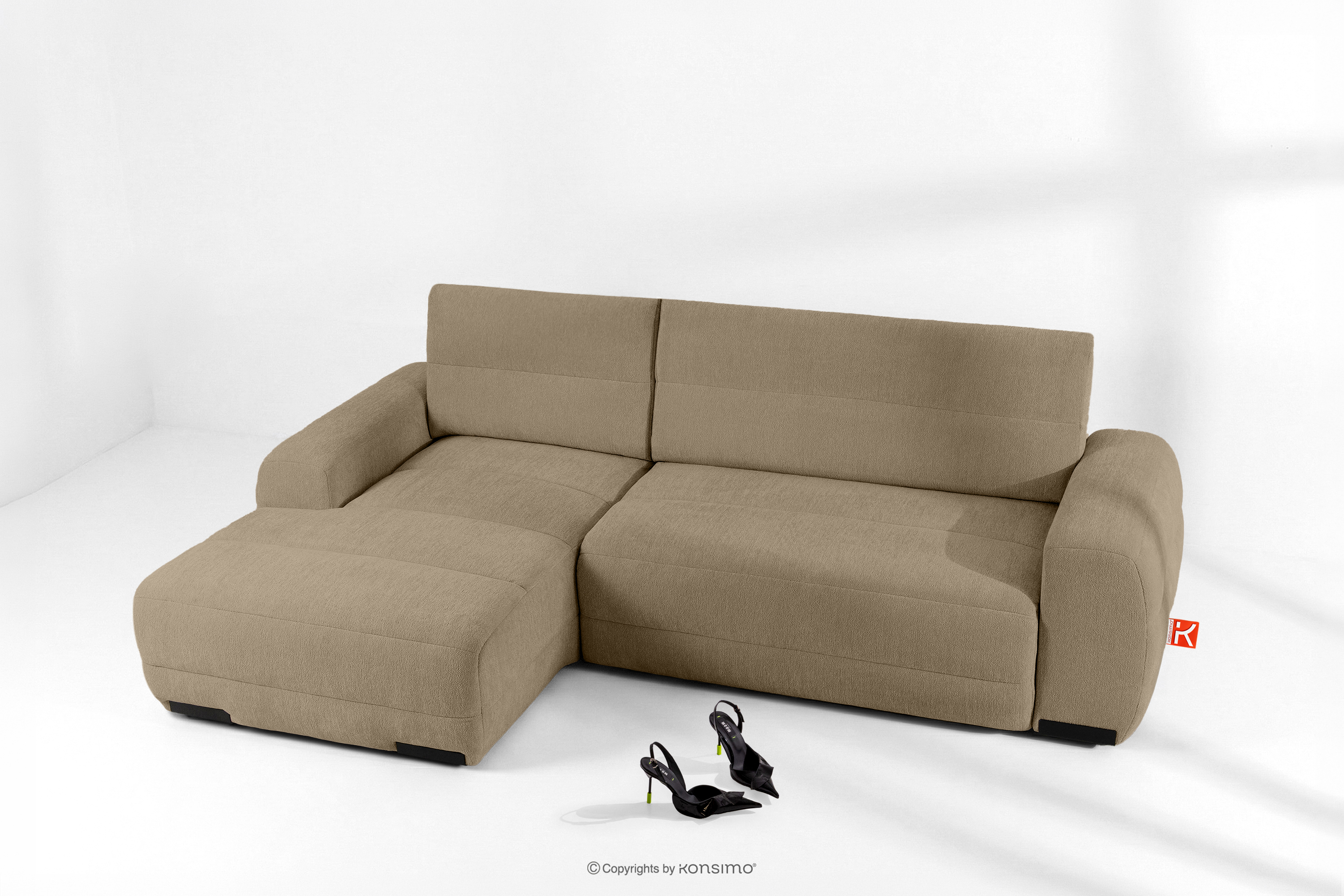 BLUME zobacz całą kolekcję Nowoczesny narożnik w tkaninie szenilowej lewy ciemny beżowy- kolor ciemny beżowy