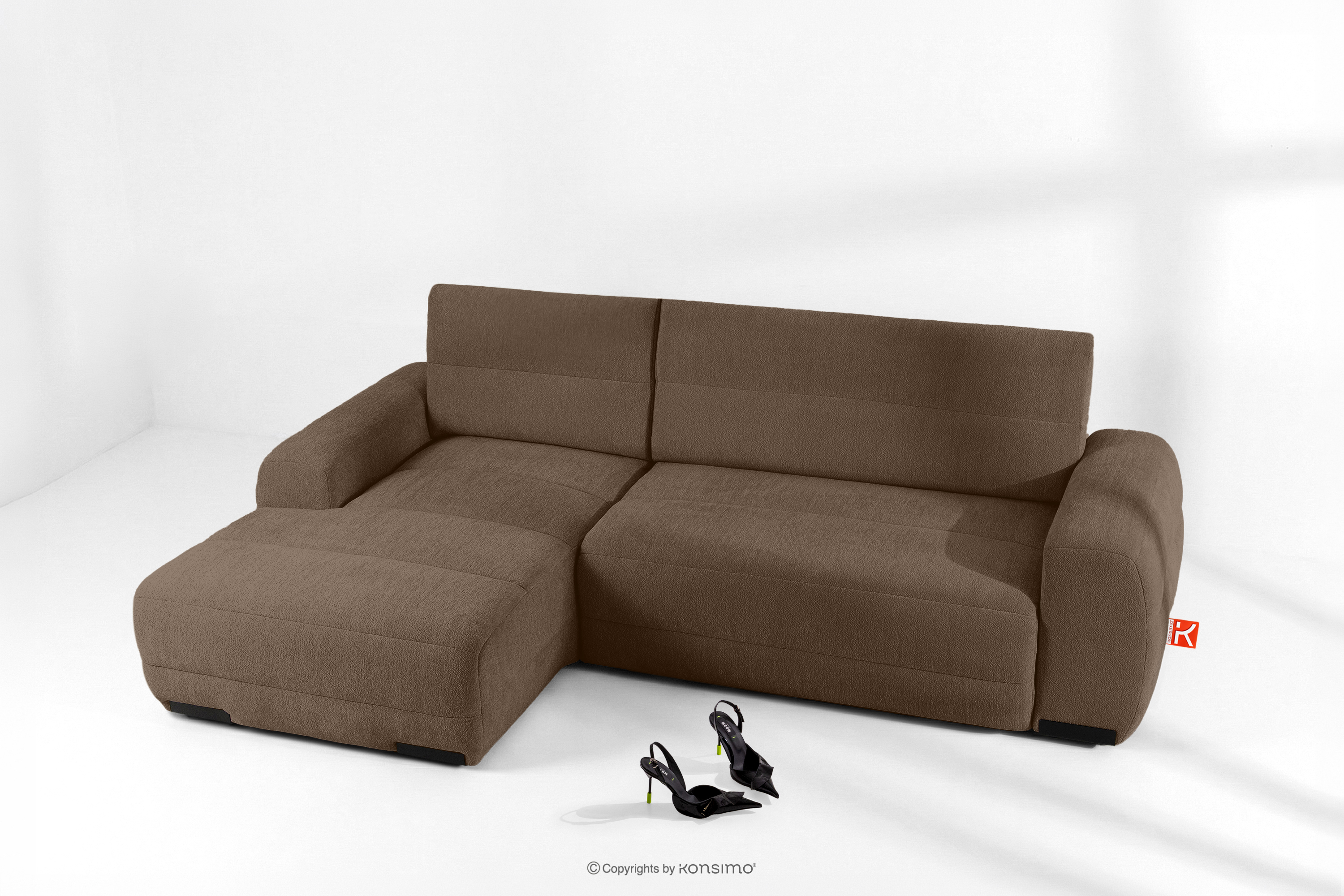 BLUME zobacz całą kolekcję Nowoczesny narożnik w tkaninie szenilowej lewy brązowy- kolor brązowy
