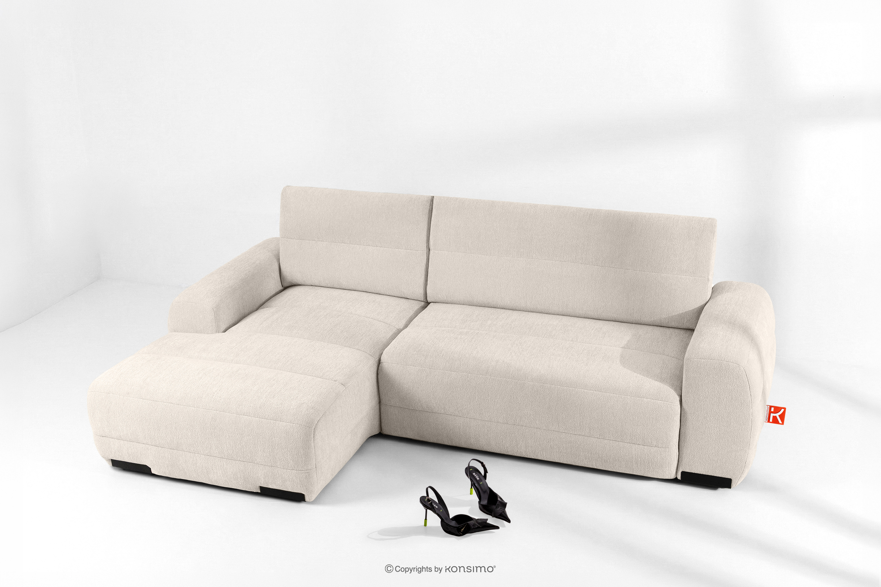 BLUME zobacz całą kolekcję Nowoczesny narożnik w tkaninie szenilowej lewy ecru- kolor ecru