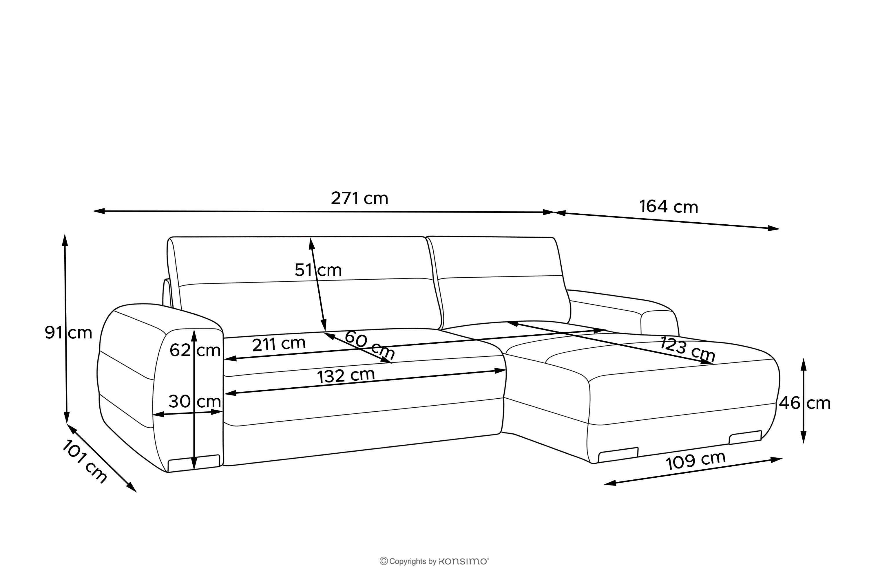 BLUME zobacz całą kolekcję Nowoczesny narożnik w tkaninie szenilowej prawy grafitowy- kolor grafitowy
