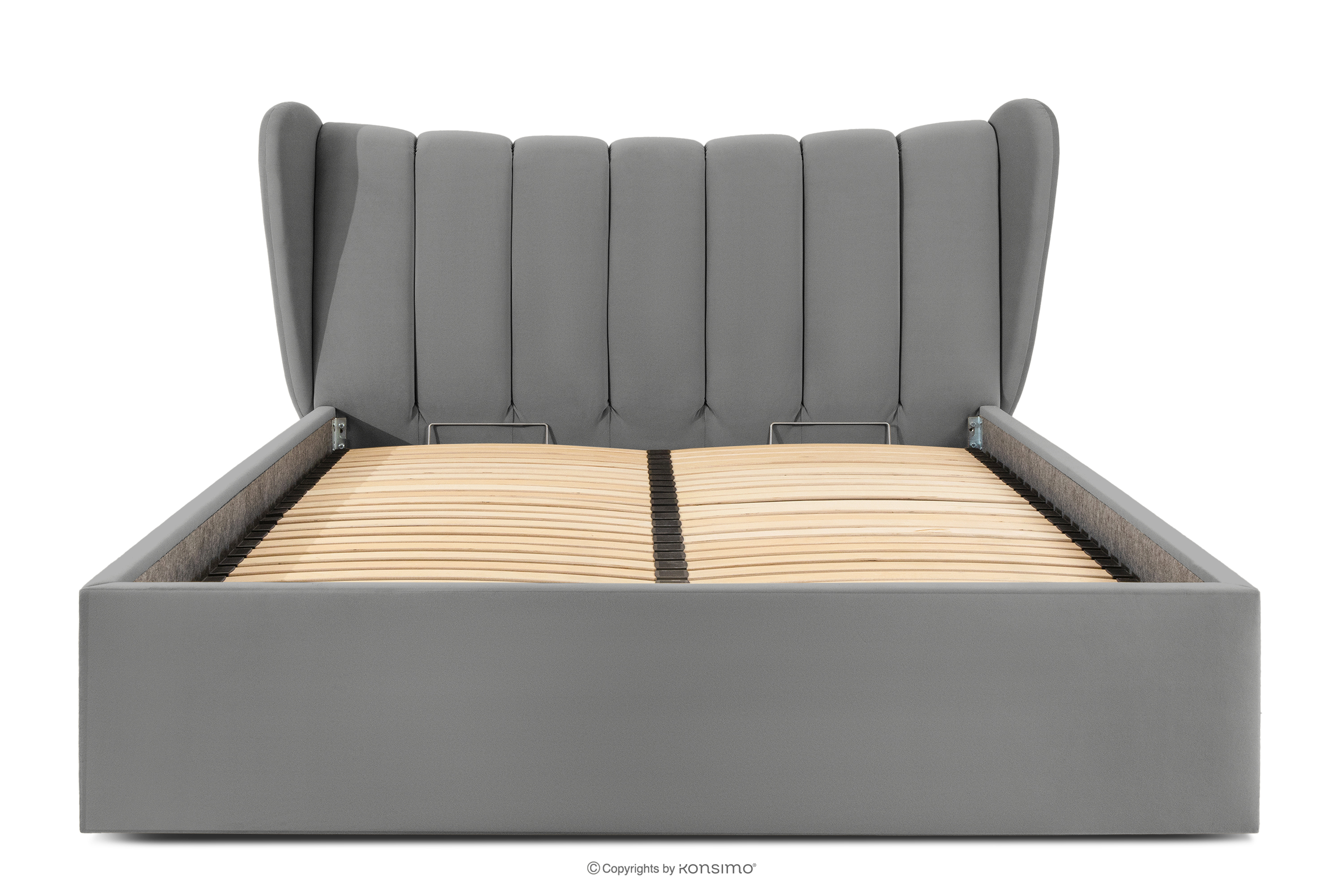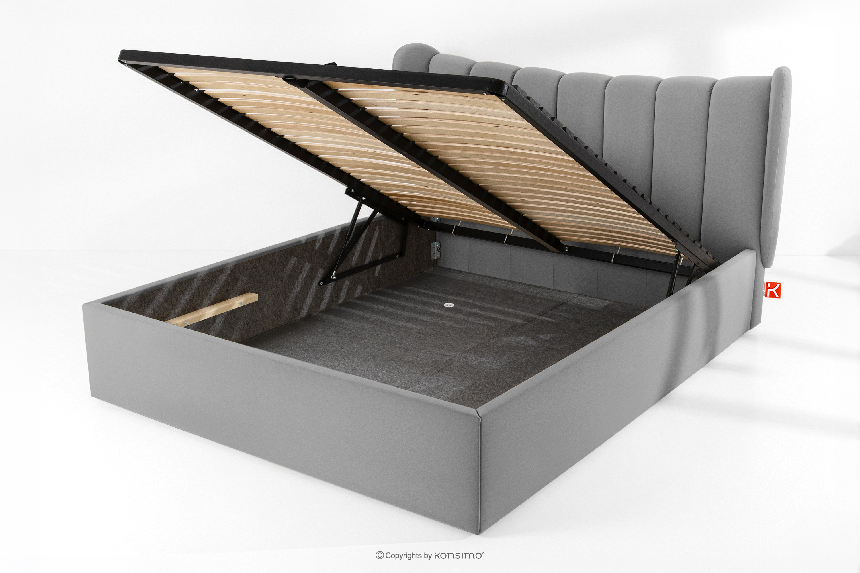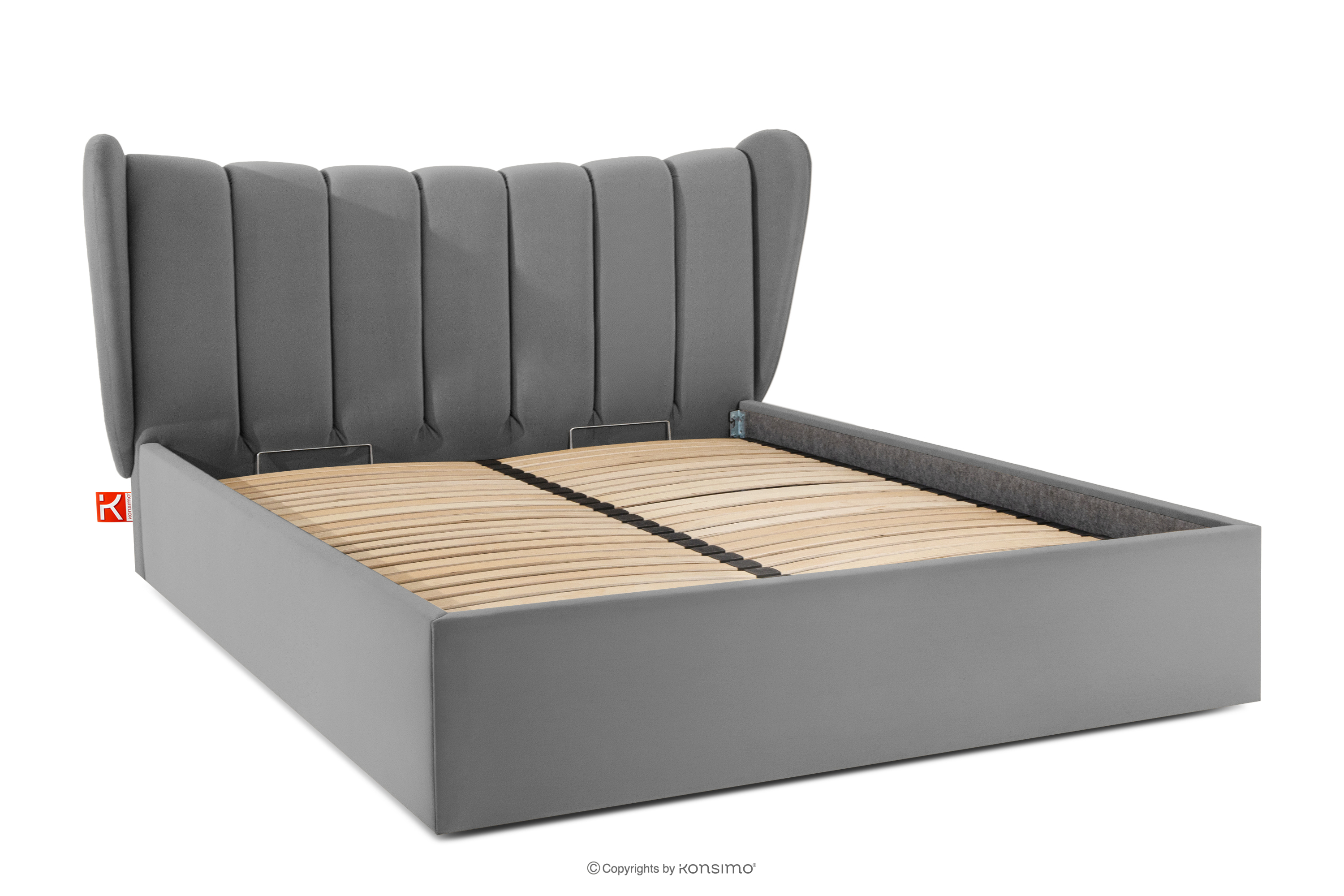 GIZO zobacz całą kolekcję Łóżko tapicerowane typu muszelka z pojemnikiem na pościel 160 cm jasny szary- kolor jasny szary