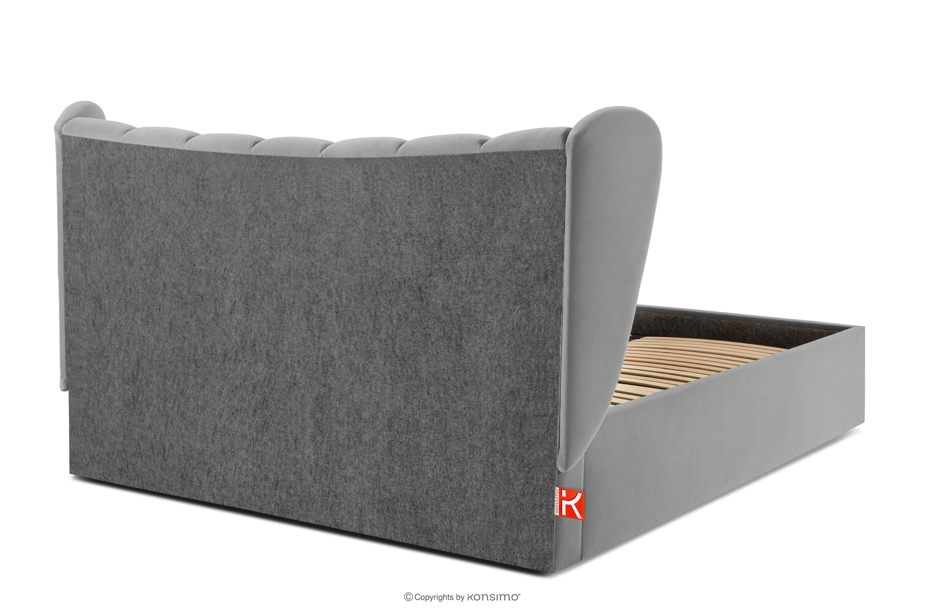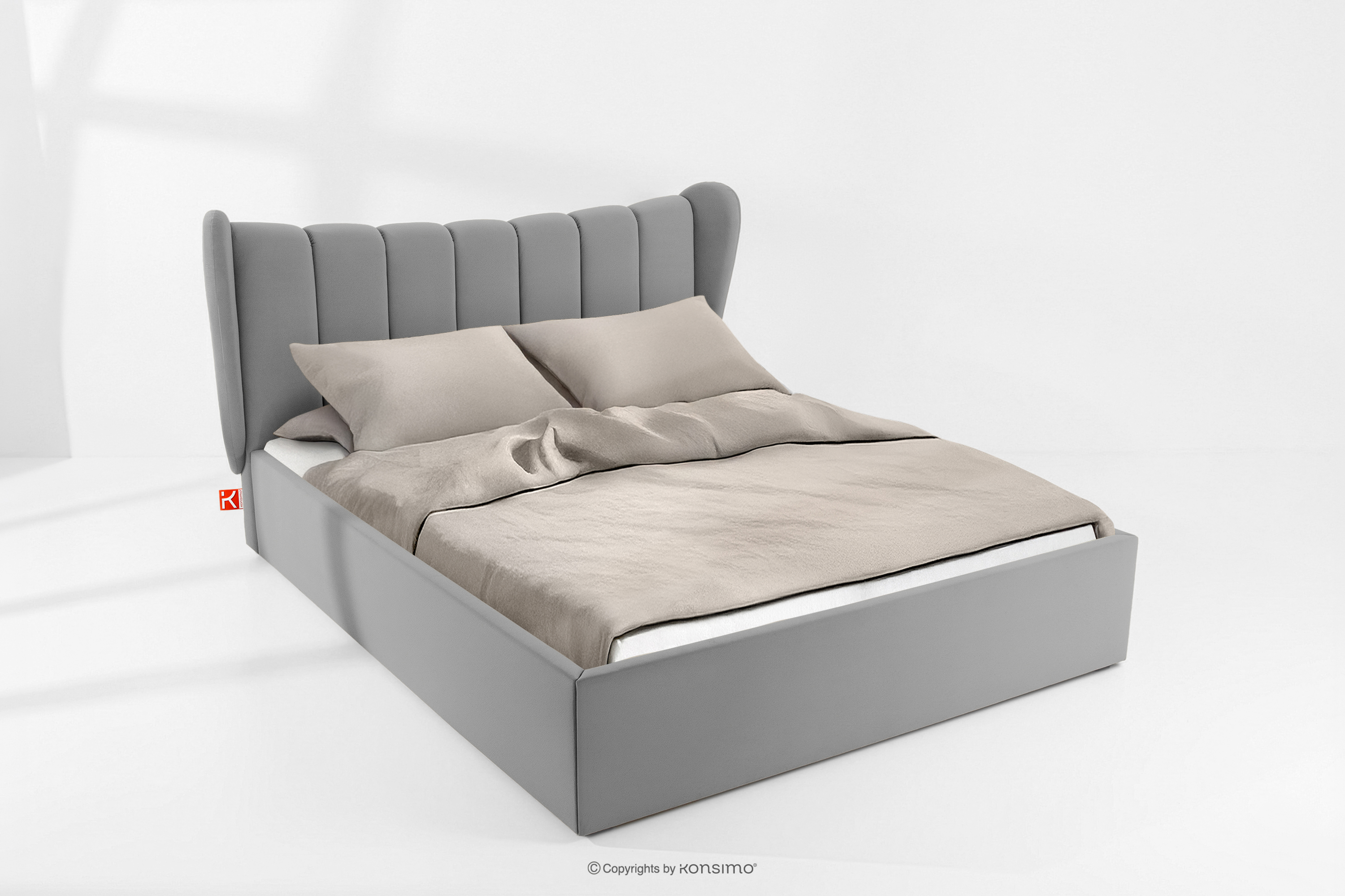 dla produktu Łóżko tapicerowane typu muszelka z pojemnikiem na pościel 160 cm jasny szary
