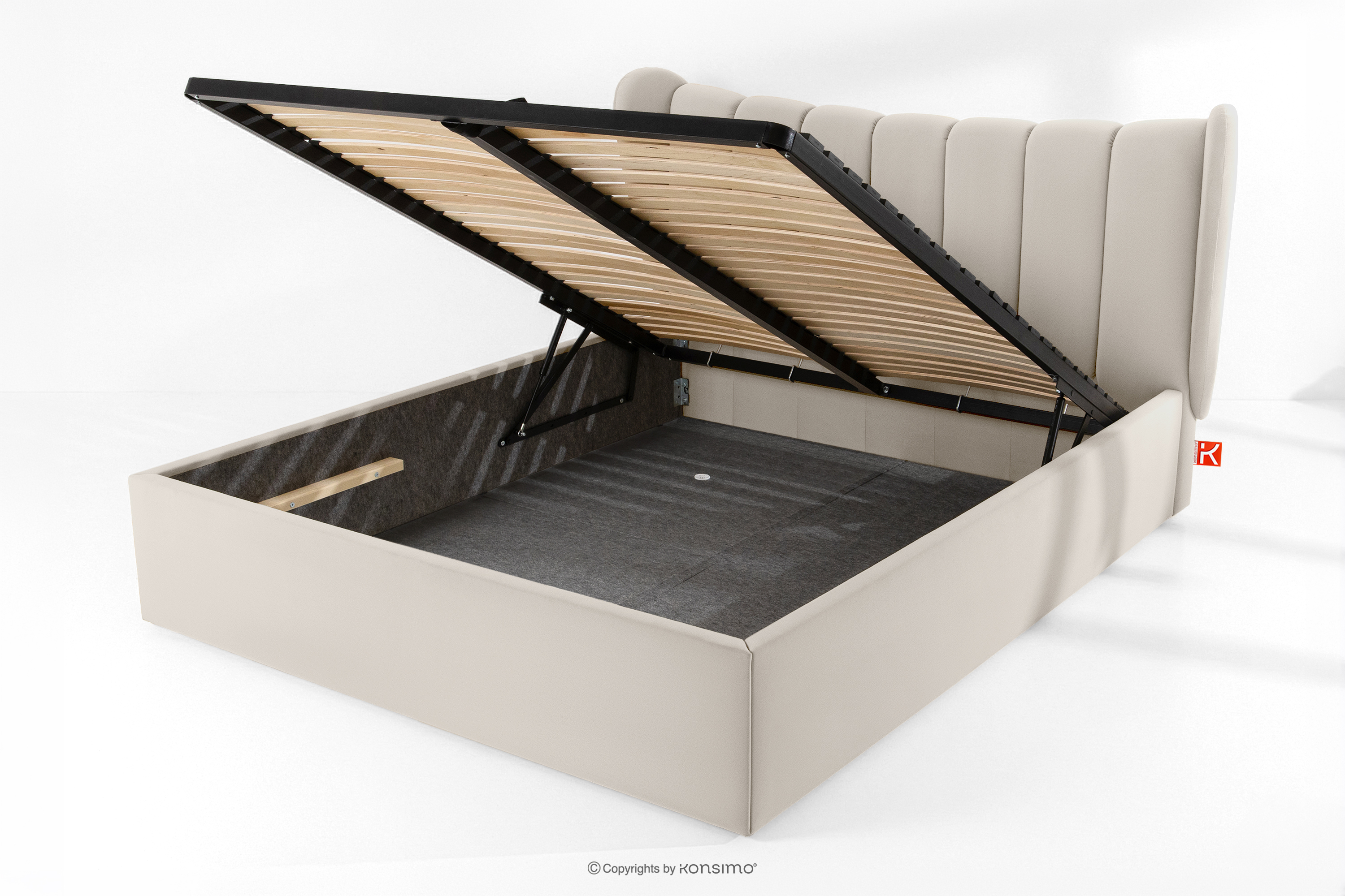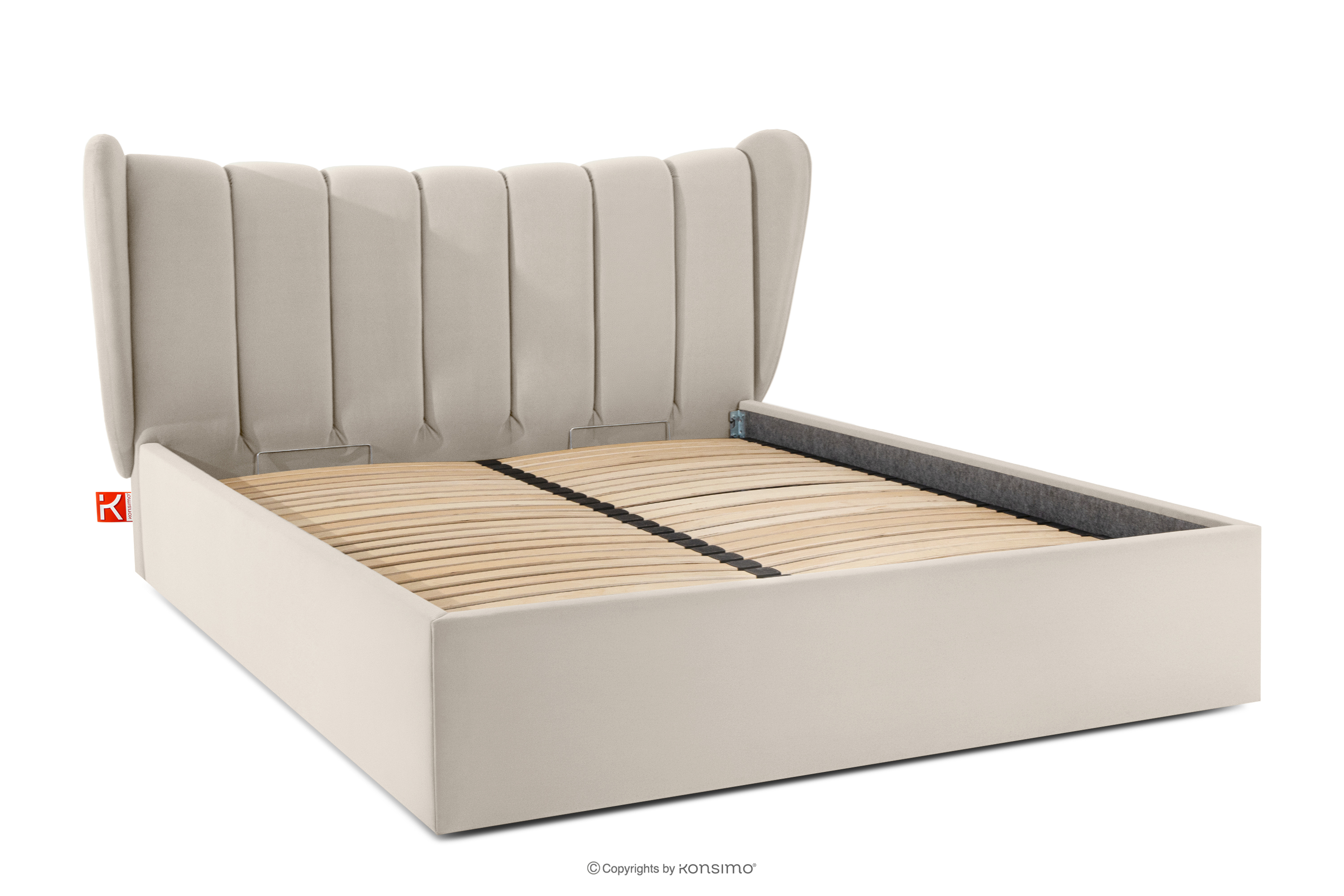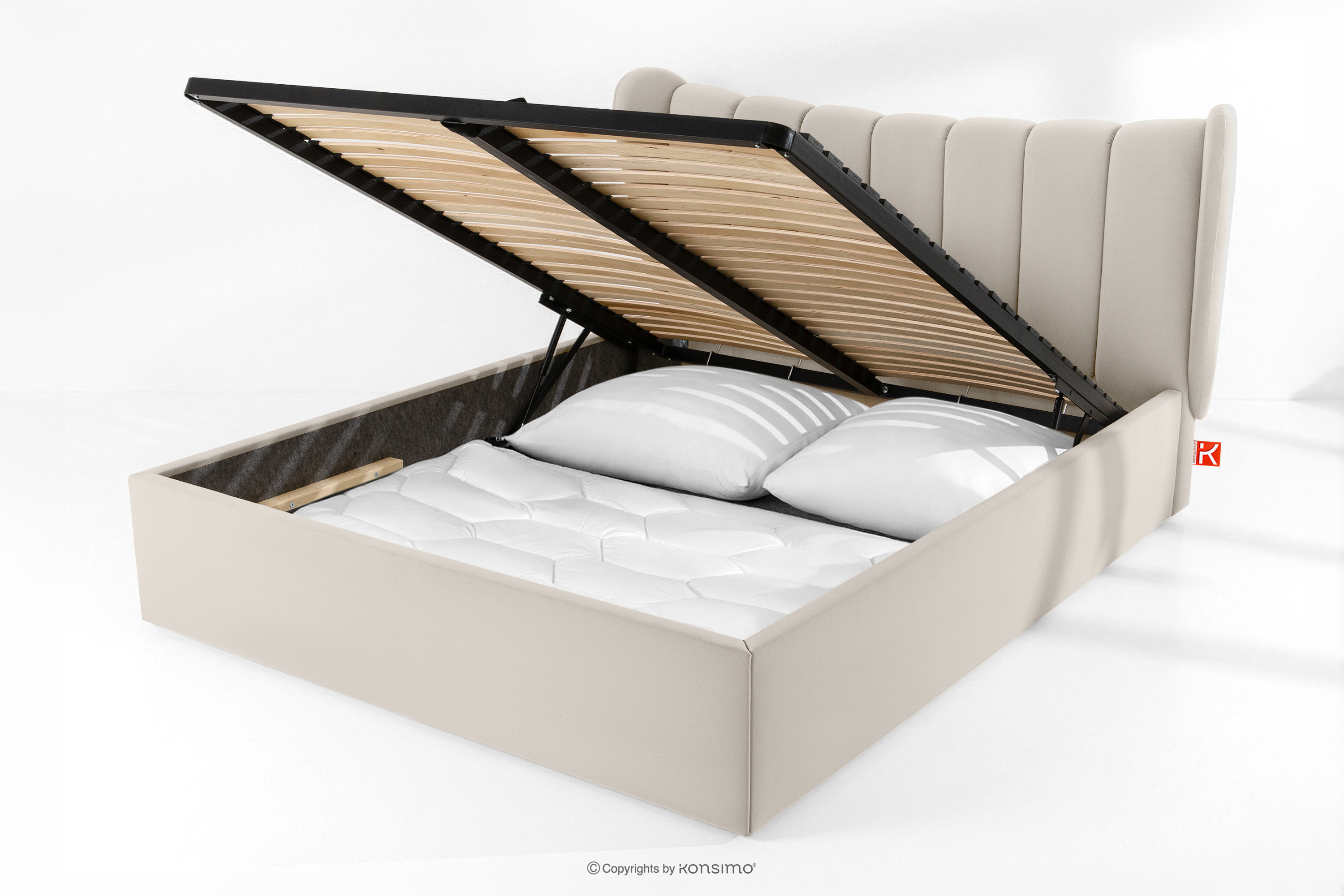 GIZO zobacz całą kolekcję Łóżko tapicerowane typu muszelka z pojemnikiem na pościel 160 cm kremowy- kolor kremowy
