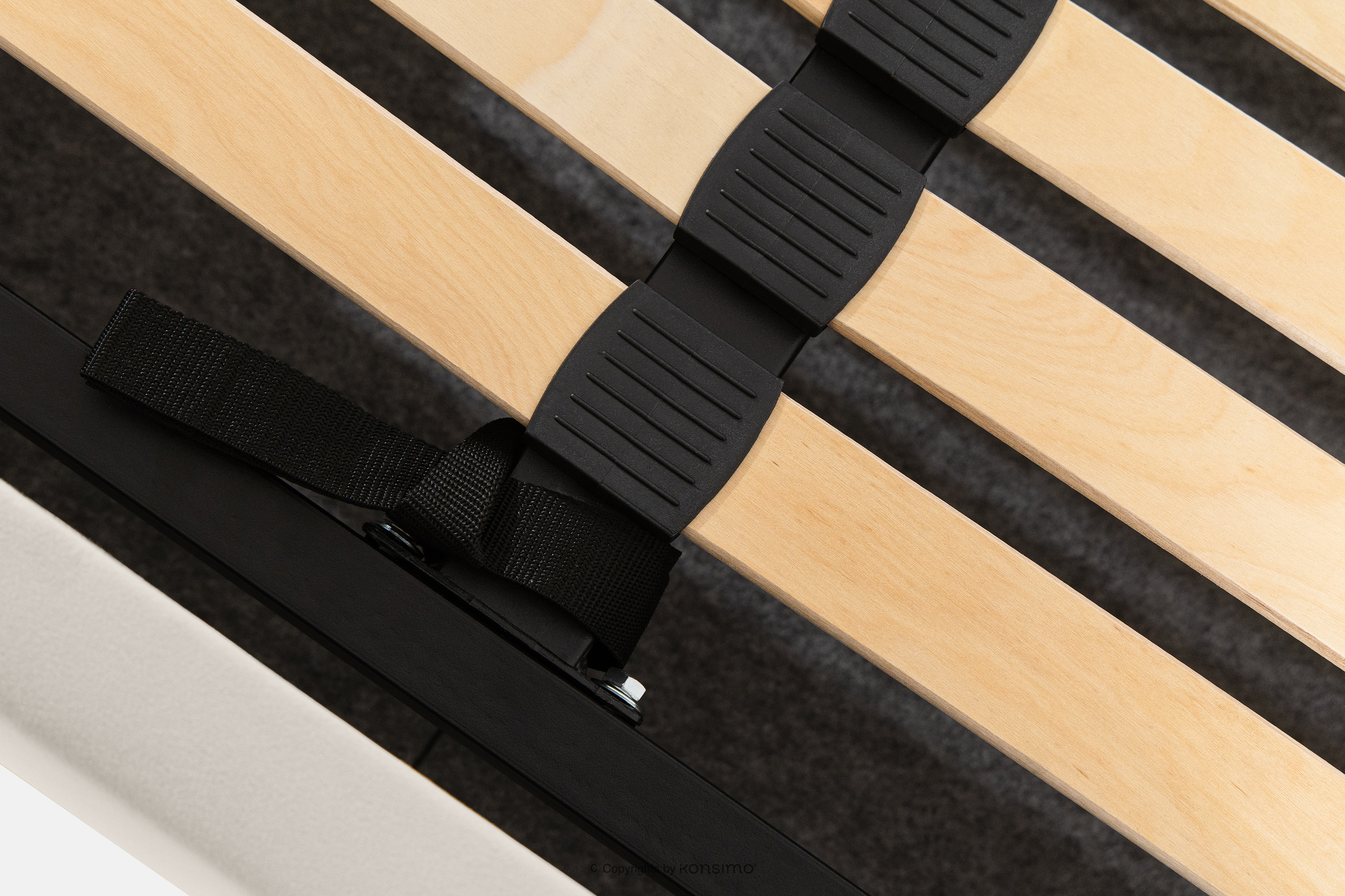 - Stelaż: metalowna rama, sprężynujące listwy drewniane, tak