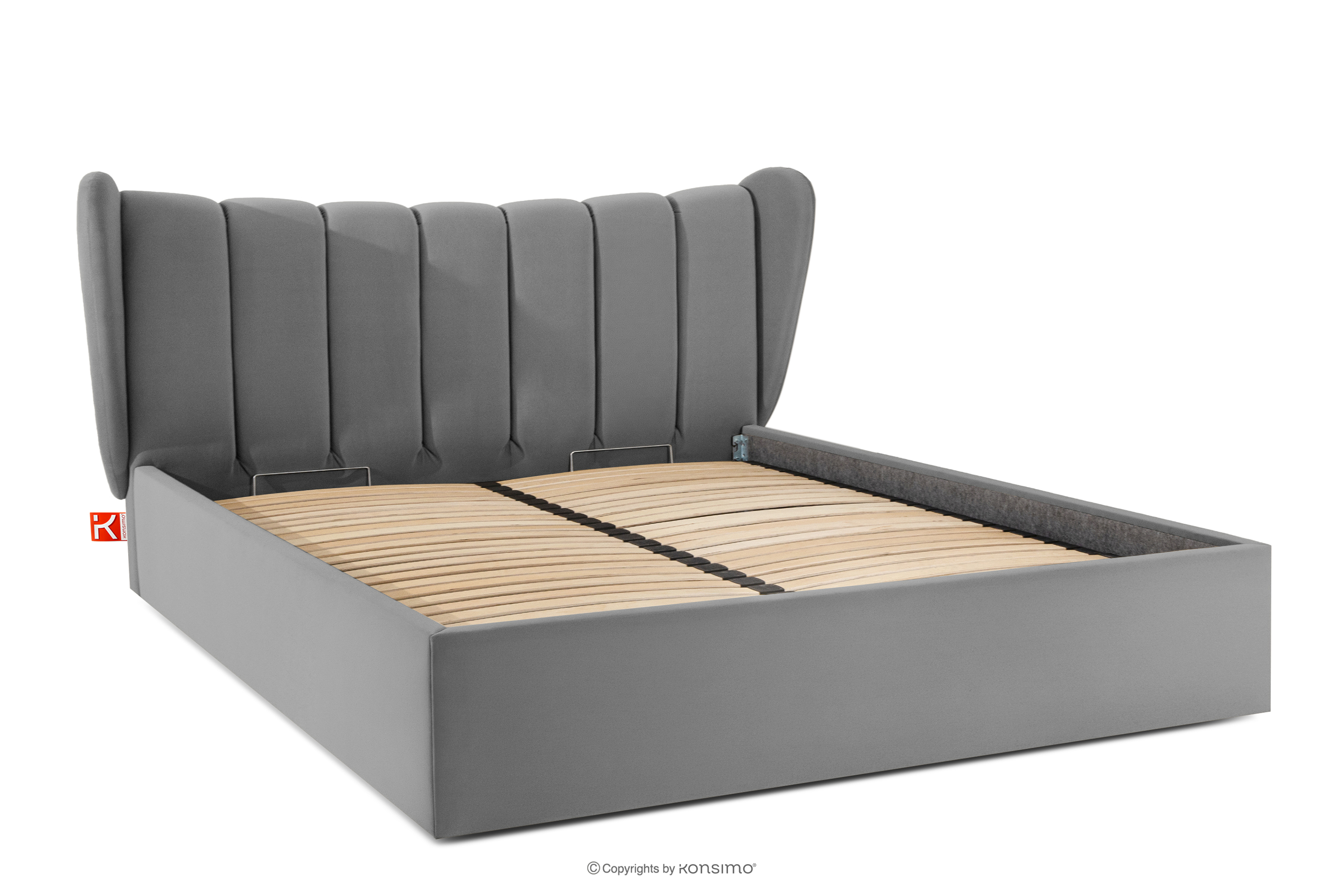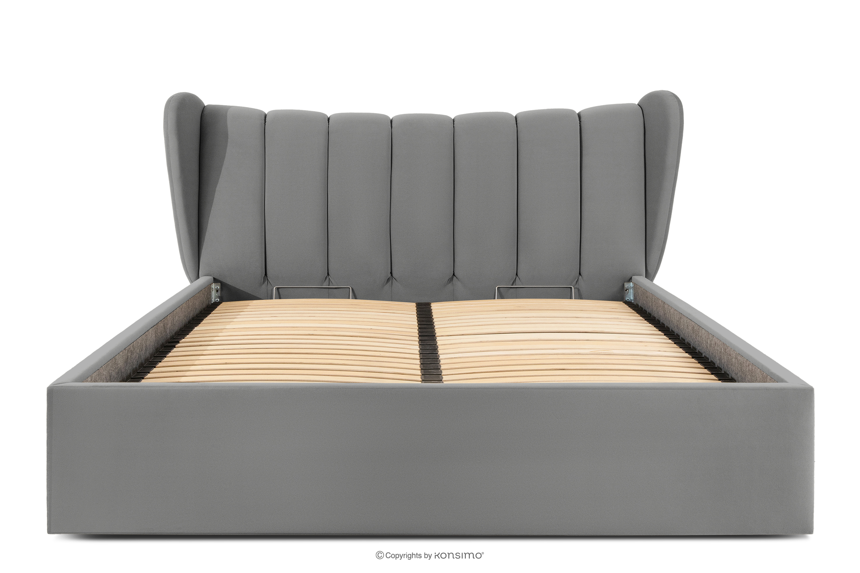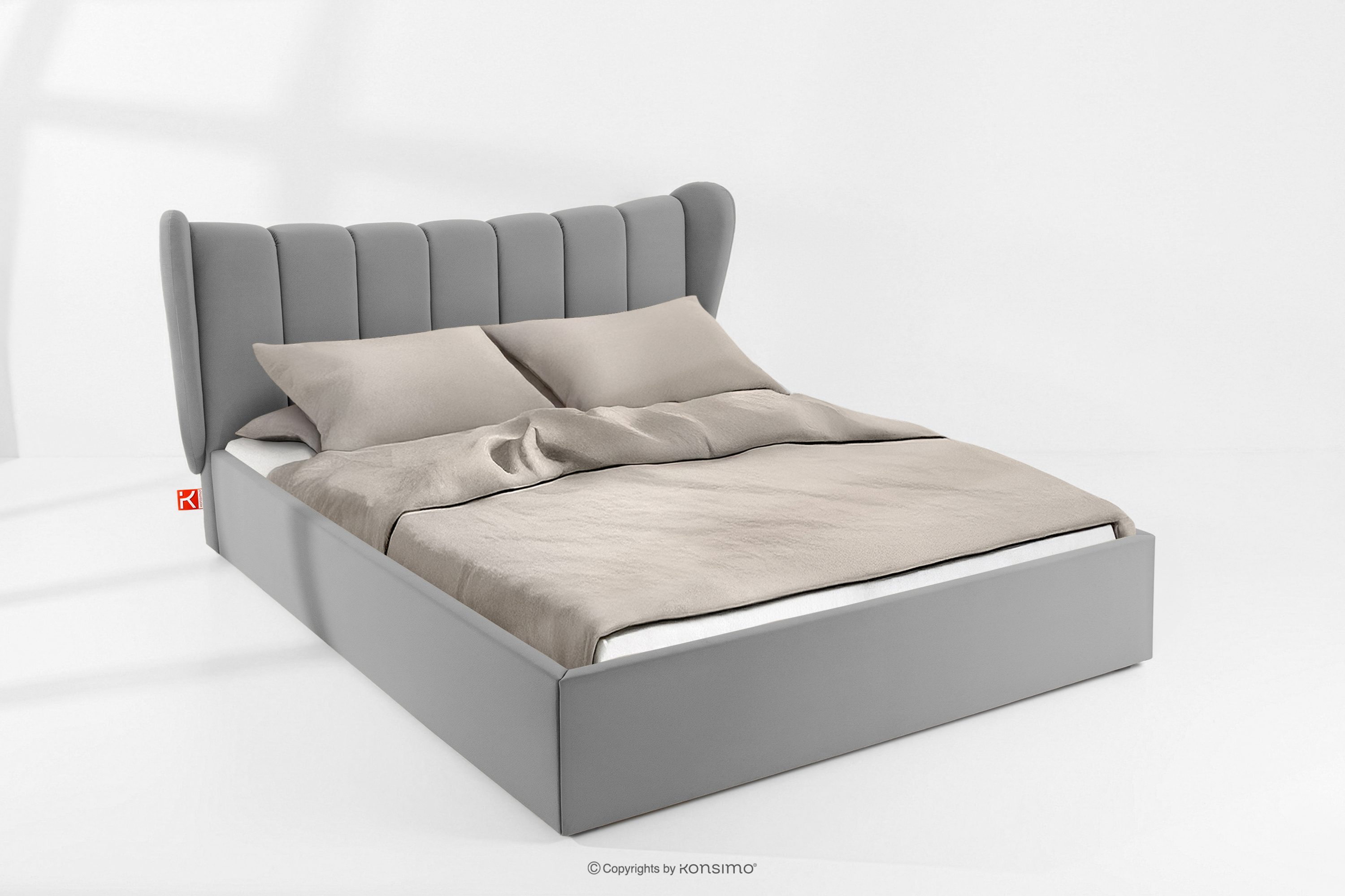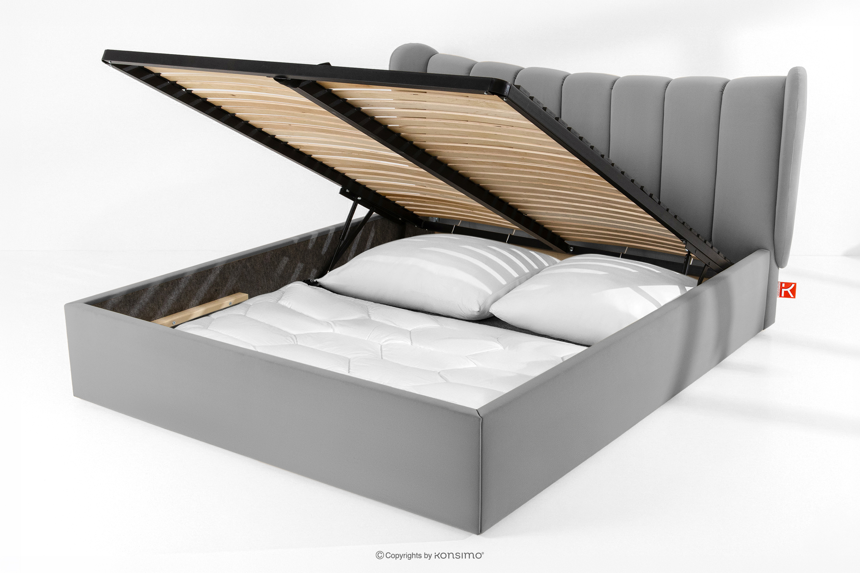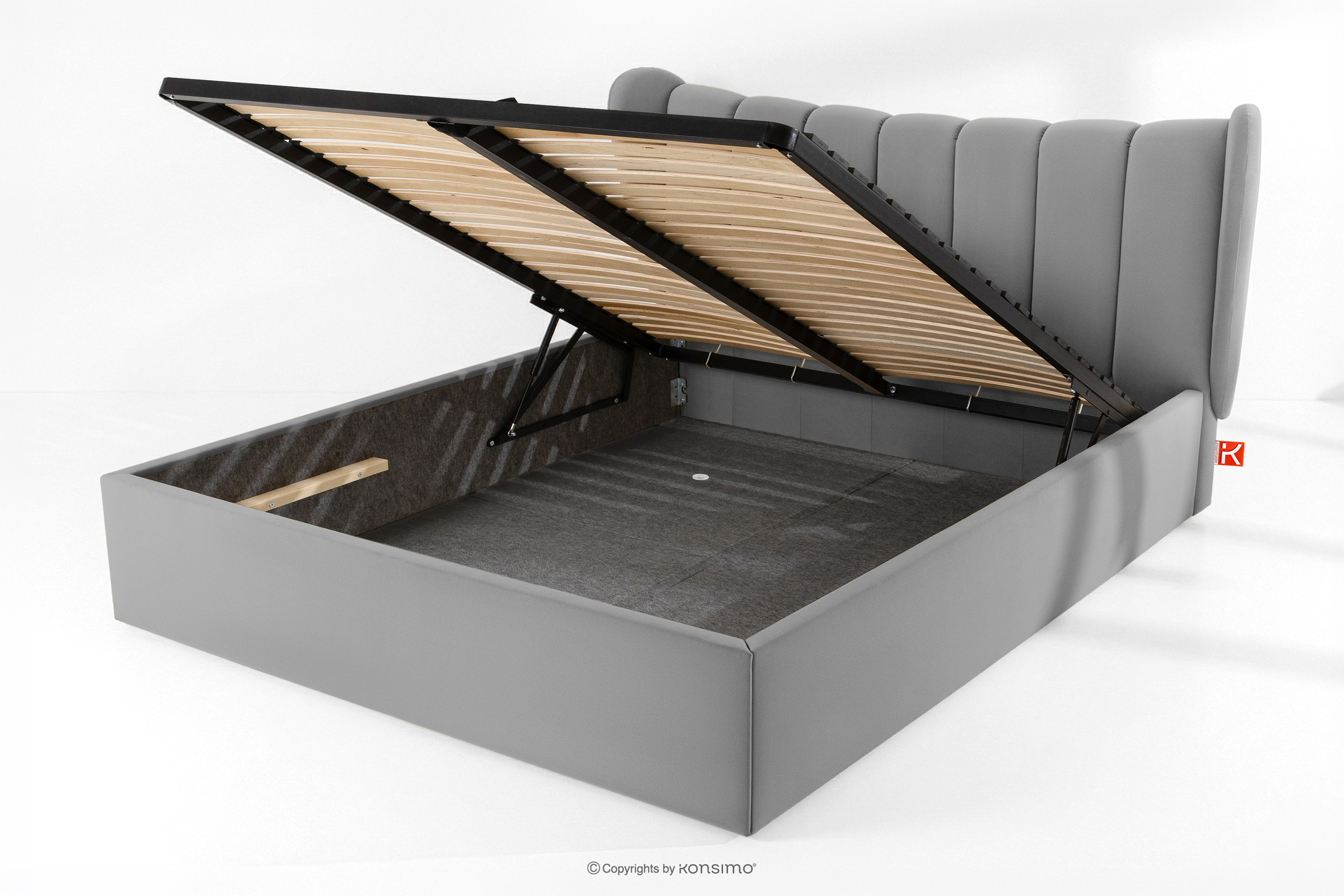 GIZO zobacz całą kolekcję Łóżko tapicerowane typu muszelka z pojemnikiem na pościel 180 cm jasny szary- kolor jasny szary