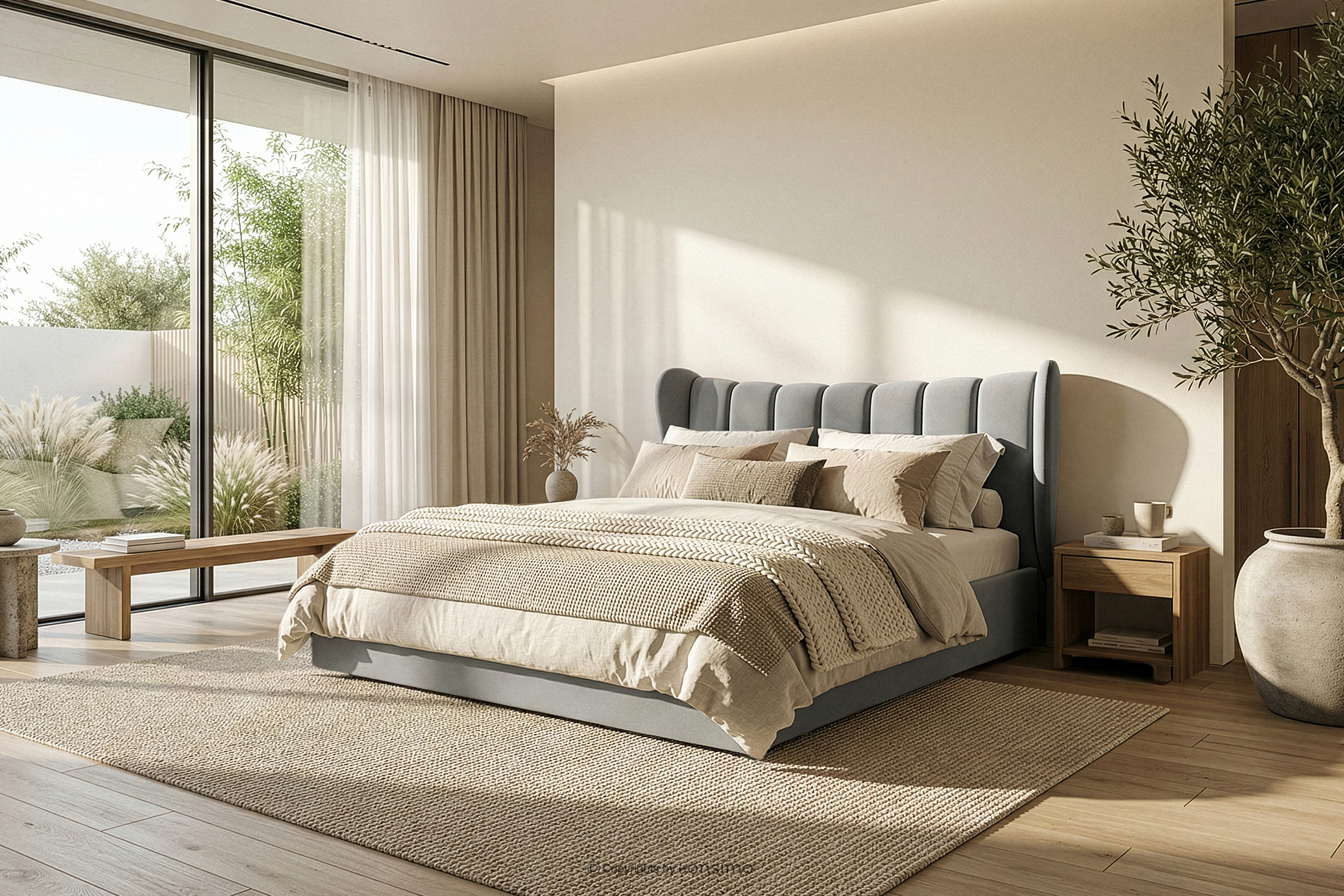 Precyzyjne wyściełanie każdego elementu nadaje bryle luksusowy, niemal otulający charakter, a jednocześnie pełni funkcję praktyczną – eliminuje twarde i ostre krawędzie, znacząco podnosząc bezpieczeństwo i komfort użytkowania. To idealna propozycja dla osób, które pragną, aby ich sypialnia była synonimem autentycznego ciepła i relaksu na najwyższym, światowym poziomie.