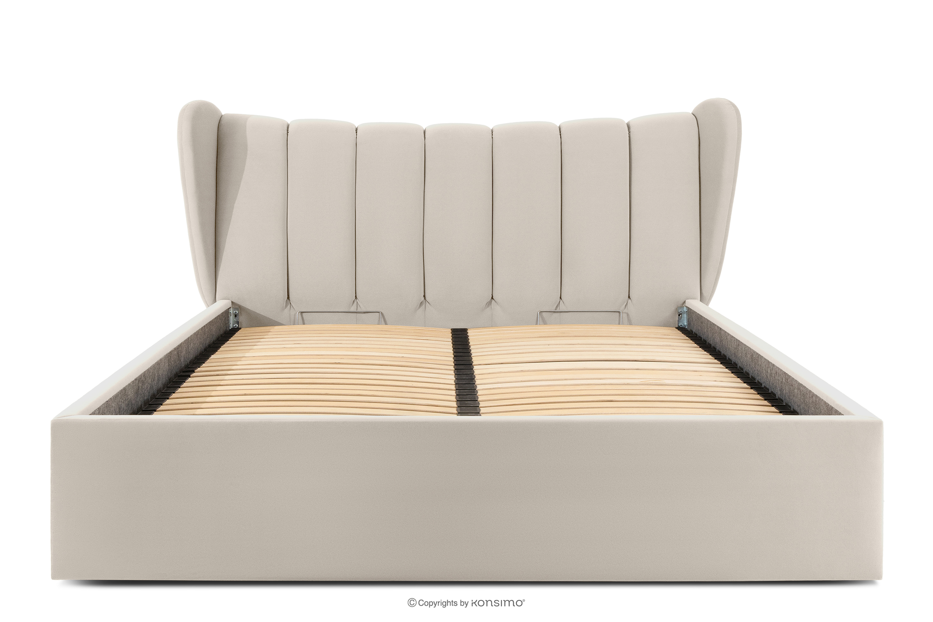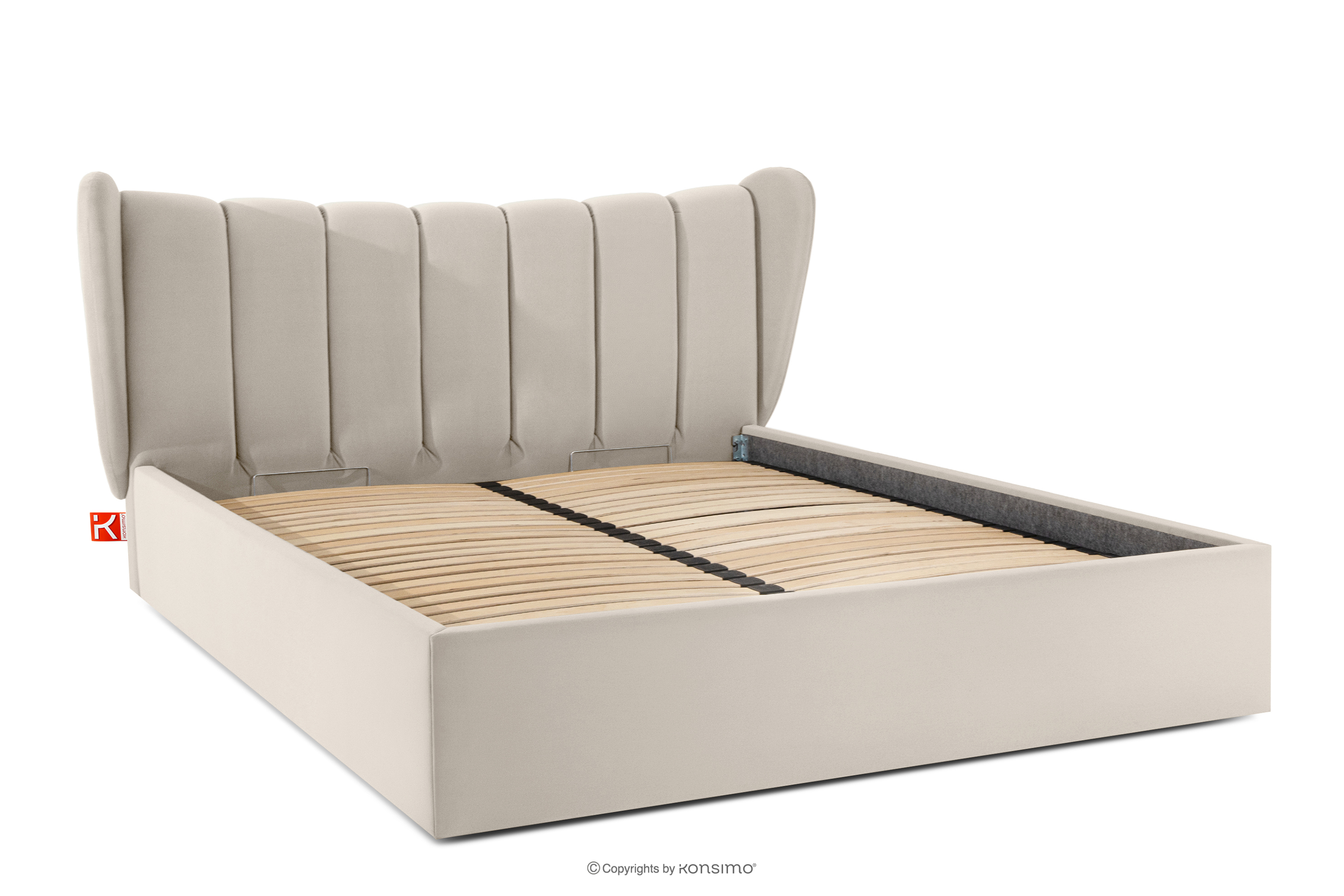 dla produktu Łóżko tapicerowane typu muszelka z pojemnikiem na pościel 180 cm kremowy