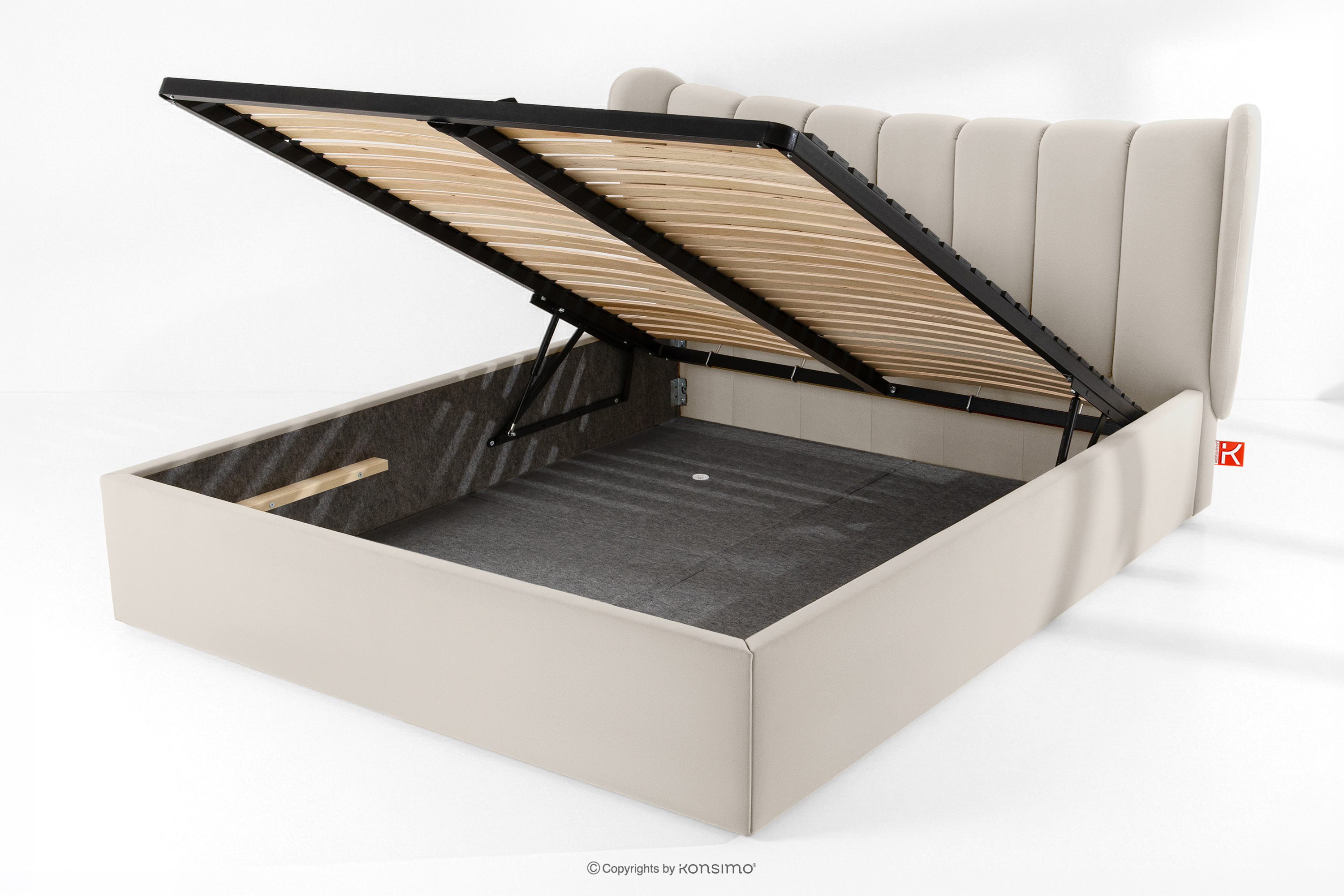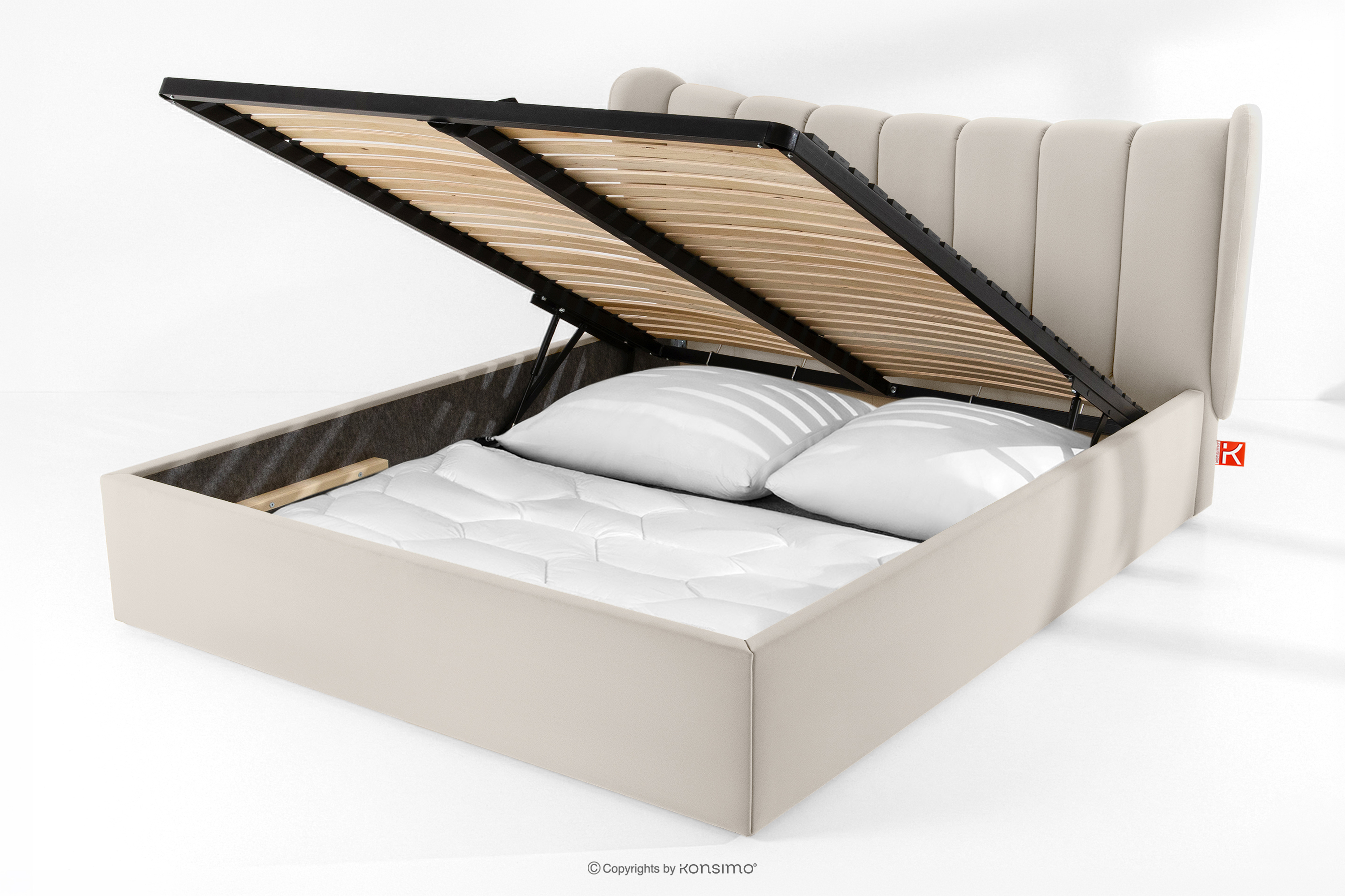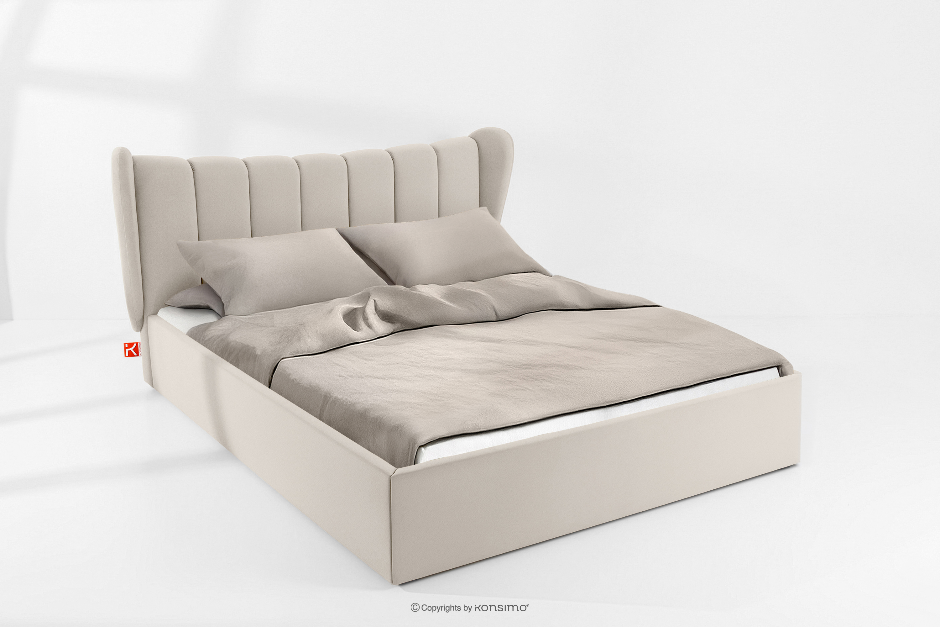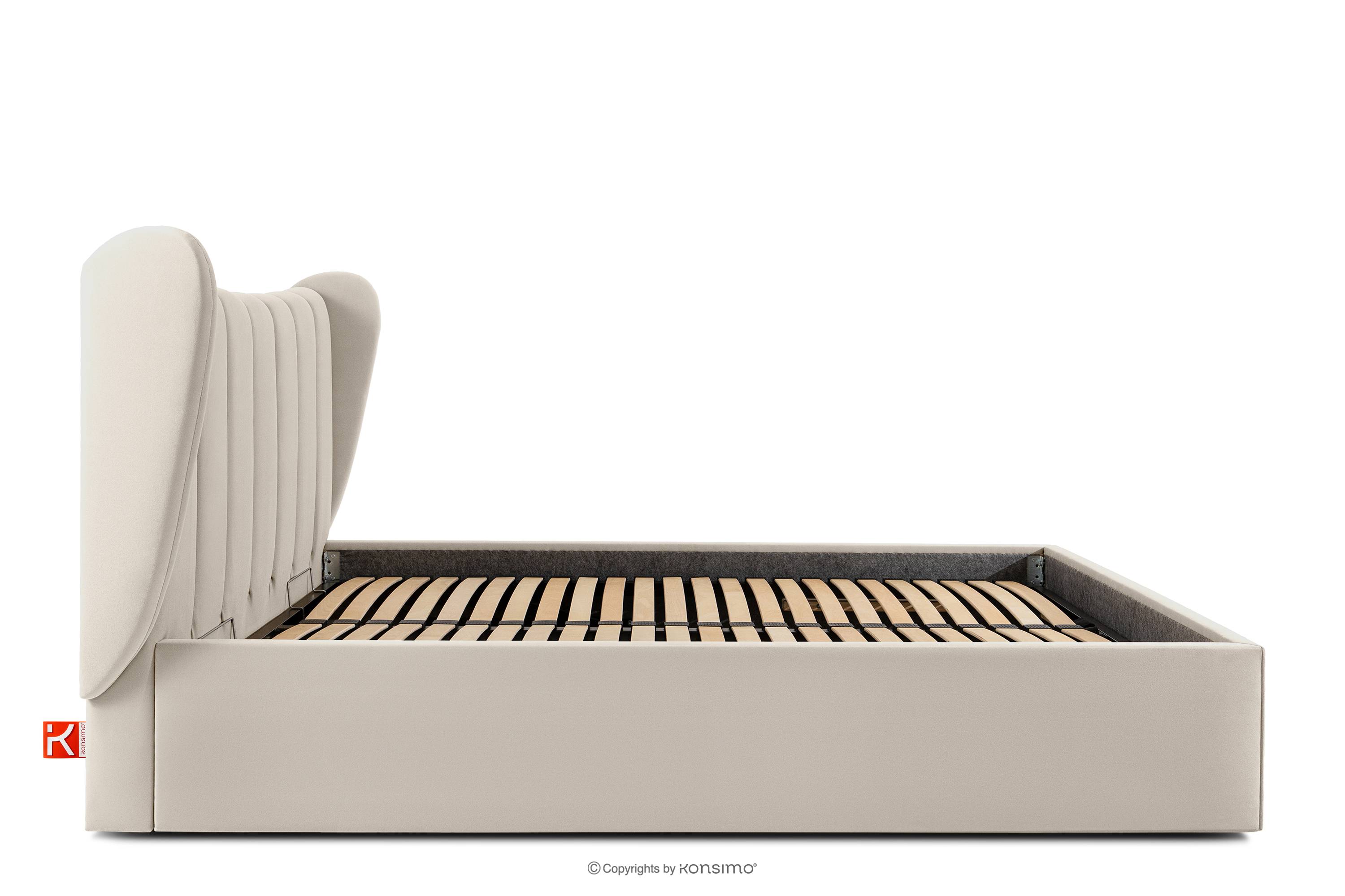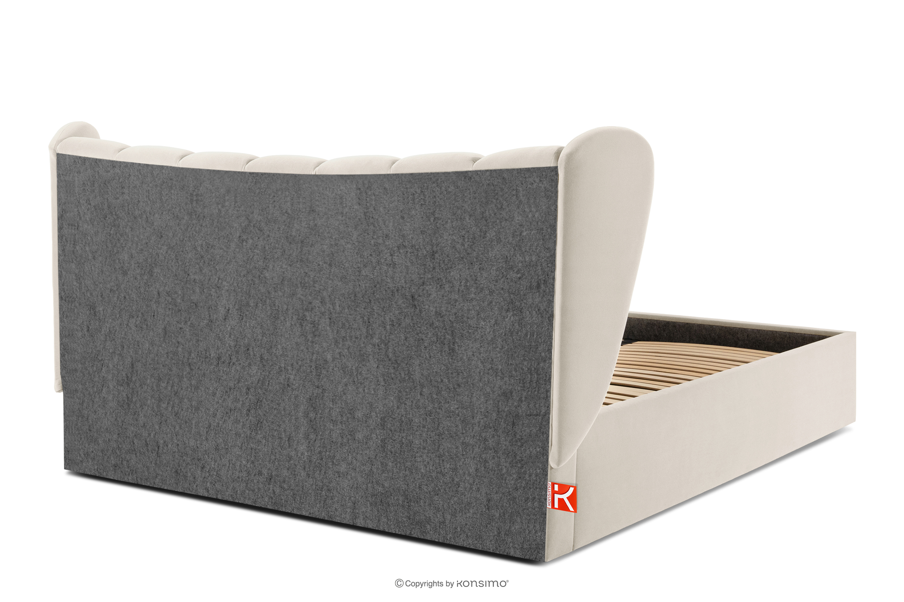 GIZO zobacz całą kolekcję Łóżko tapicerowane typu muszelka z pojemnikiem na pościel 180 cm kremowy- kolor kremowy