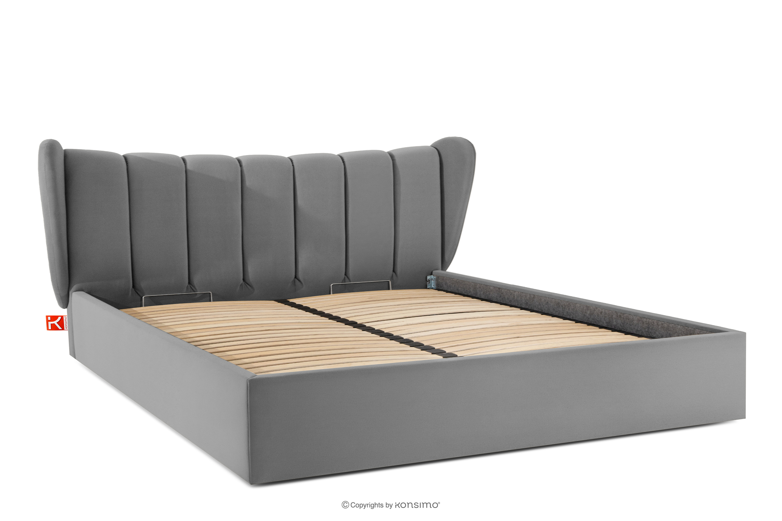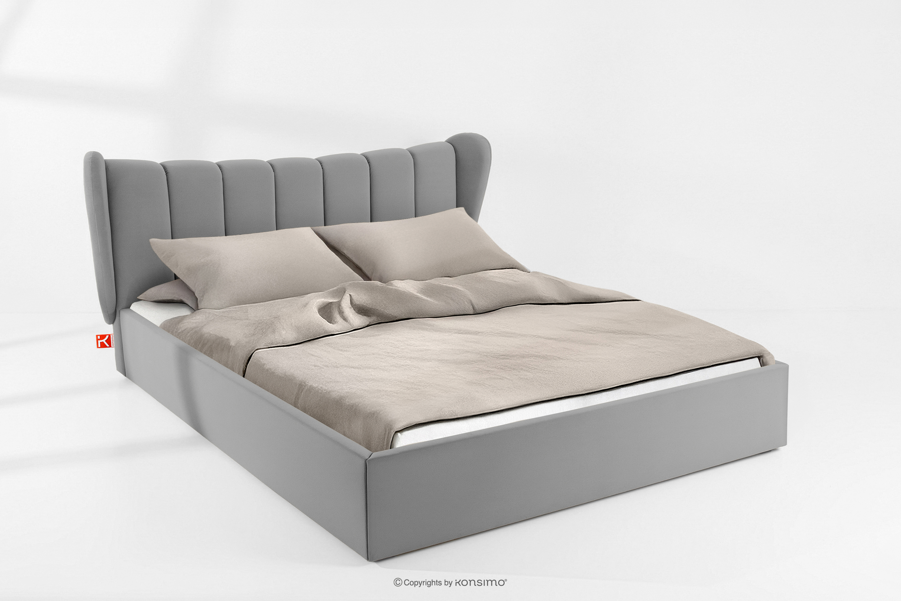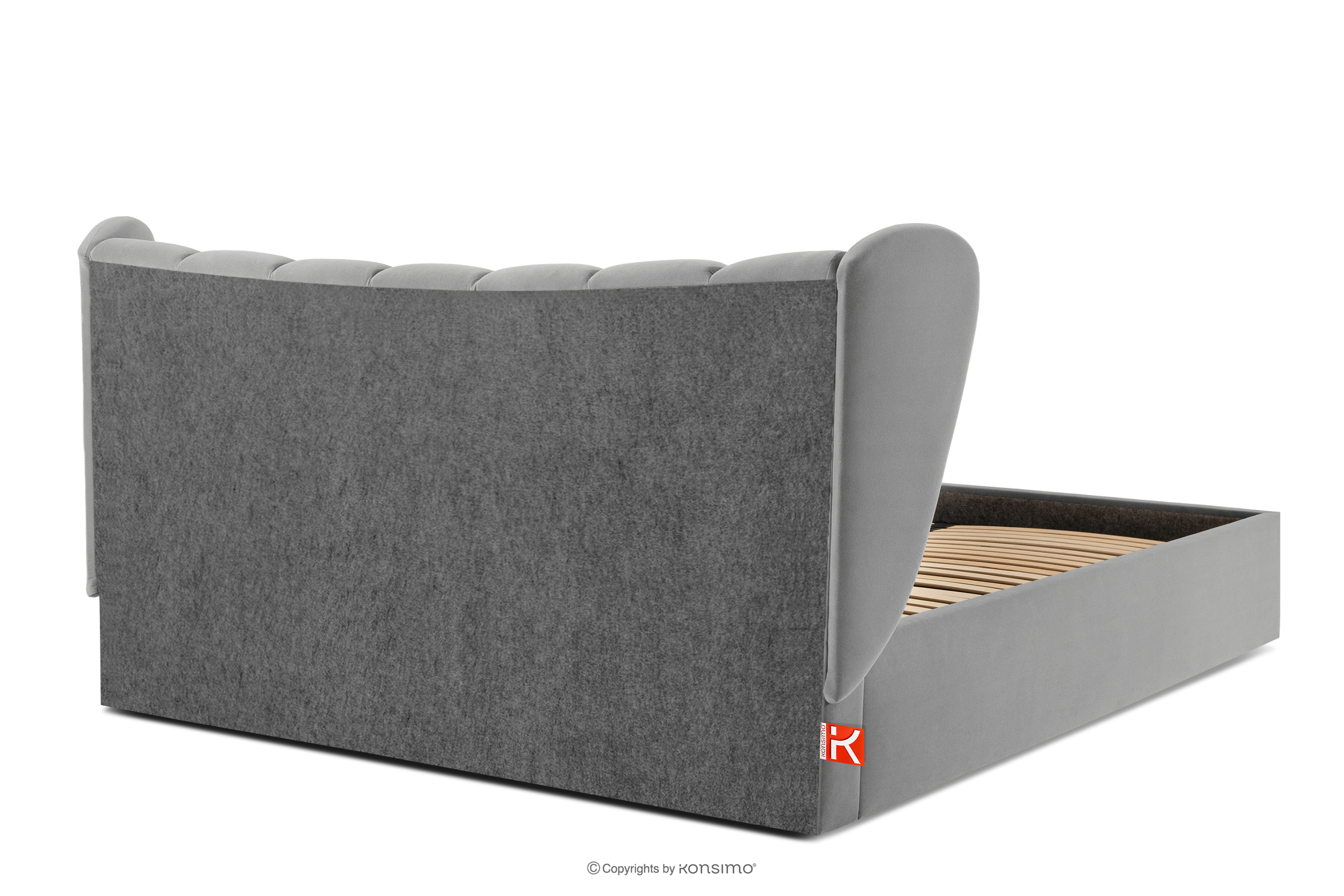 GIZO zobacz całą kolekcję Łóżko tapicerowane typu muszelka z pojemnikiem na pościel 200 cm jasny szary- kolor jasny szary
