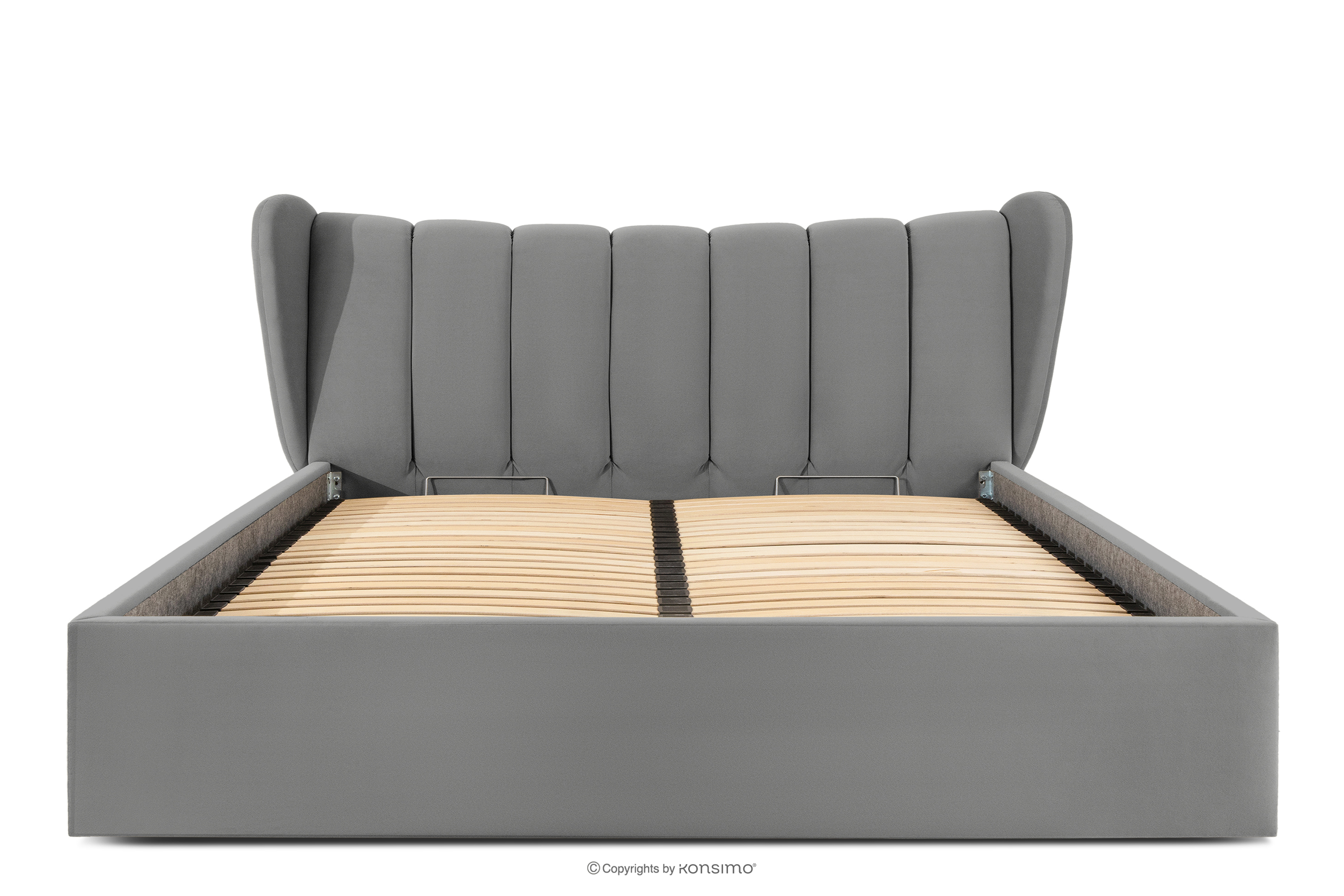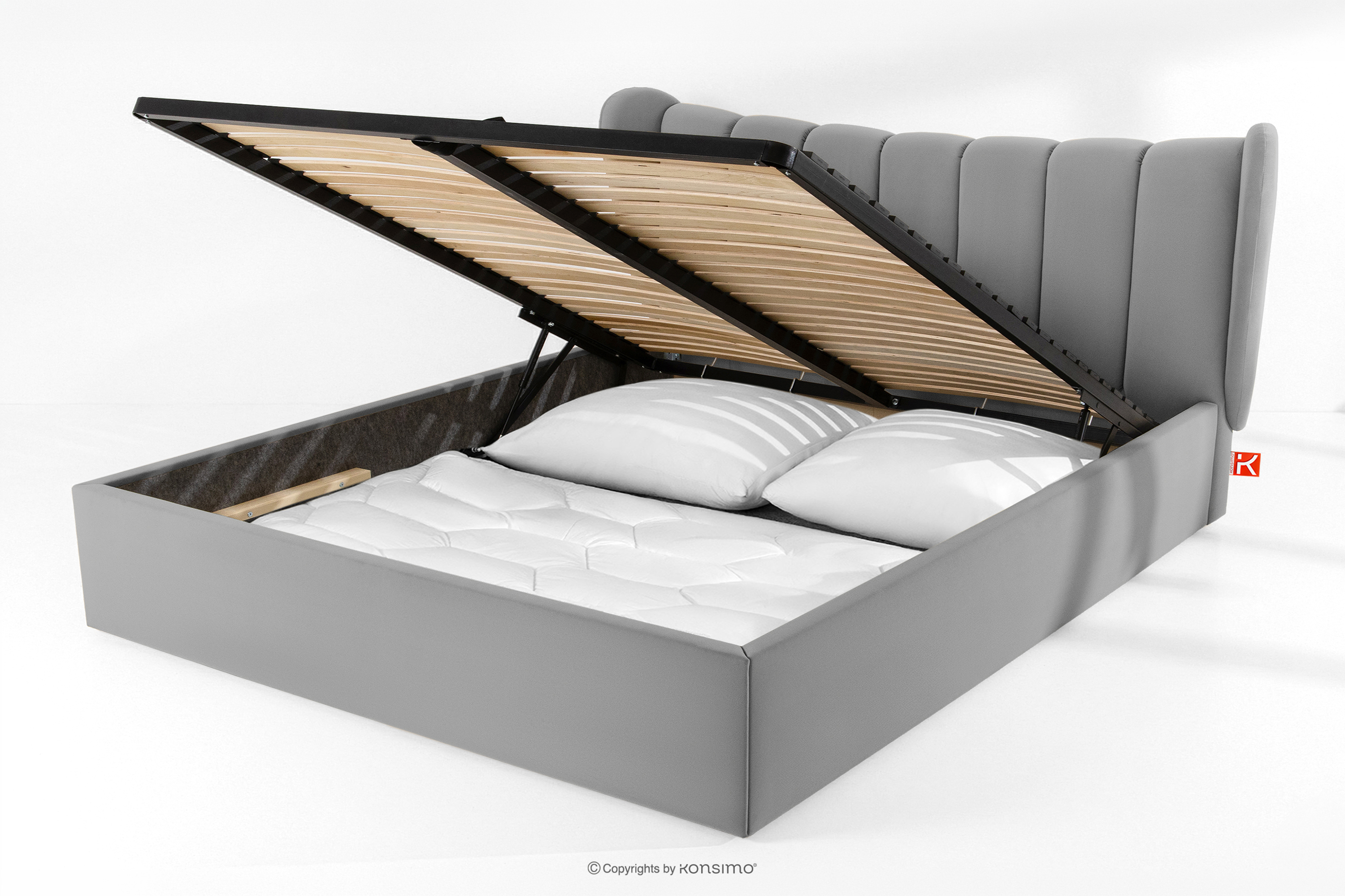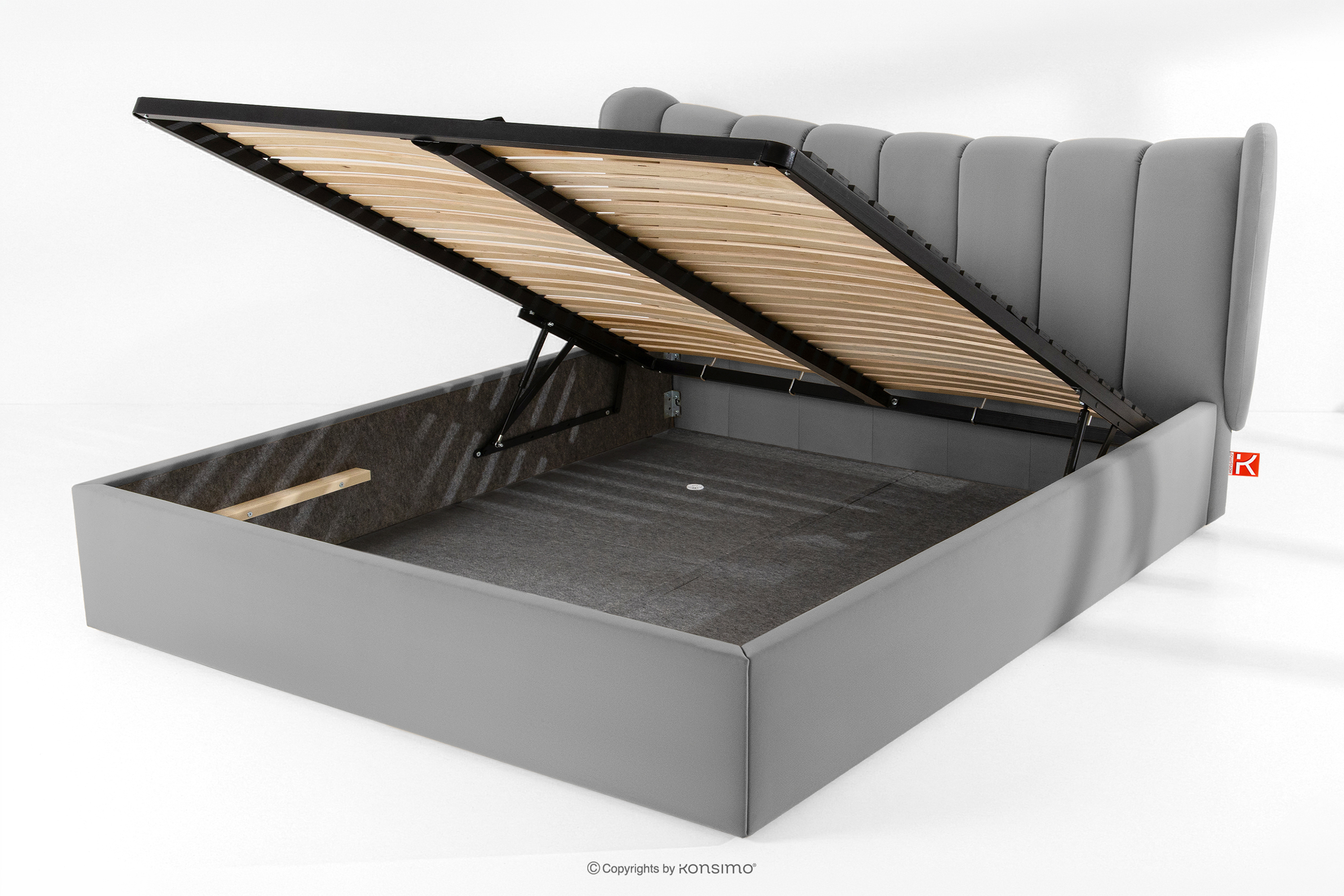 GIZO zobacz całą kolekcję Łóżko tapicerowane typu muszelka z pojemnikiem na pościel 200 cm jasny szary- kolor jasny szary