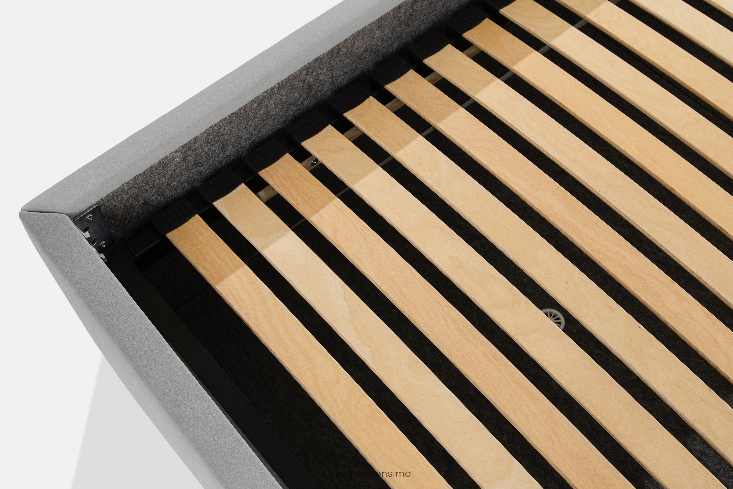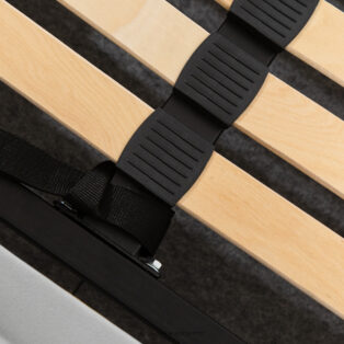 - Stelaż: metalowna rama, sprężynujące listwy drewniane, tak