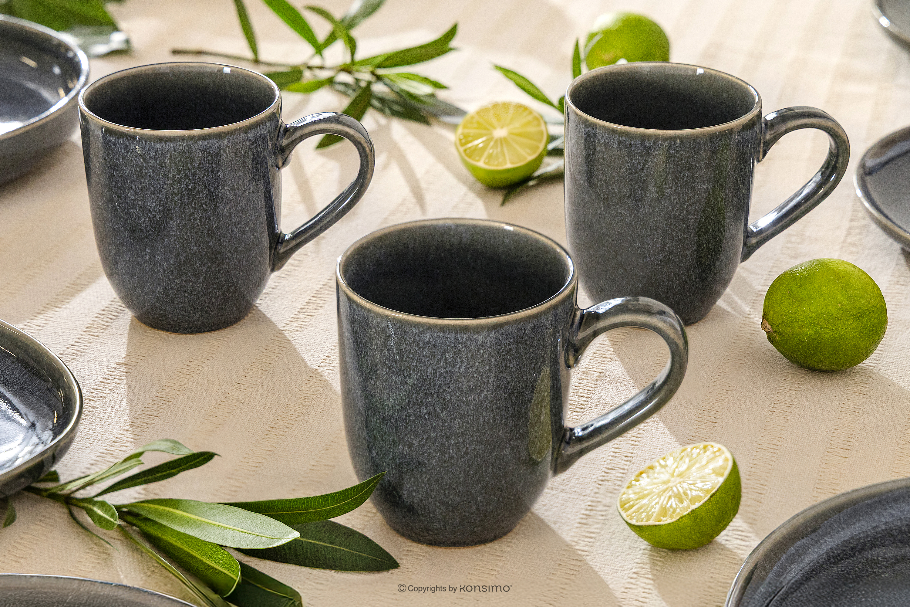 Kubek z ceramiki w stylu rustykalnym niebieski/szary/beżowy zaprojektowano z myślą o trwałości, komfortowym użytkowaniu i zachowaniu piękna na lata. Każdy element powstaje w procesie, który łączy tradycyjne rzemiosło z nowoczesnymi technikami obróbki, dzięki czemu naczynia charakteryzują się wysoką odpornością na codzienne użytkowanie. Ceramika jest solidna, co sprawia, że świetnie sprawdza się zarówno na eleganckim stole, jak i przy codziennych, rodzinnych posiłkach.