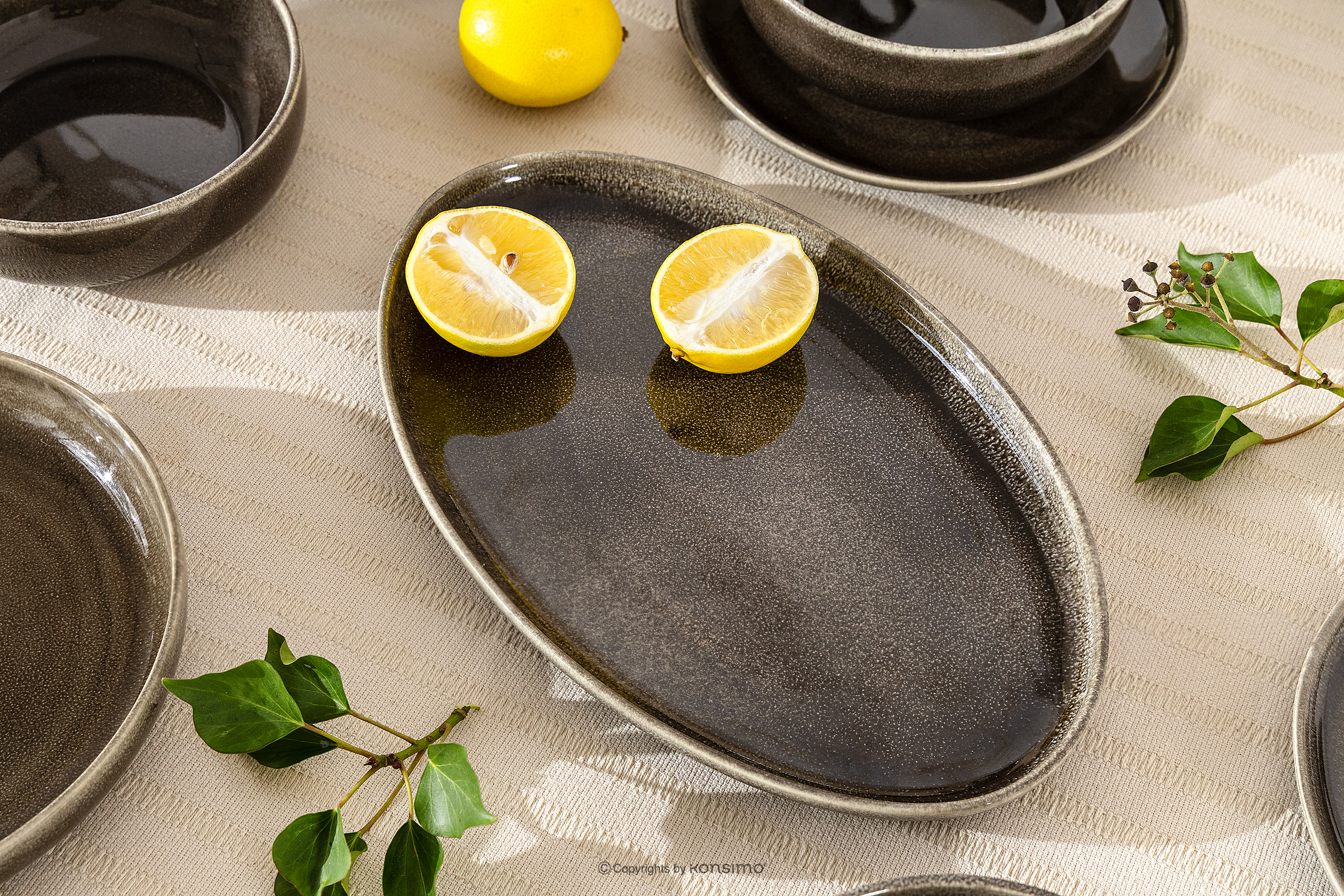 Półmisek z ceramiki w stylu rustykalnym brązowy/szary/beżowy zaprojektowano z myślą o trwałości, komfortowym użytkowaniu i zachowaniu piękna na lata. Każdy element powstaje w procesie, który łączy tradycyjne rzemiosło z nowoczesnymi technikami obróbki, dzięki czemu naczynia charakteryzują się wysoką odpornością na codzienne użytkowanie. Ceramika jest solidna, co sprawia, że świetnie sprawdza się zarówno na eleganckim stole, jak i przy codziennych, rodzinnych posiłkach.