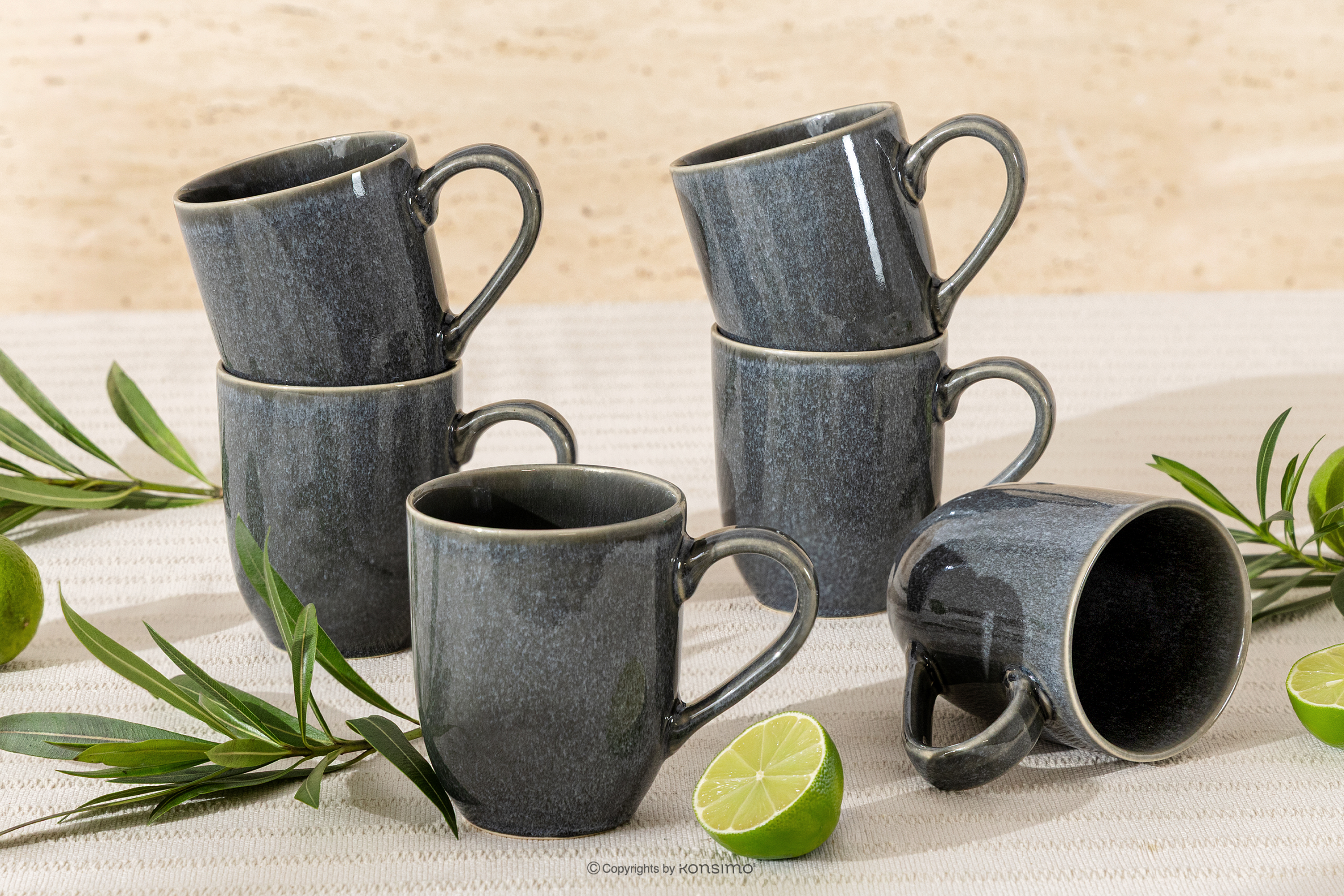 Kubek 6 szt. z ceramiki w stylu rustykalnym niebieski/szary/beżowy zaprojektowano z myślą o trwałości, komfortowym użytkowaniu i zachowaniu piękna na lata. Każdy element powstaje w procesie, który łączy tradycyjne rzemiosło z nowoczesnymi technikami obróbki, dzięki czemu naczynia charakteryzują się wysoką odpornością na codzienne użytkowanie. Ceramika jest solidna, co sprawia, że świetnie sprawdza się zarówno na eleganckim stole, jak i przy codziennych, rodzinnych posiłkach.