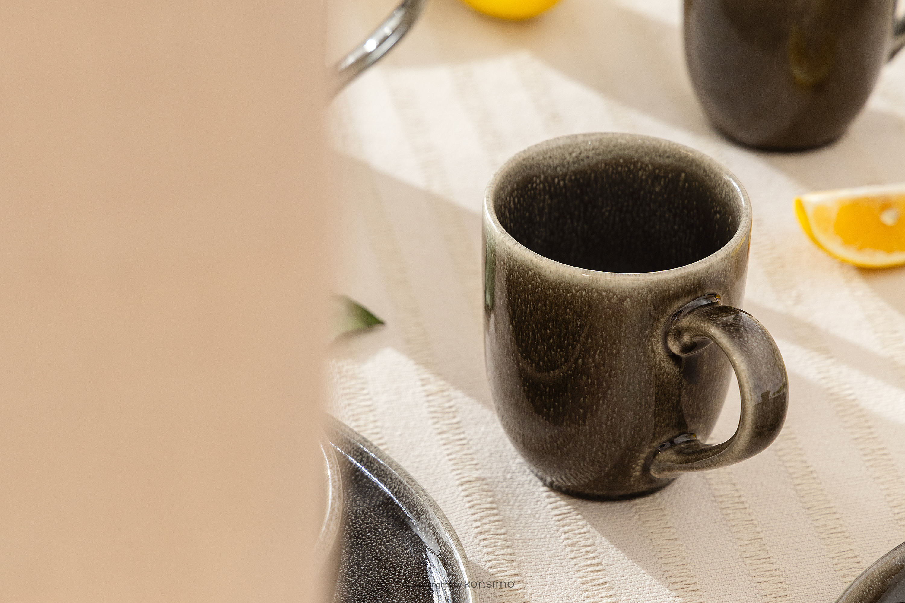 Kubek 6 szt. z ceramiki w stylu rustykalnym brązowy/szary/beżowy zaprojektowano z myślą o trwałości, komfortowym użytkowaniu i zachowaniu piękna na lata. Każdy element powstaje w procesie, który łączy tradycyjne rzemiosło z nowoczesnymi technikami obróbki, dzięki czemu naczynia charakteryzują się wysoką odpornością na codzienne użytkowanie. Ceramika jest solidna, co sprawia, że świetnie sprawdza się zarówno na eleganckim stole, jak i przy codziennych, rodzinnych posiłkach.