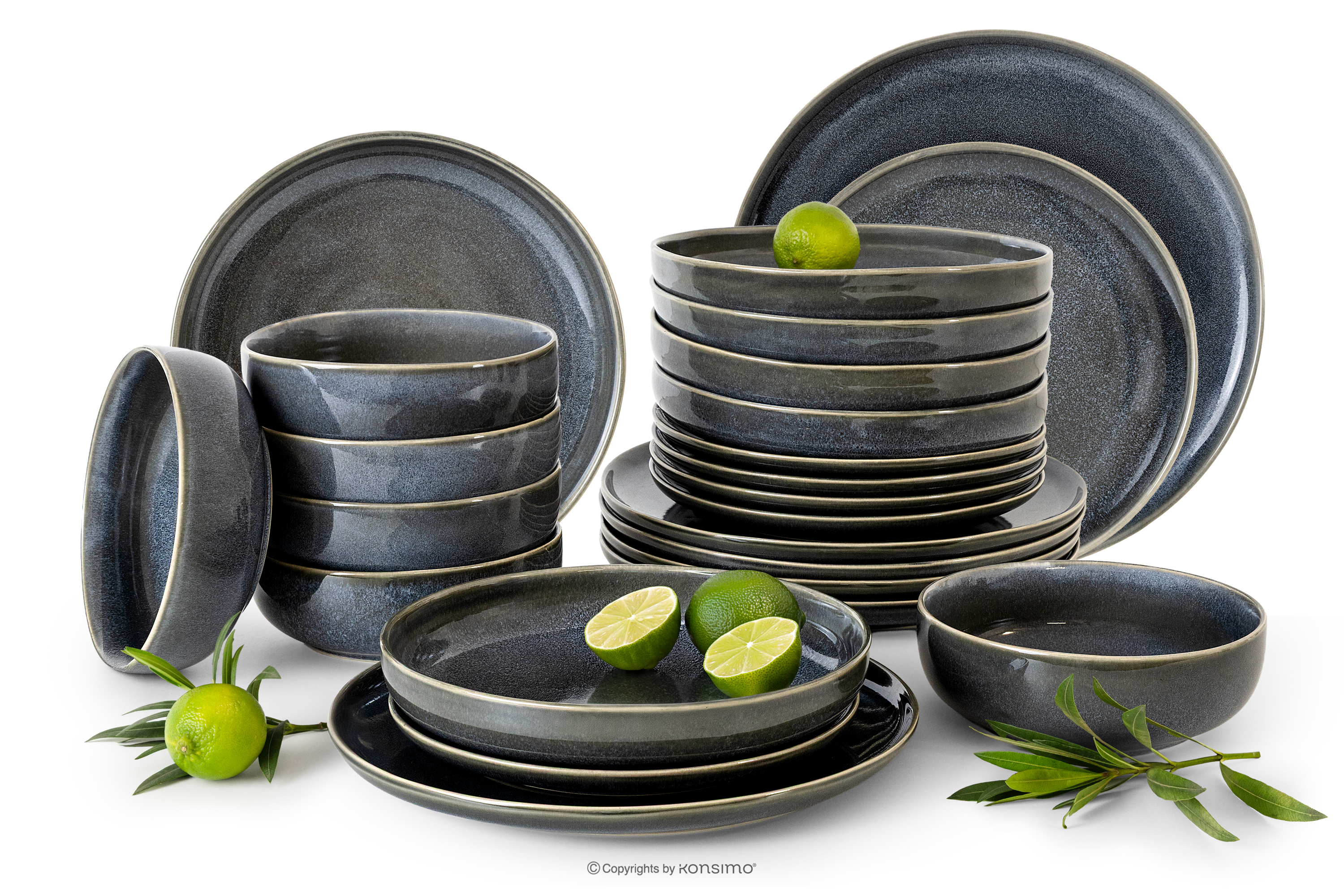 dla produktu Zestaw obiadowy 6 os. (24 el.) z ceramiki w stylu rustykalnym niebieski/szary/beżowy