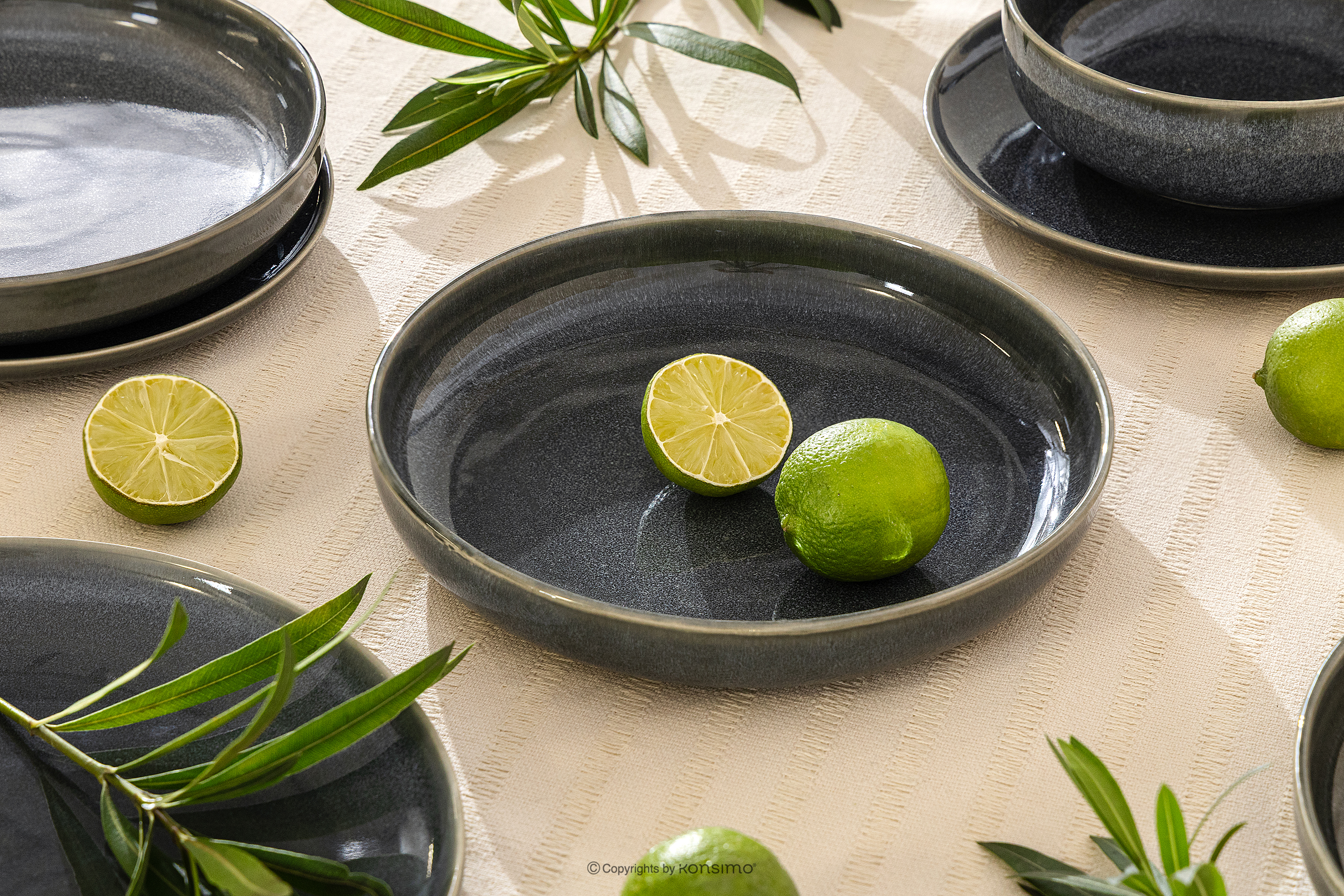 Zestaw obiadowy 6 os. (24 el.) z ceramiki w stylu rustykalnym niebieski/szary/beżowy zaprojektowano z myślą o trwałości, komfortowym użytkowaniu i zachowaniu piękna na lata. Każdy element powstaje w procesie, który łączy tradycyjne rzemiosło z nowoczesnymi technikami obróbki, dzięki czemu naczynia charakteryzują się wysoką odpornością na codzienne użytkowanie. Ceramika jest solidna, co sprawia, że świetnie sprawdza się zarówno na eleganckim stole, jak i przy codziennych, rodzinnych posiłkach.