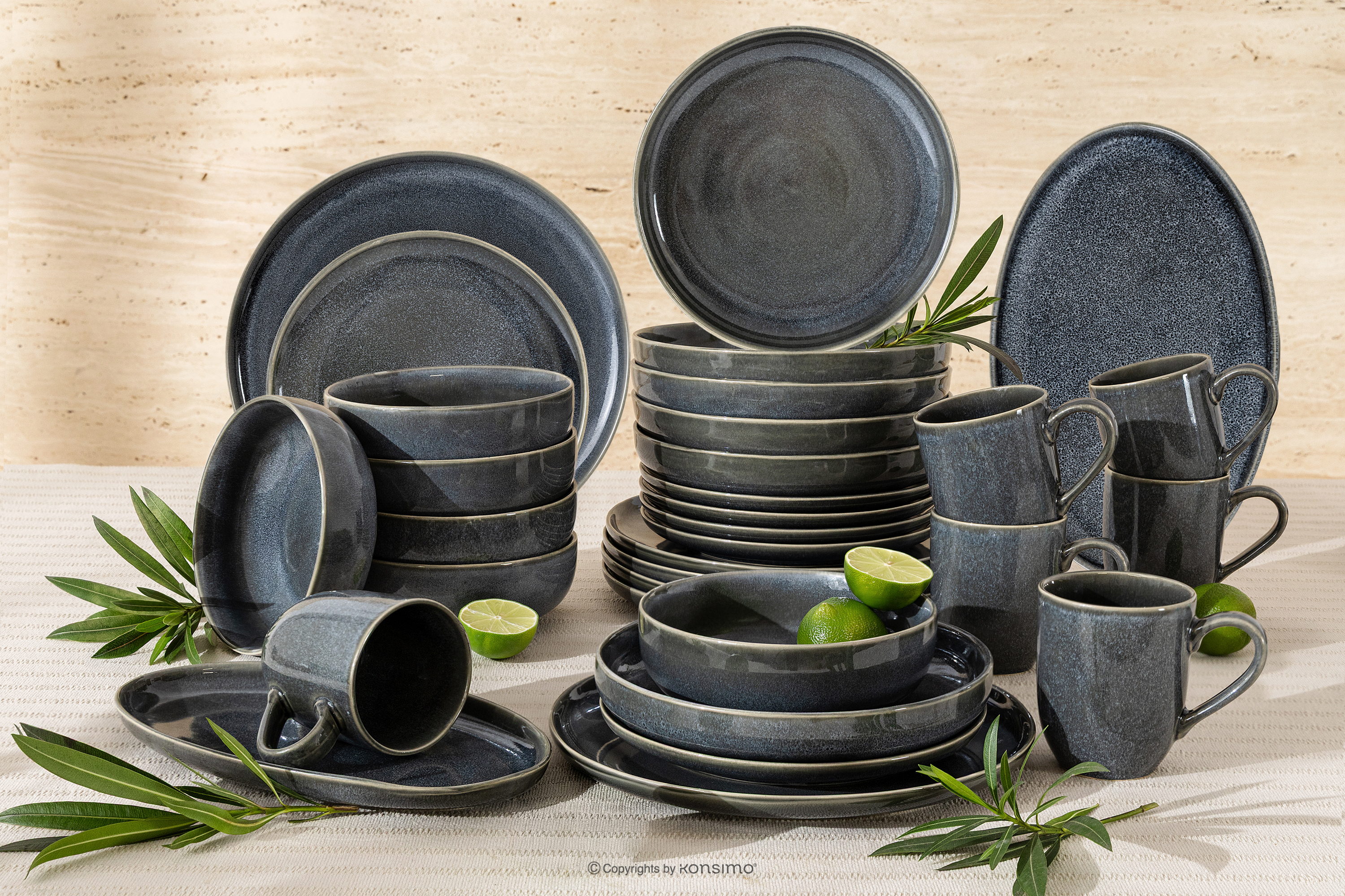 EDA Zestaw obiadowy 6 os. (32 el.) z ceramiki w stylu rustykalnym niebieski/szary/beżowy