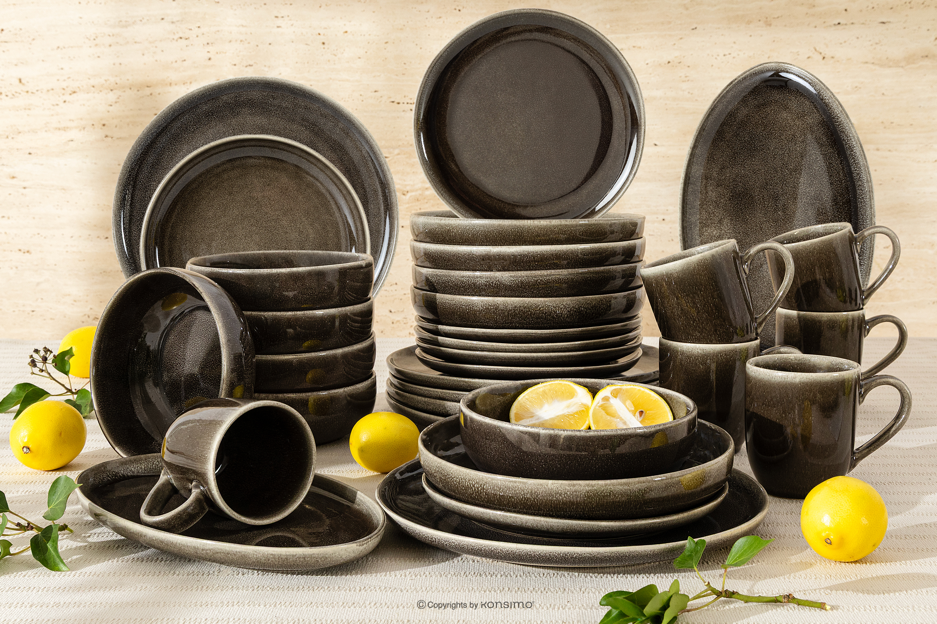 EDA Zestaw obiadowy 6 os. (32 el.) z ceramiki w stylu rustykalnym brązowy/szary/beżowy