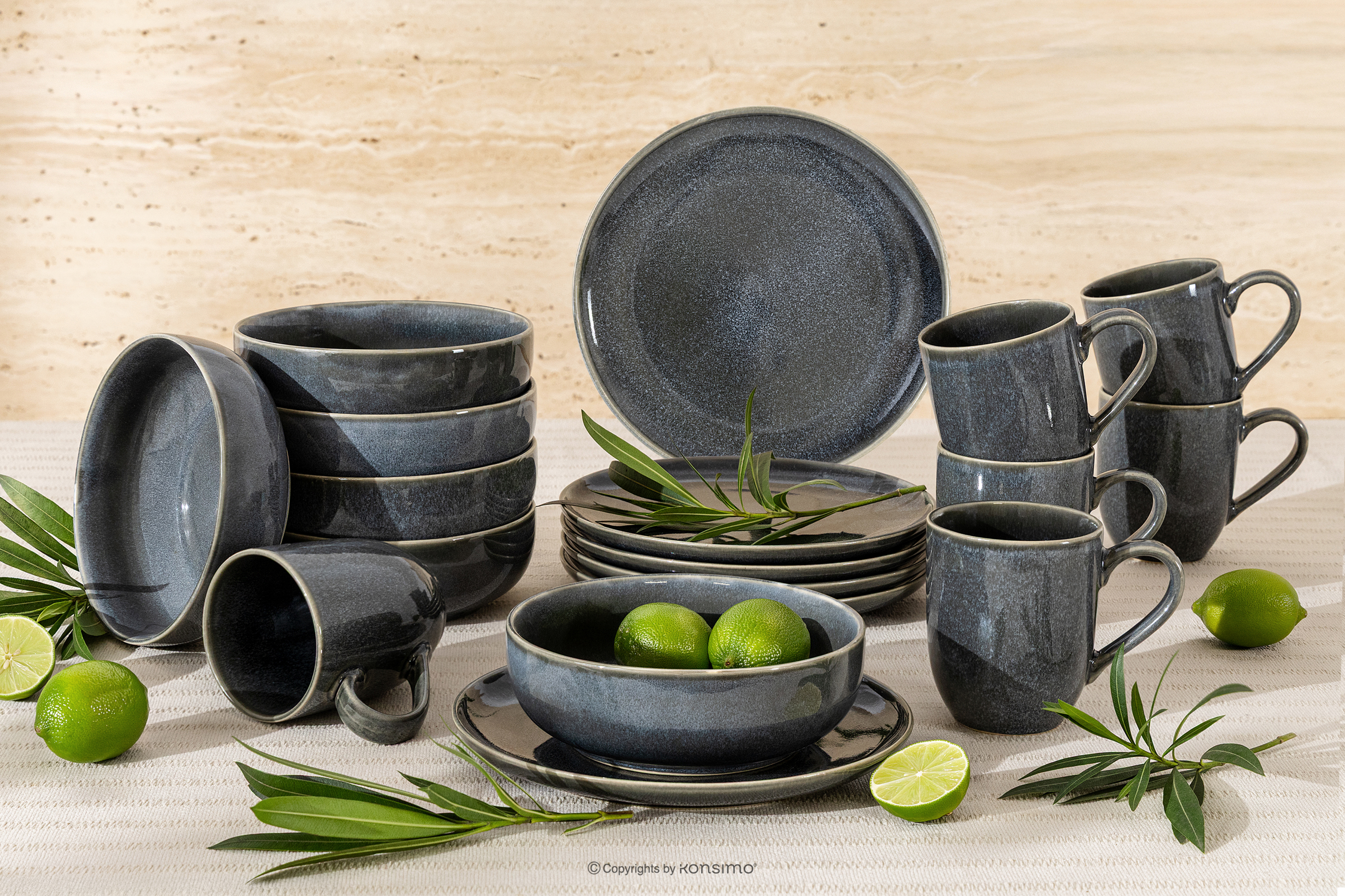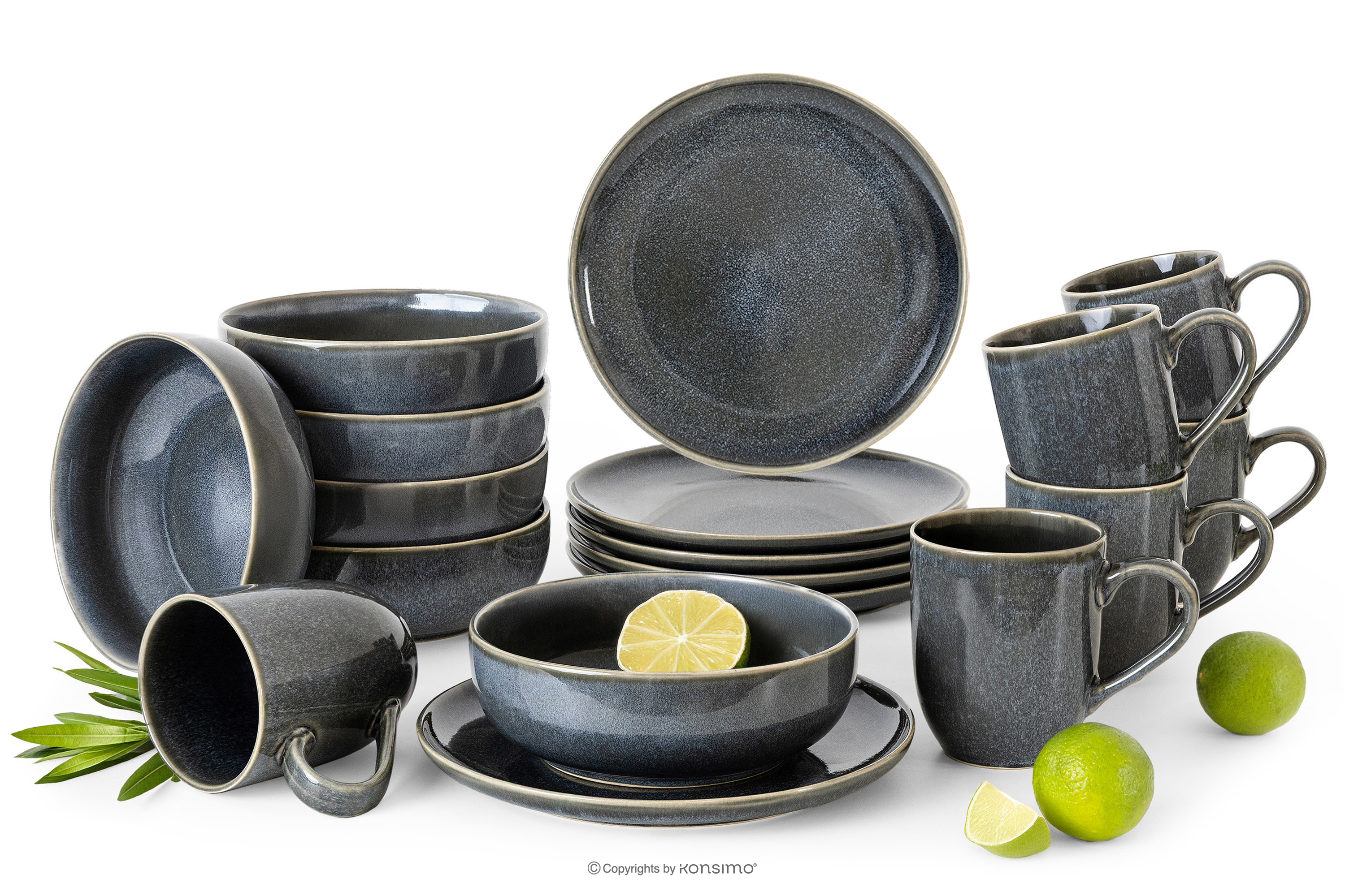 EDA Zestaw śniadaniowy 6 os. (18 el.) z ceramiki w stylu rustykalnym niebieski/szary/beżowy