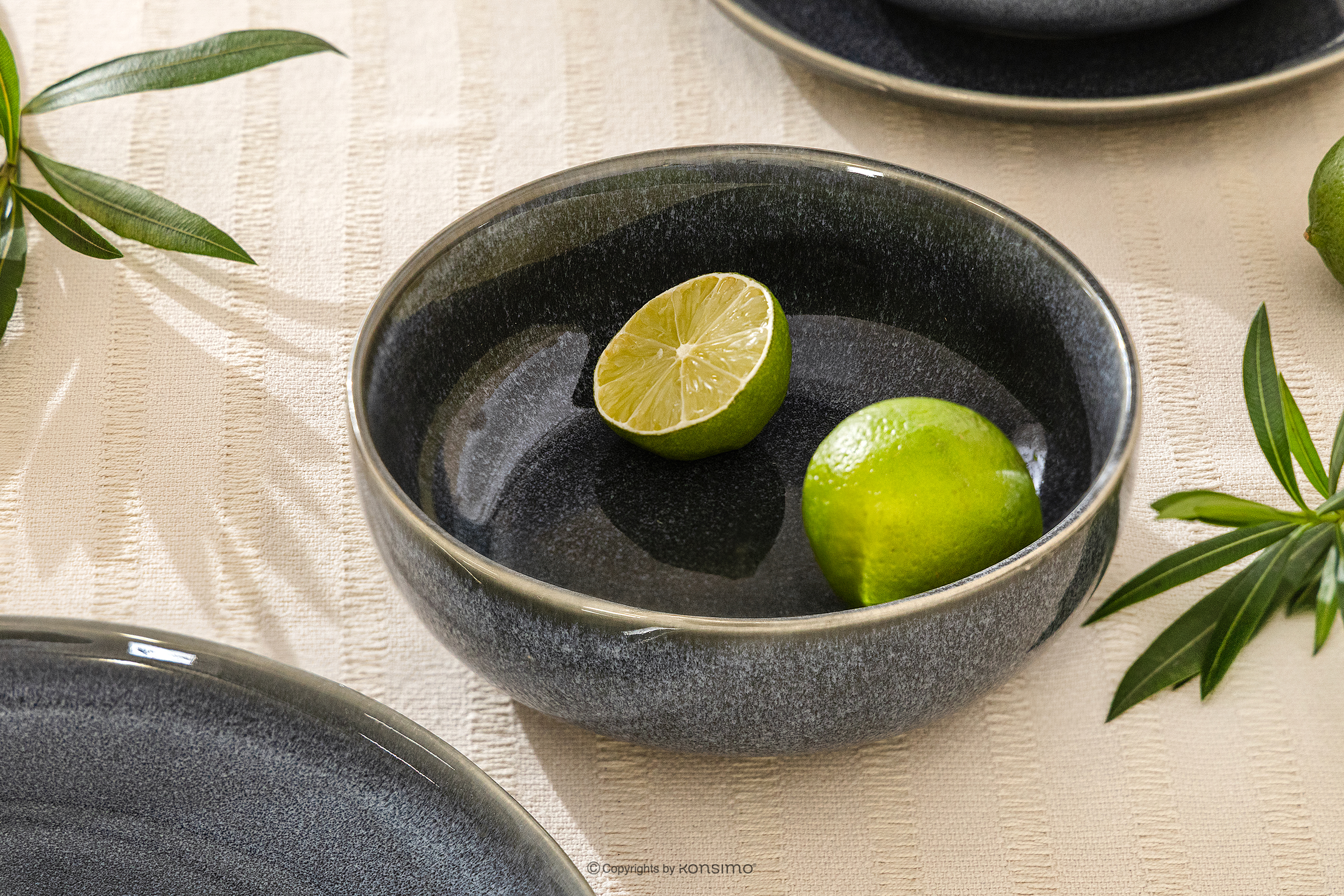 Zestaw śniadaniowy 6 os. (18 el.) z ceramiki w stylu rustykalnym niebieski/szary/beżowy zaprojektowano z myślą o trwałości, komfortowym użytkowaniu i zachowaniu piękna na lata. Każdy element powstaje w procesie, który łączy tradycyjne rzemiosło z nowoczesnymi technikami obróbki, dzięki czemu naczynia charakteryzują się wysoką odpornością na codzienne użytkowanie. Ceramika jest solidna, co sprawia, że świetnie sprawdza się zarówno na eleganckim stole, jak i przy codziennych, rodzinnych posiłkach.