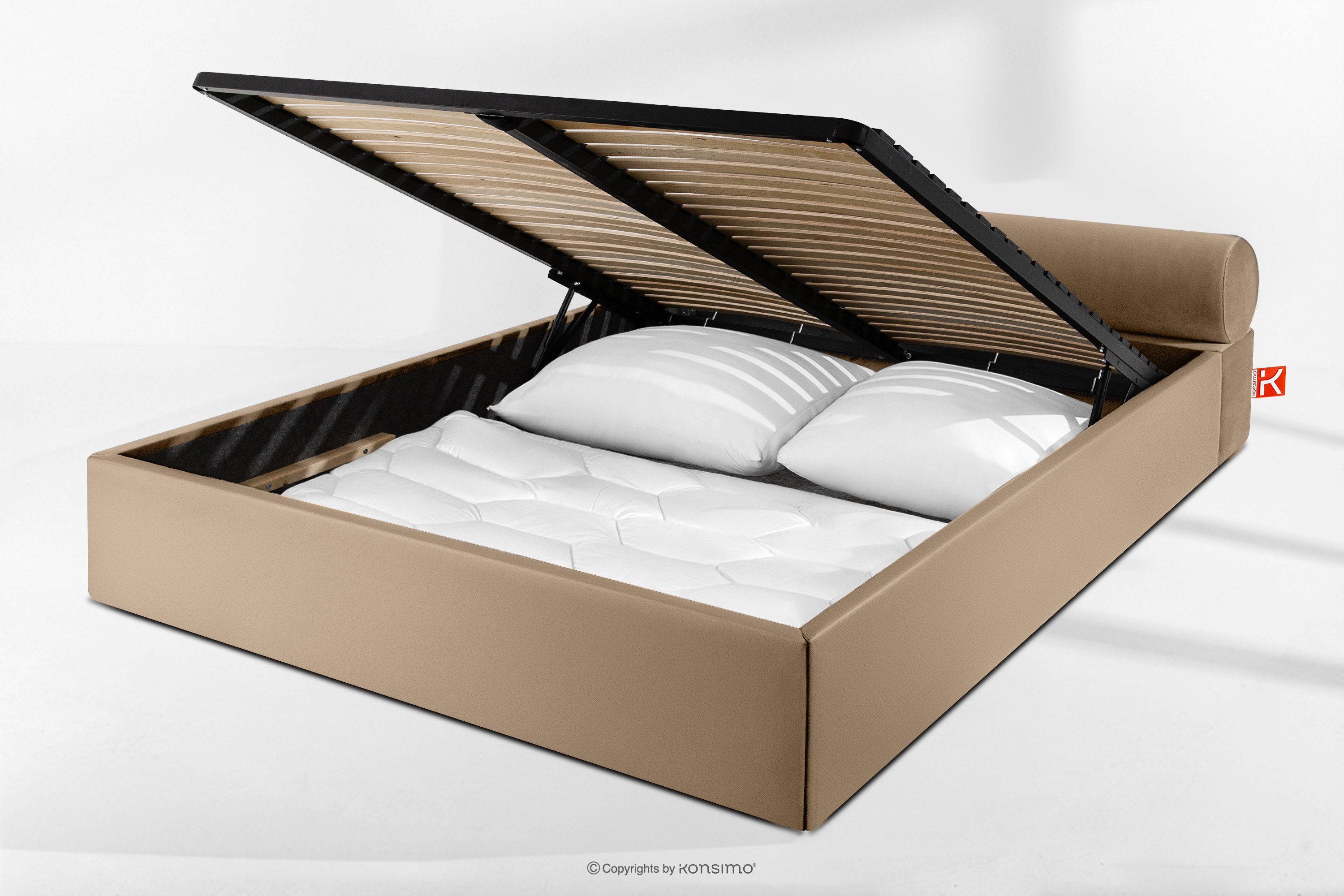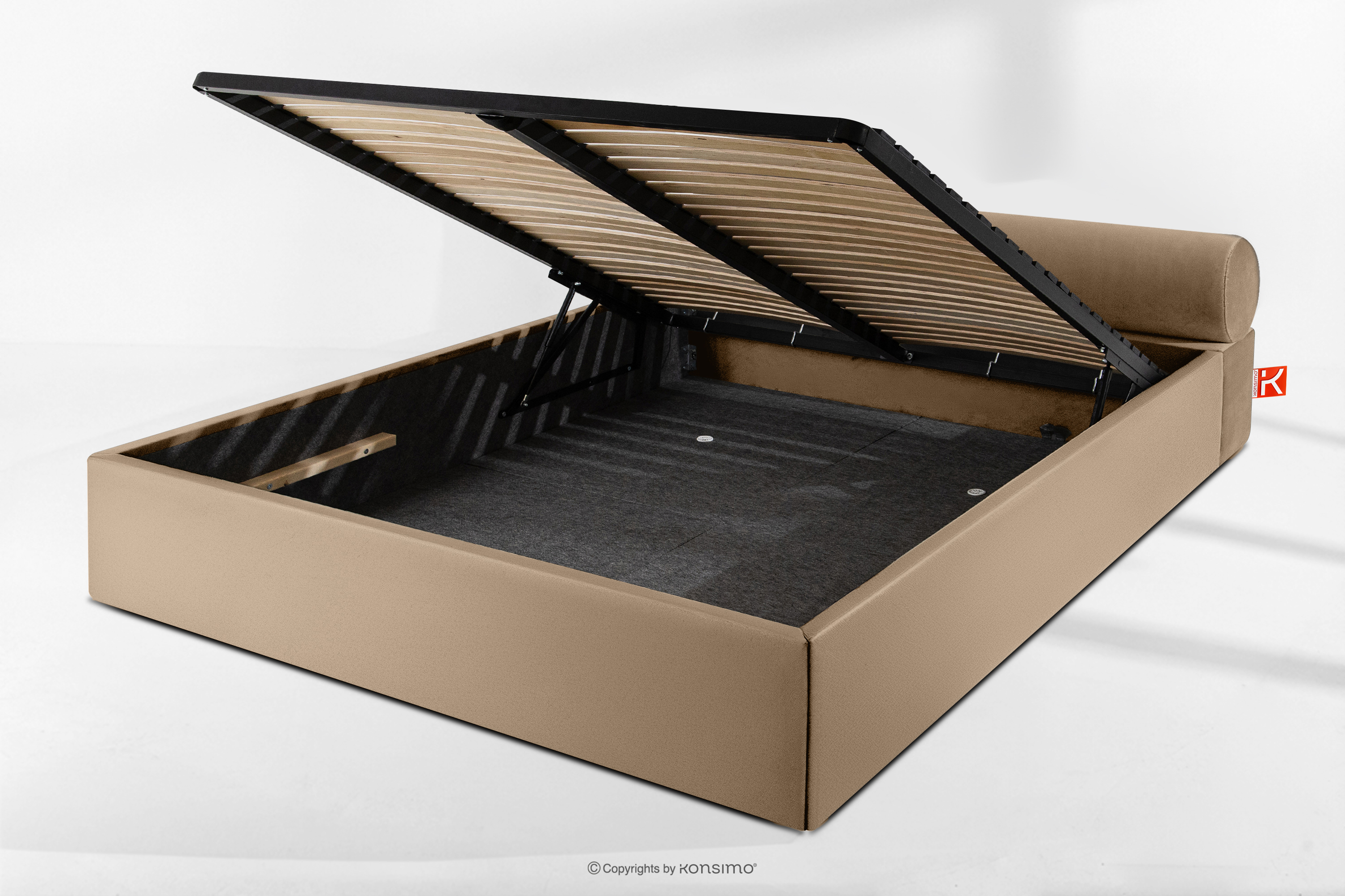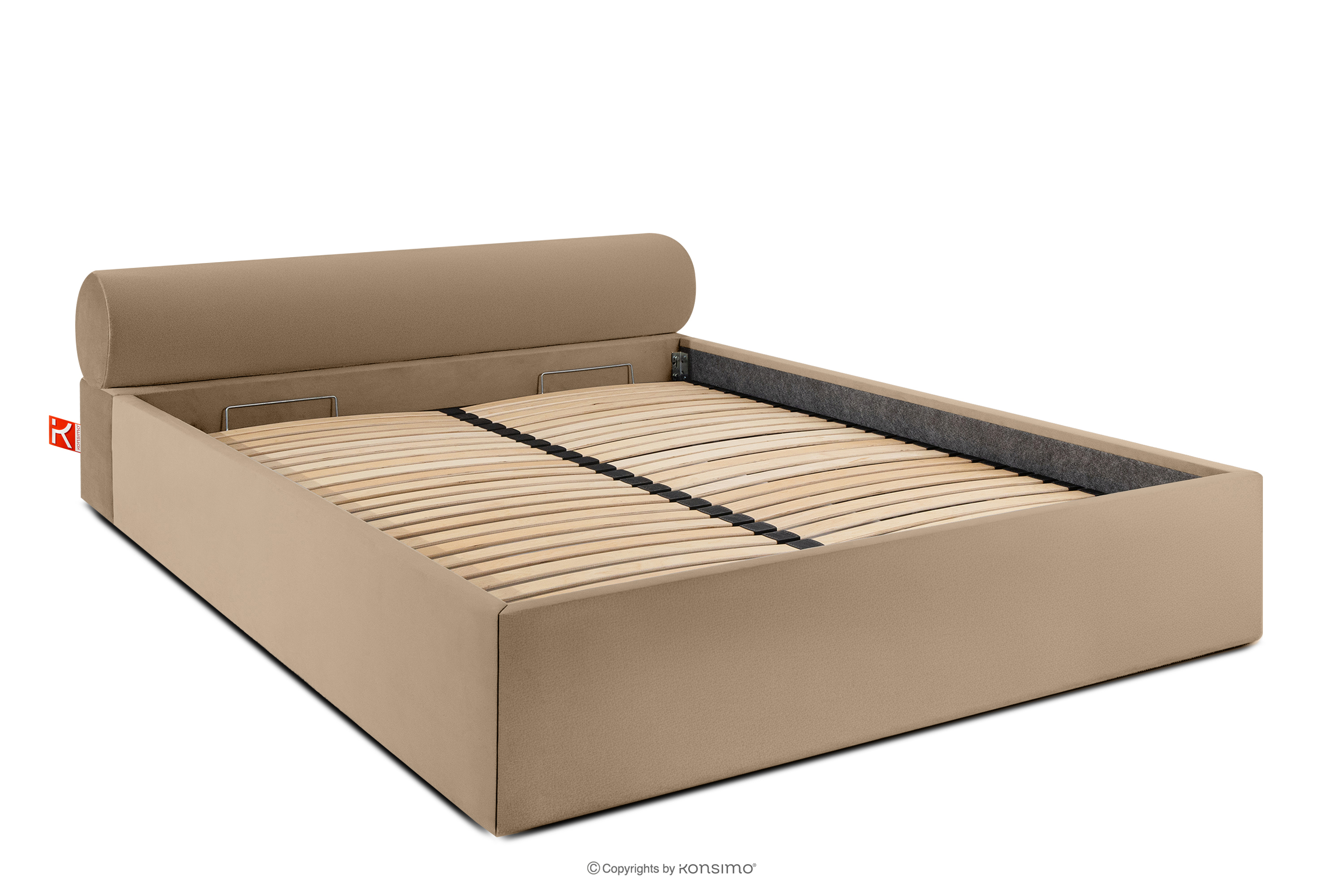 LUNEO zobacz całą kolekcję Łóżko tapicerowane japandi z pojemnikiem na pościel 160 cm ciemny beżowy- kolor ciemny beżowy