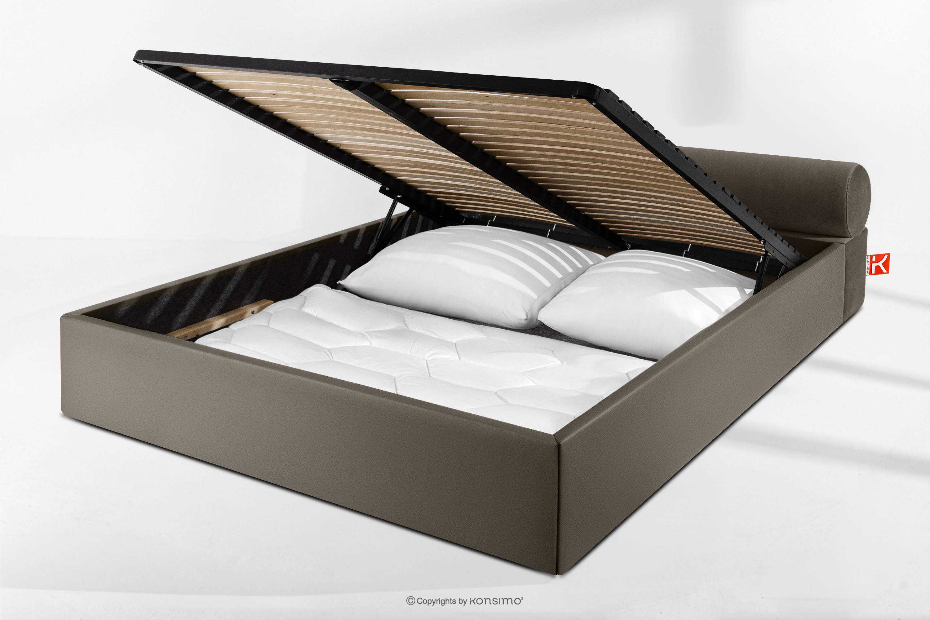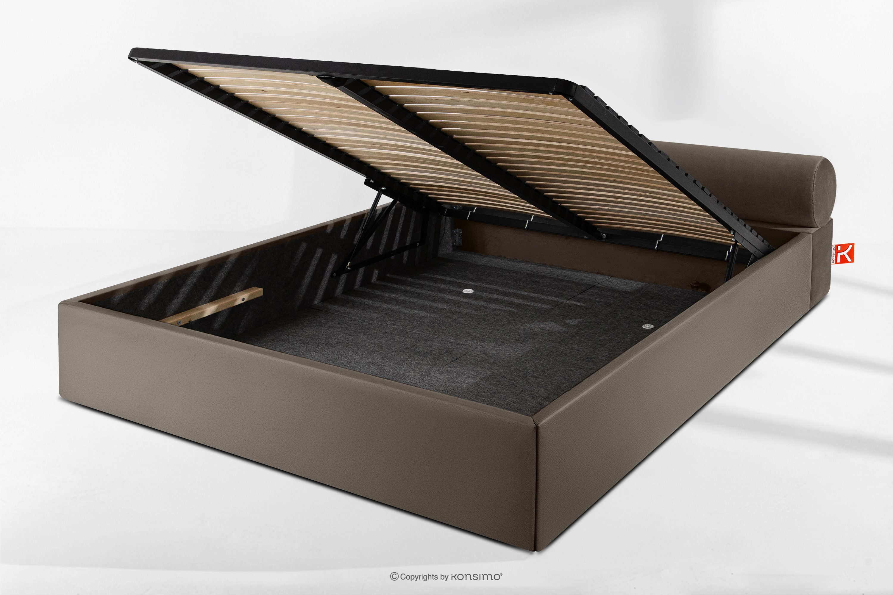dla produktu Łóżko tapicerowane japandi z pojemnikiem na pościel 160 cm brązowy