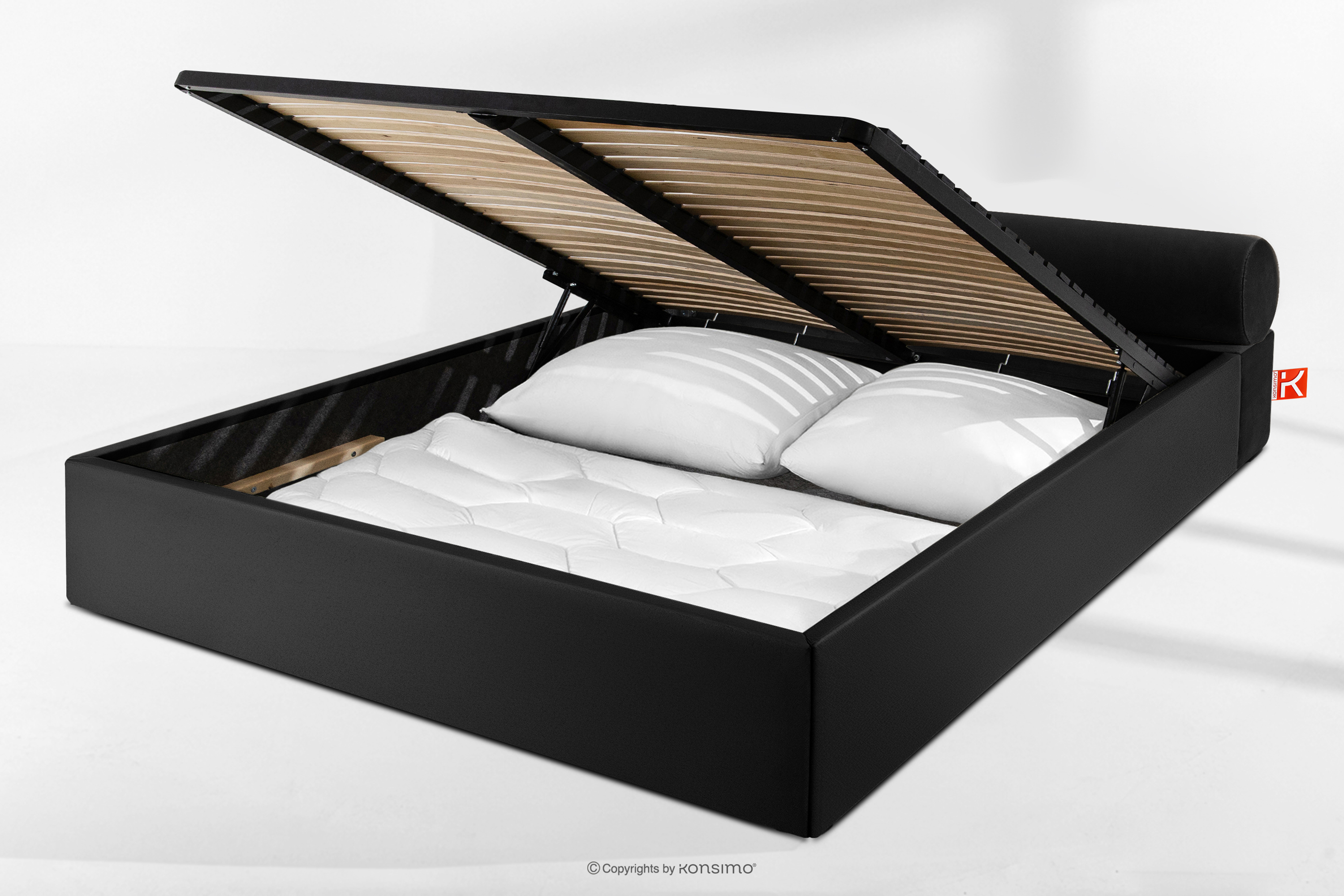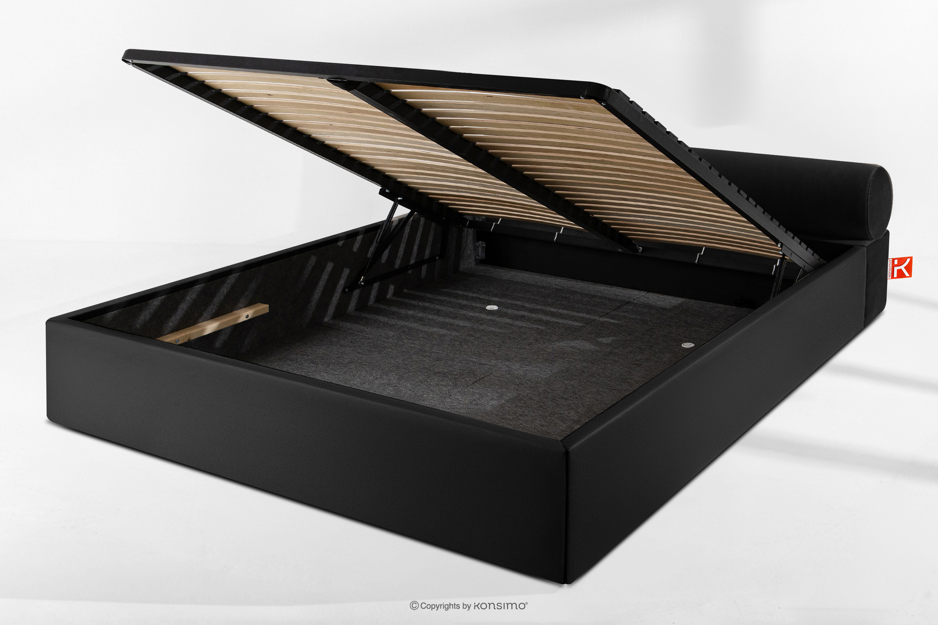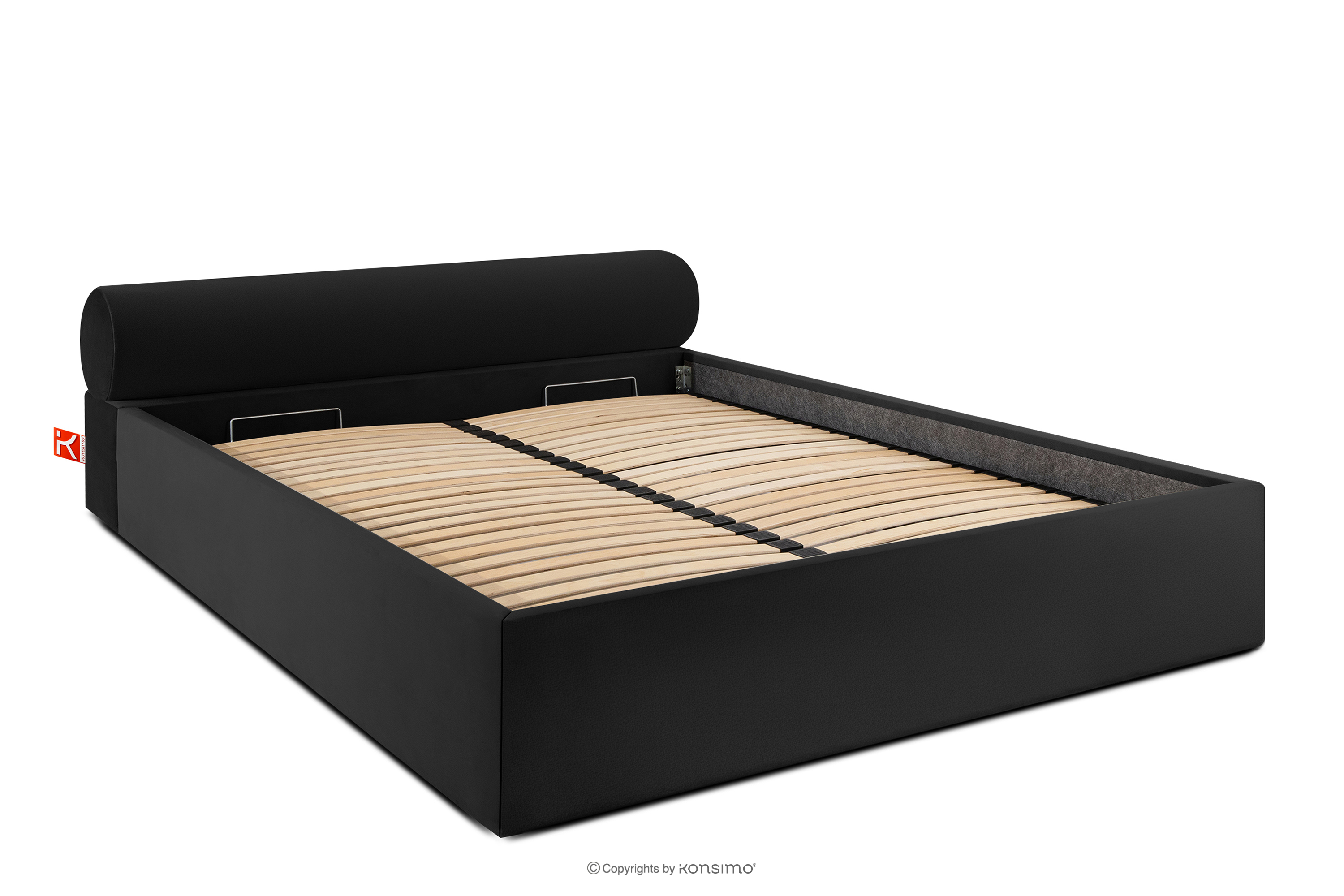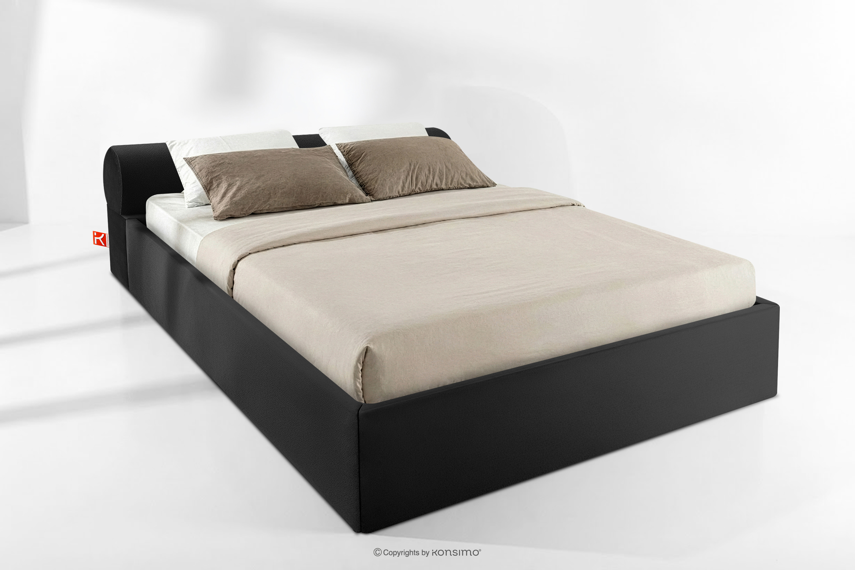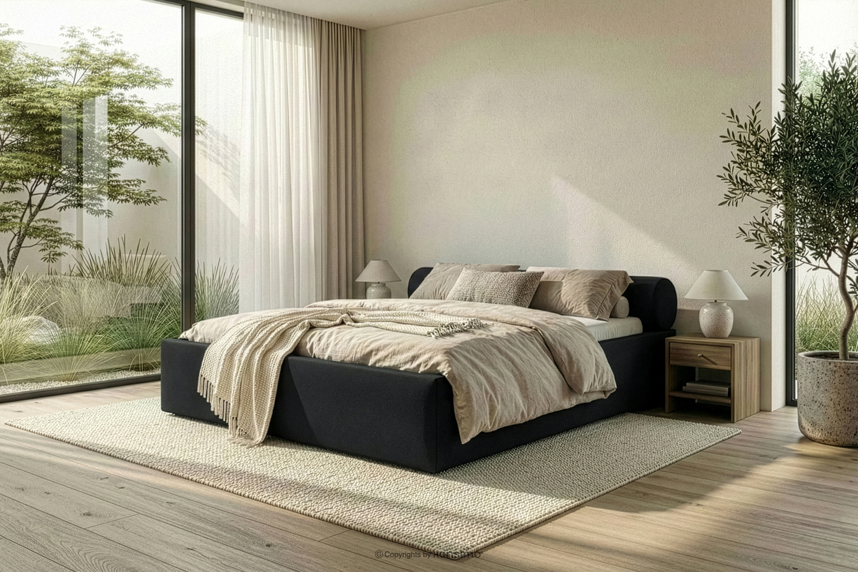 LUNEO zobacz całą kolekcję Łóżko tapicerowane japandi z pojemnikiem na pościel 180 cm czarny- kolor czarny