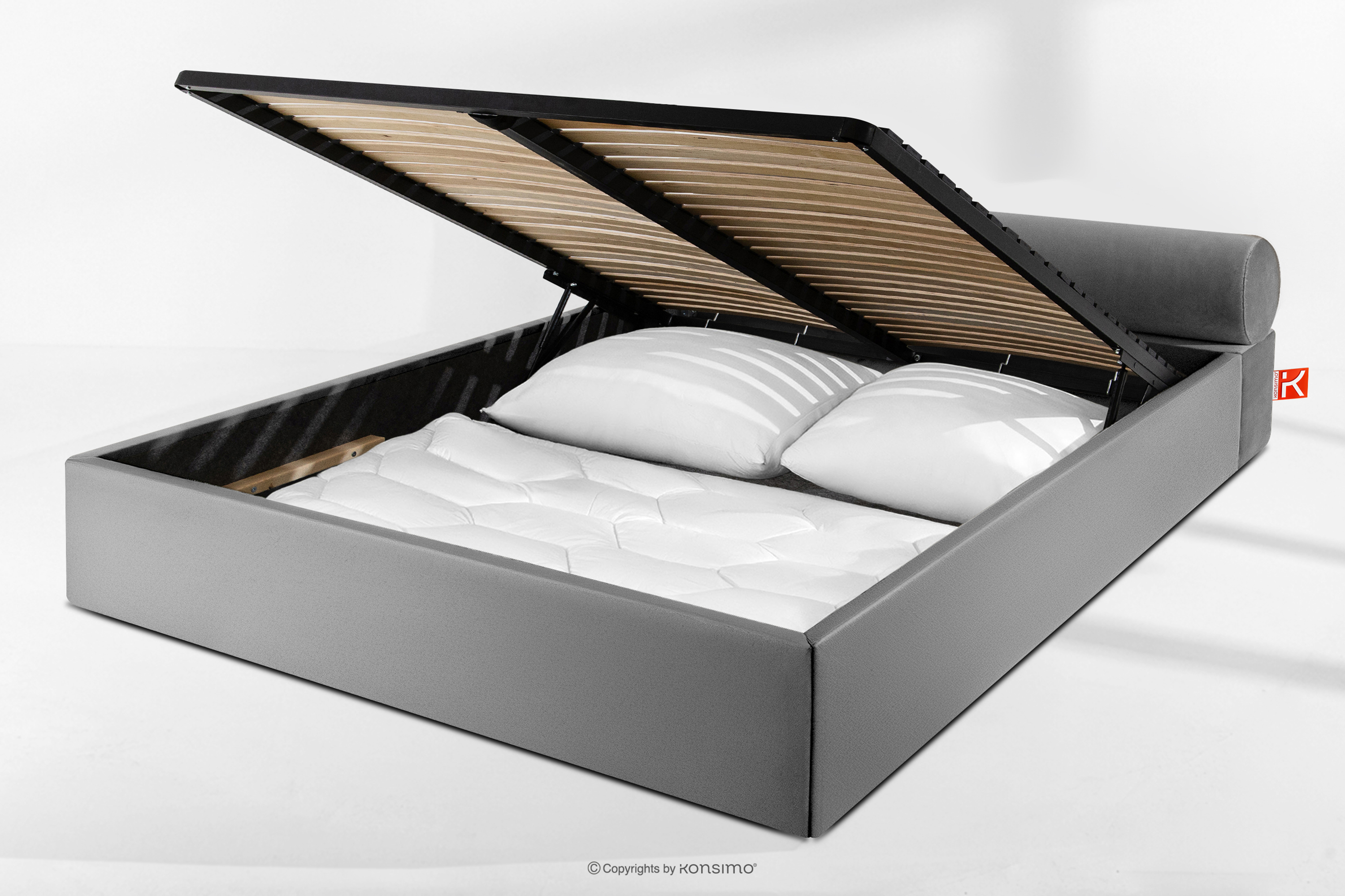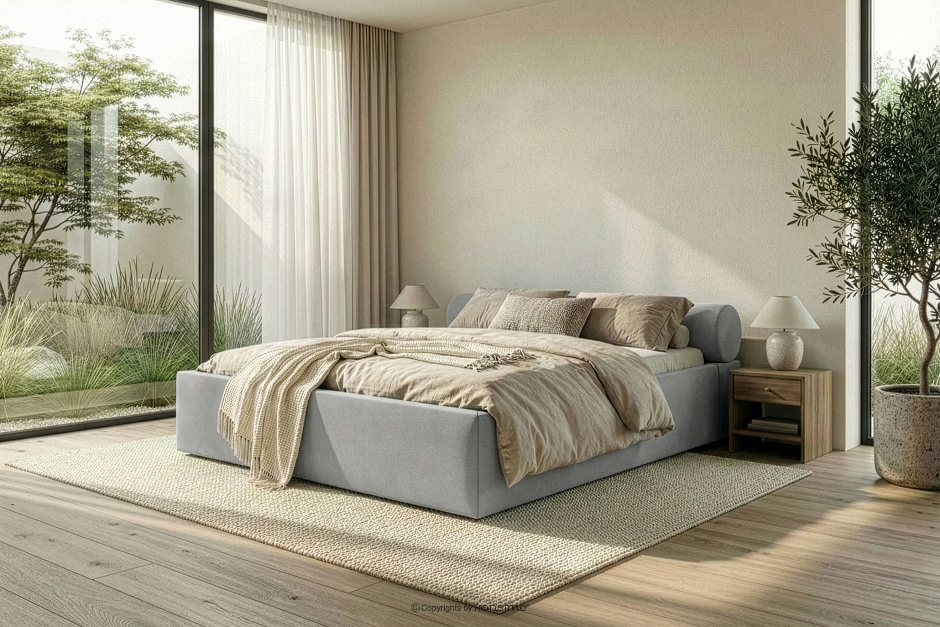 LUNEO zobacz całą kolekcję Łóżko tapicerowane japandi z pojemnikiem na pościel 180 cm jasny szary- kolor jasny szary