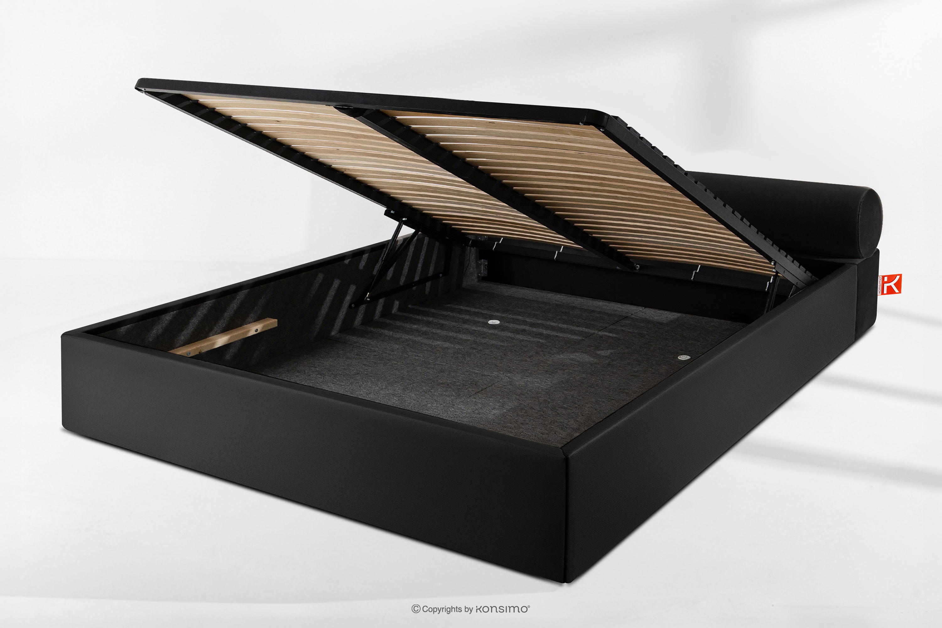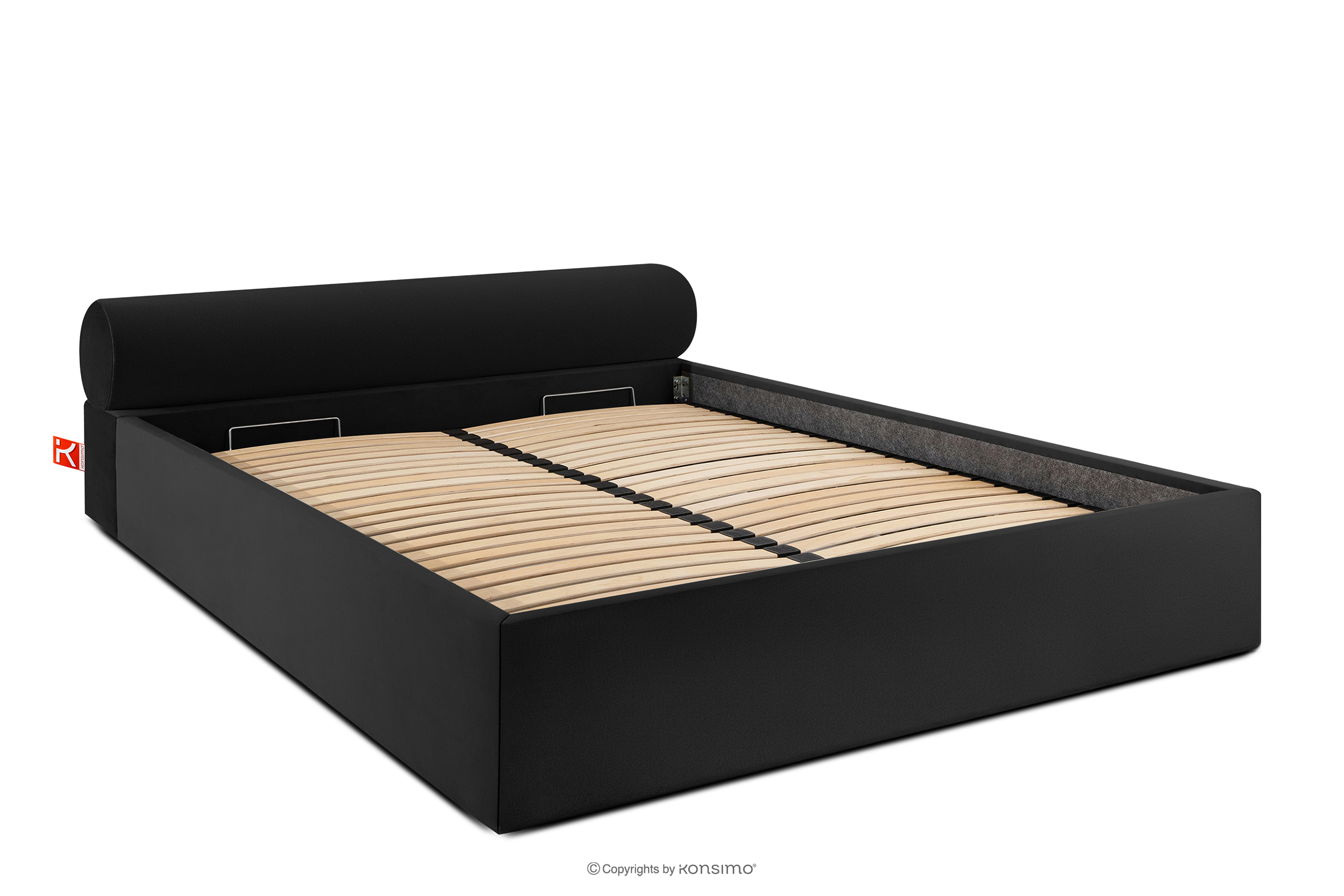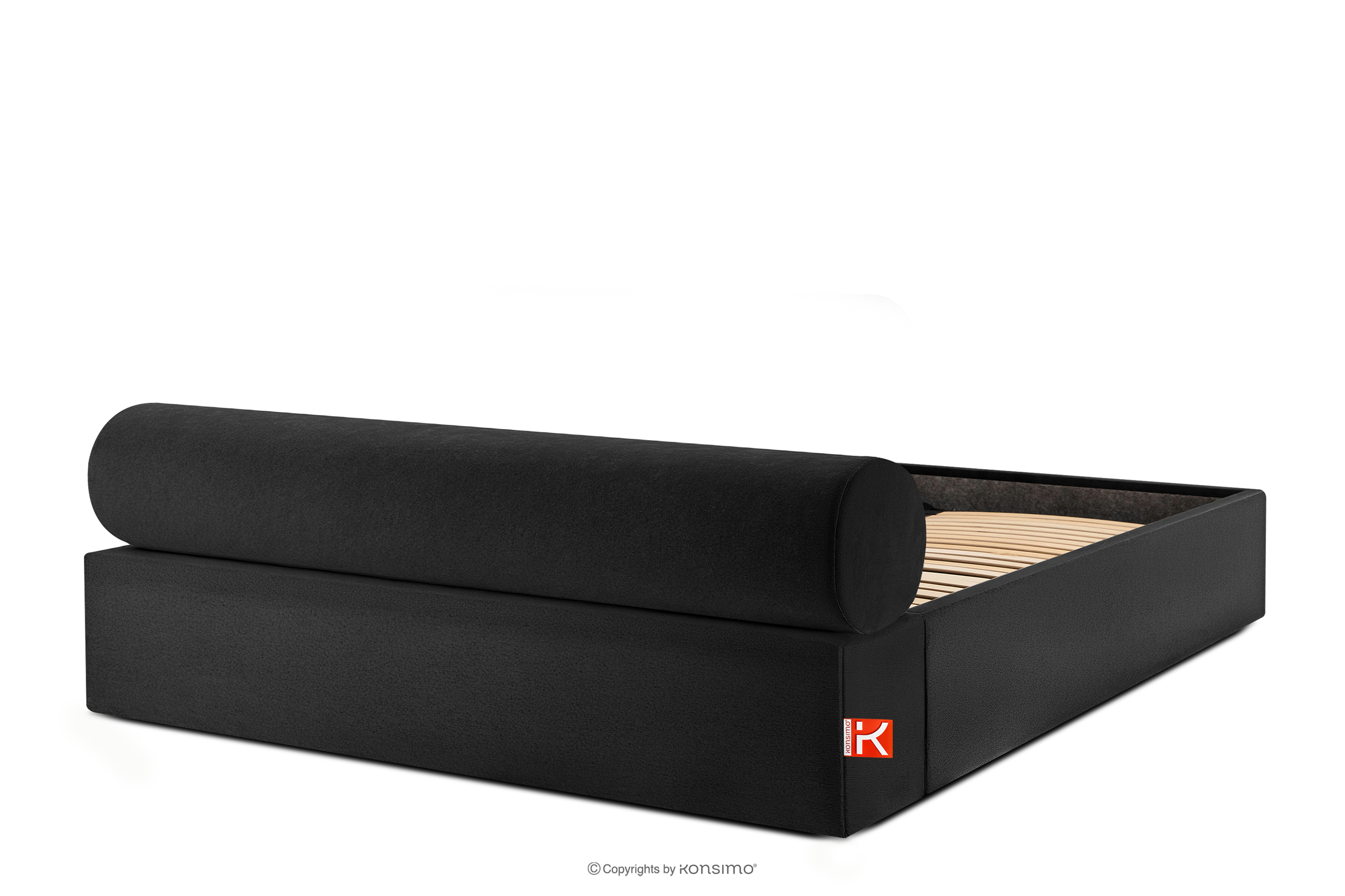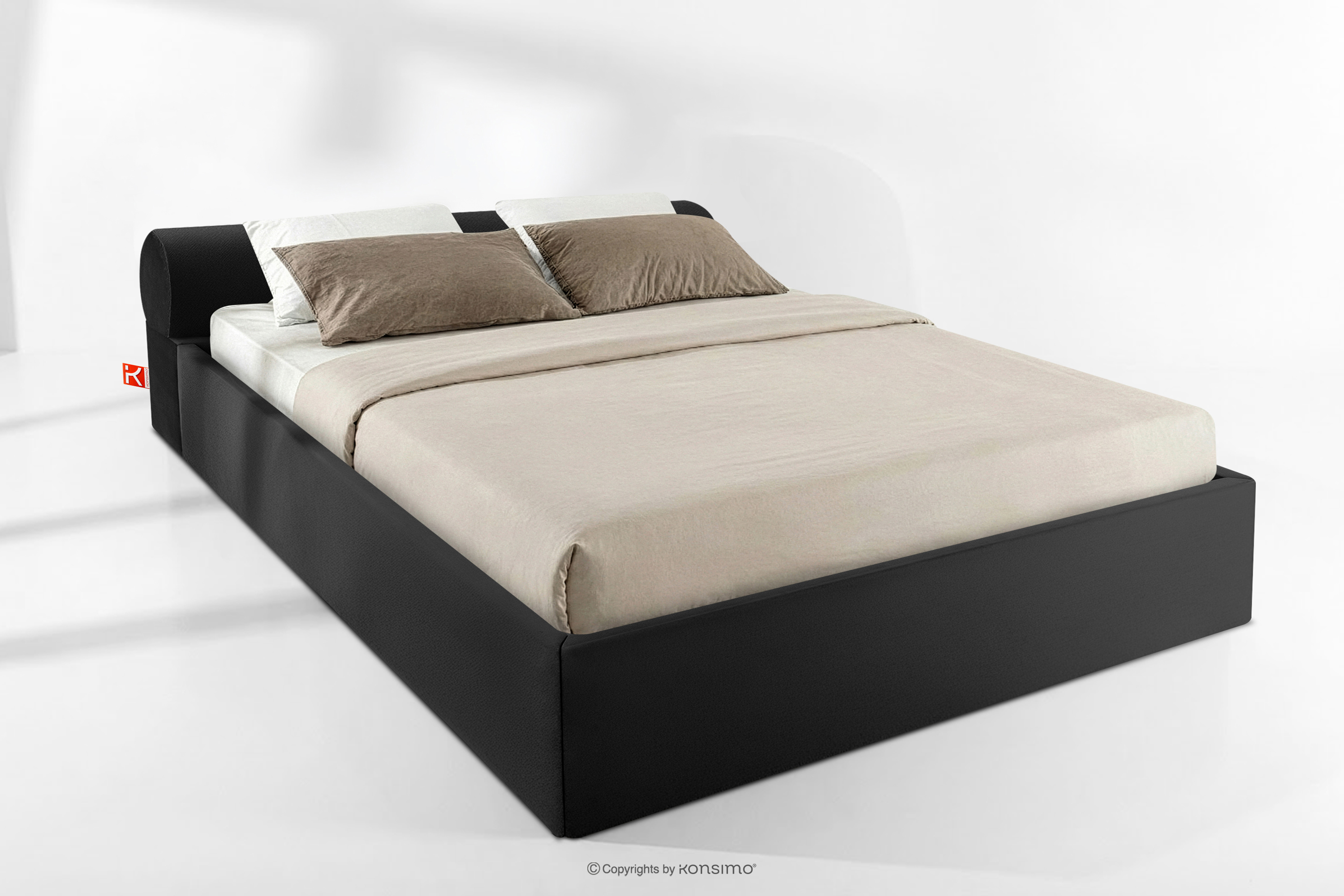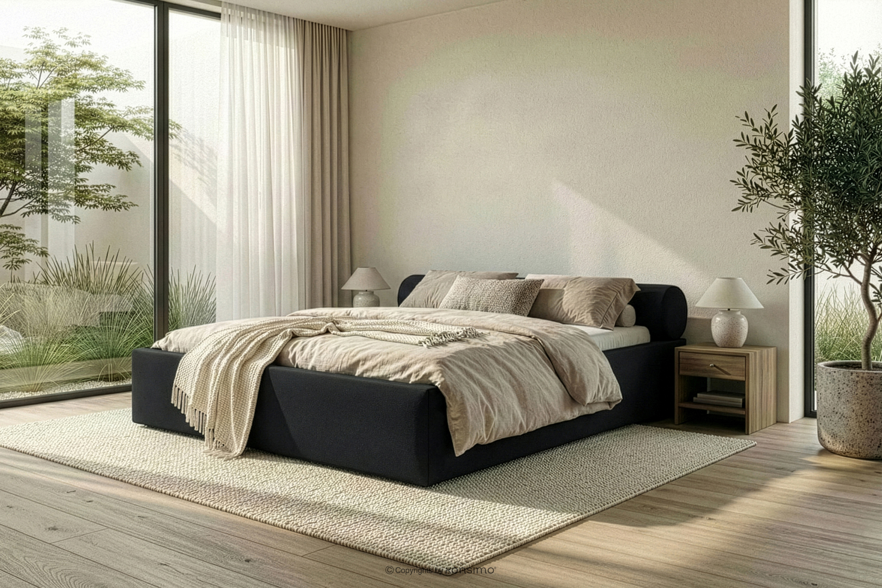 LUNEO zobacz całą kolekcję Łóżko tapicerowane japandi z pojemnikiem na pościel 200 cm czarny- kolor czarny