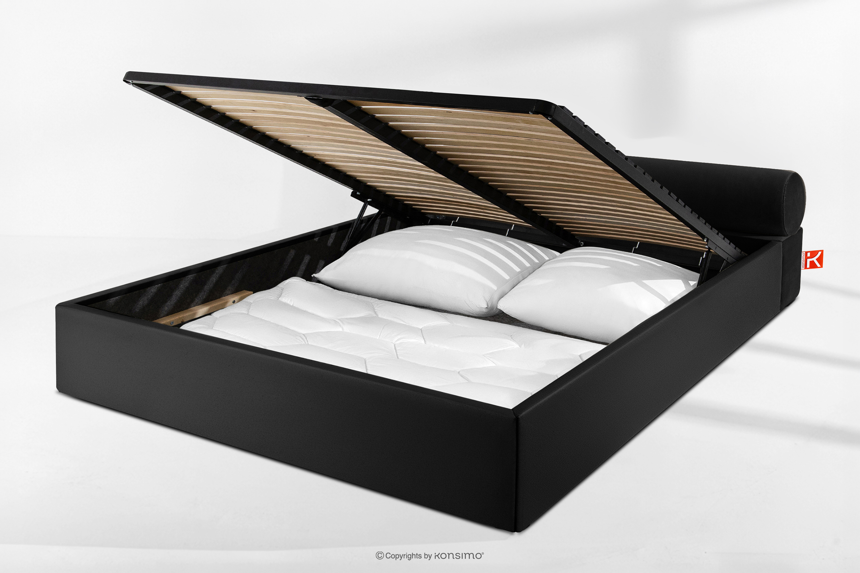 dla produktu Łóżko tapicerowane japandi z pojemnikiem na pościel 200 cm czarny