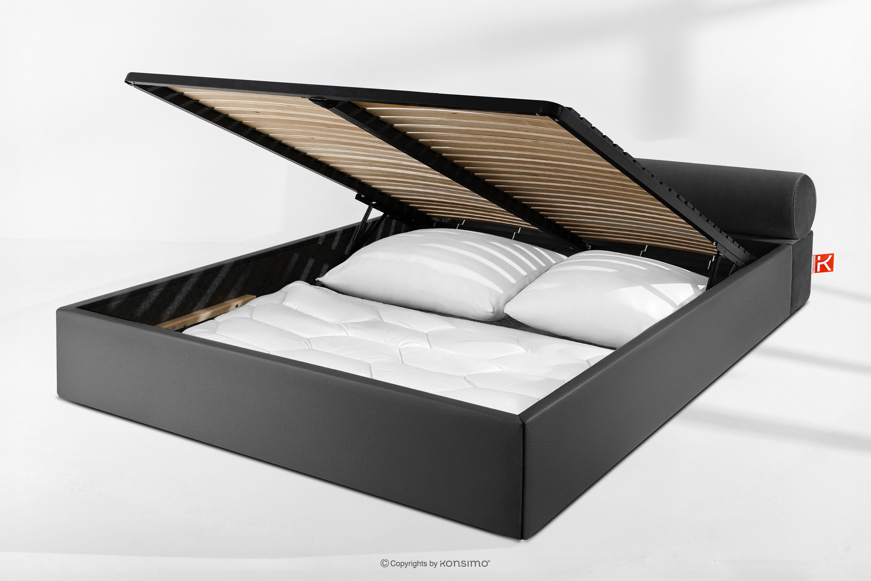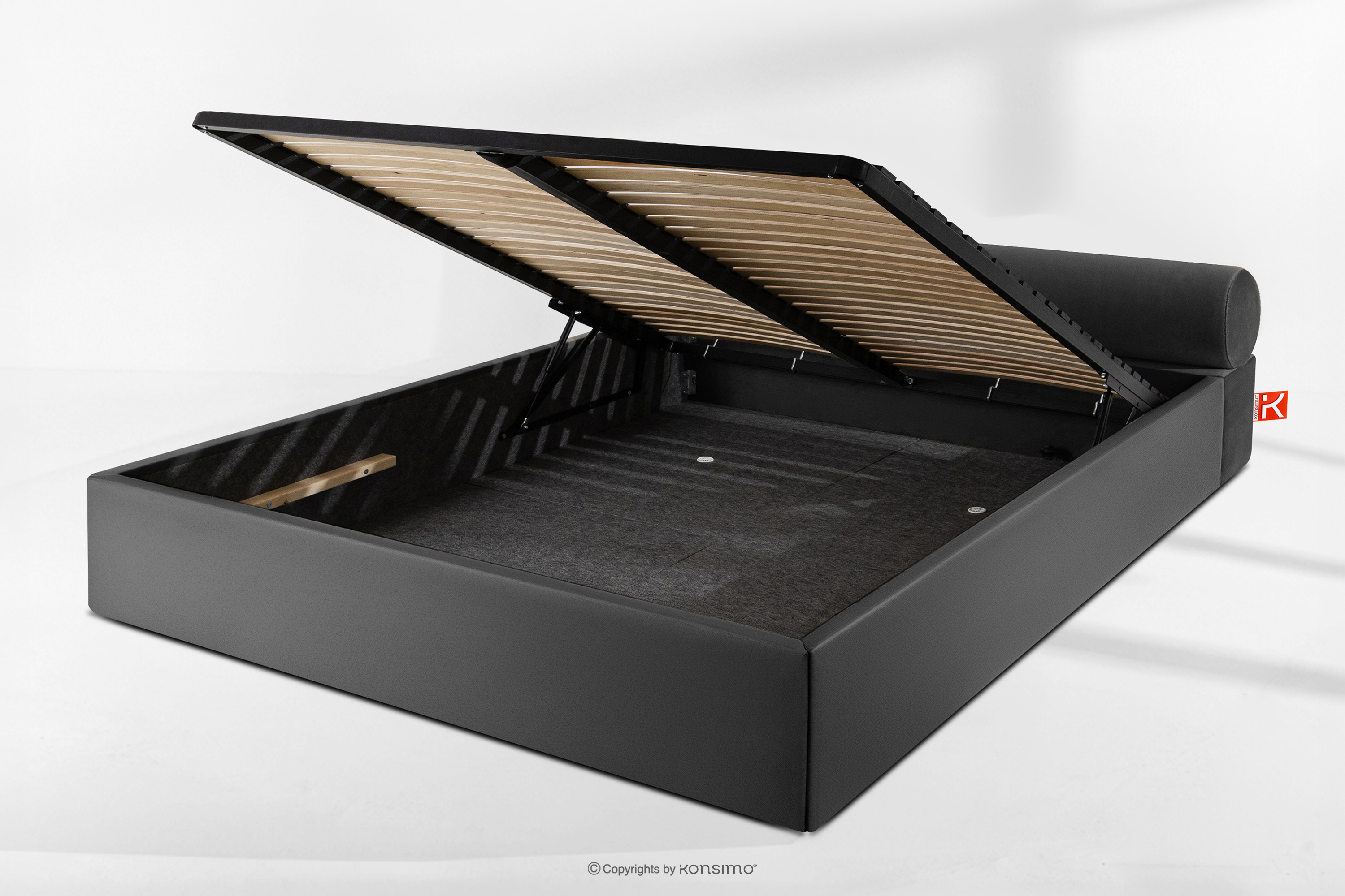 LUNEO Łóżko tapicerowane japandi z pojemnikiem na pościel 200 cm antracytowy