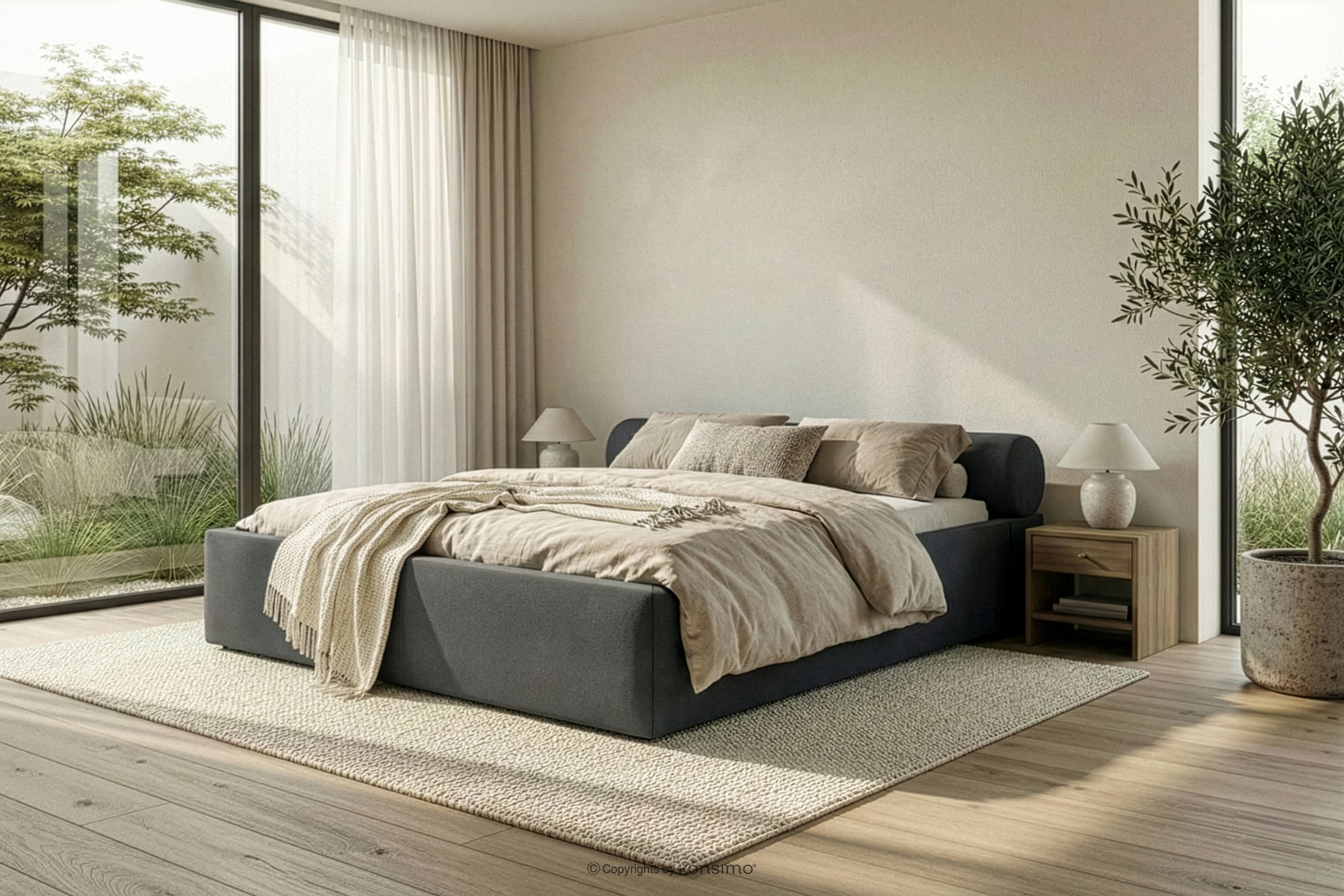 LUNEO zobacz całą kolekcję Łóżko tapicerowane japandi z pojemnikiem na pościel 200 cm antracytowy- kolor antracytowy