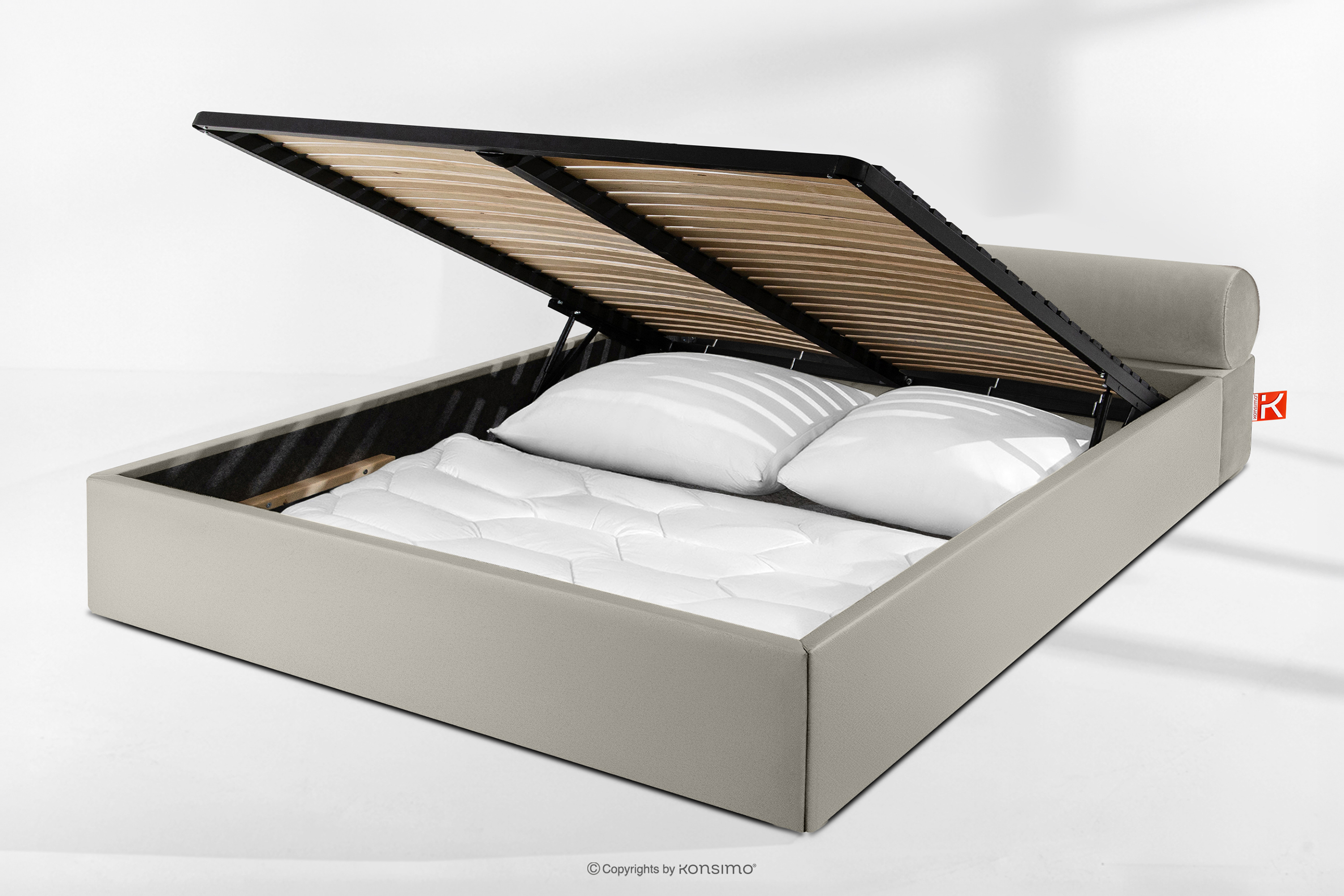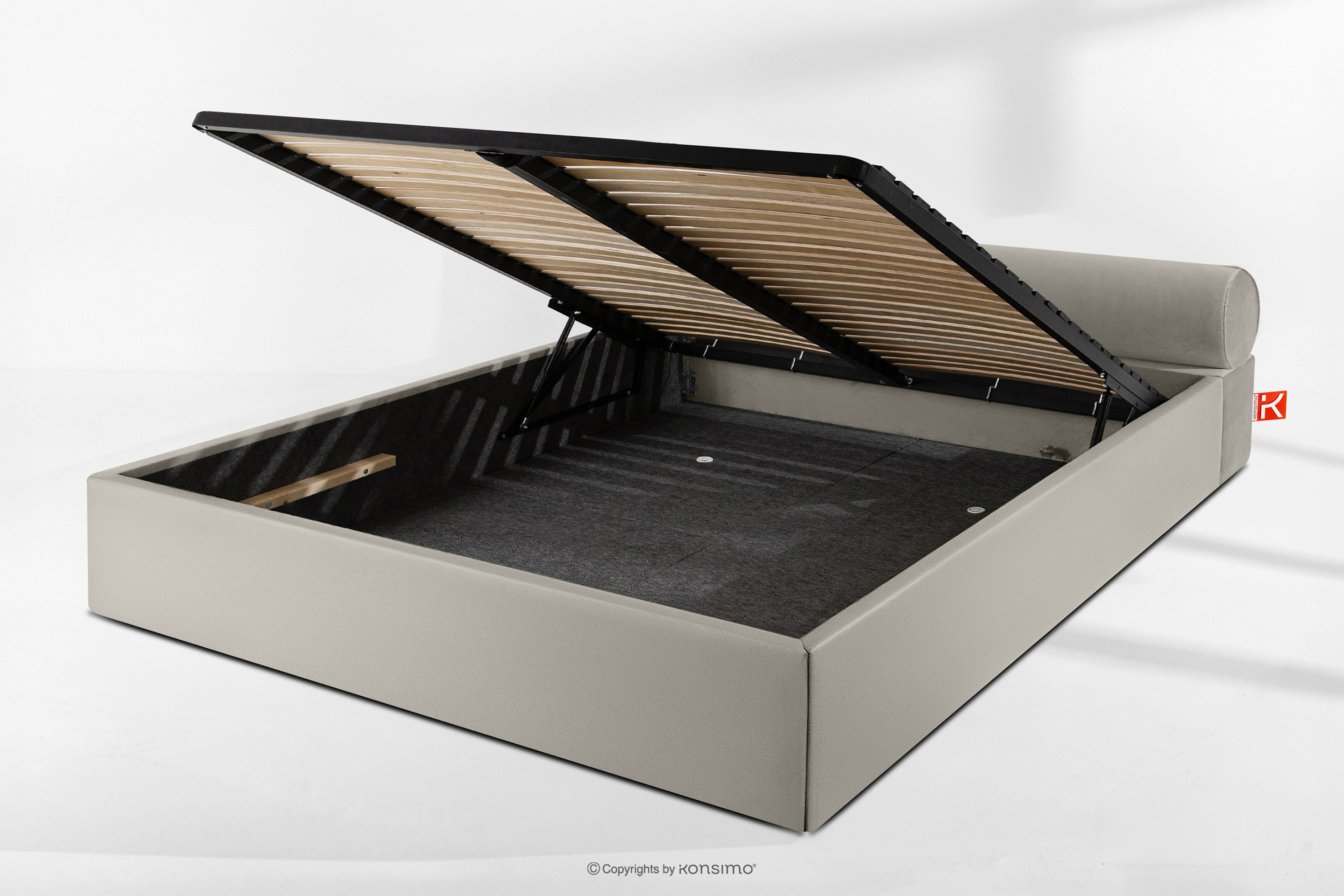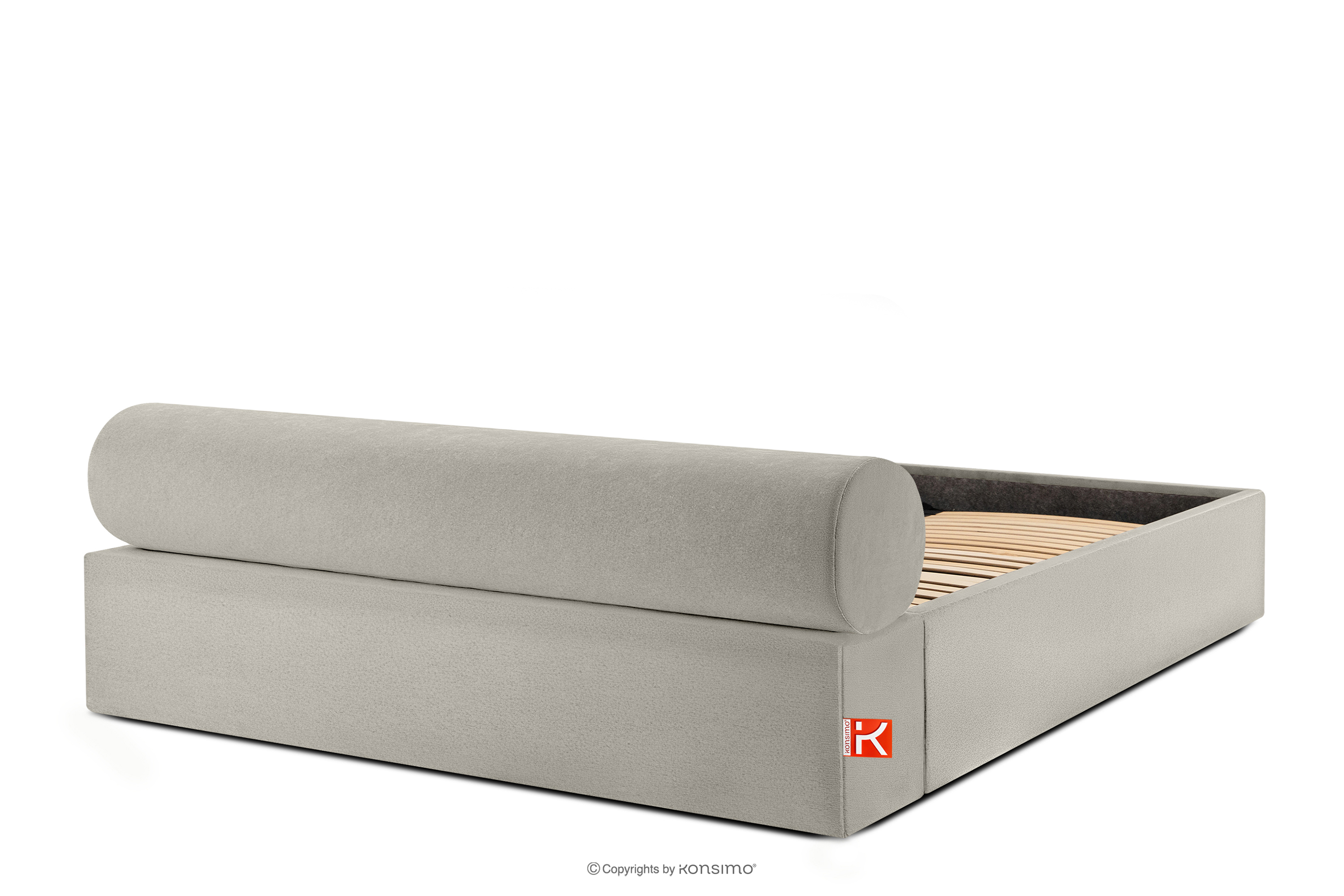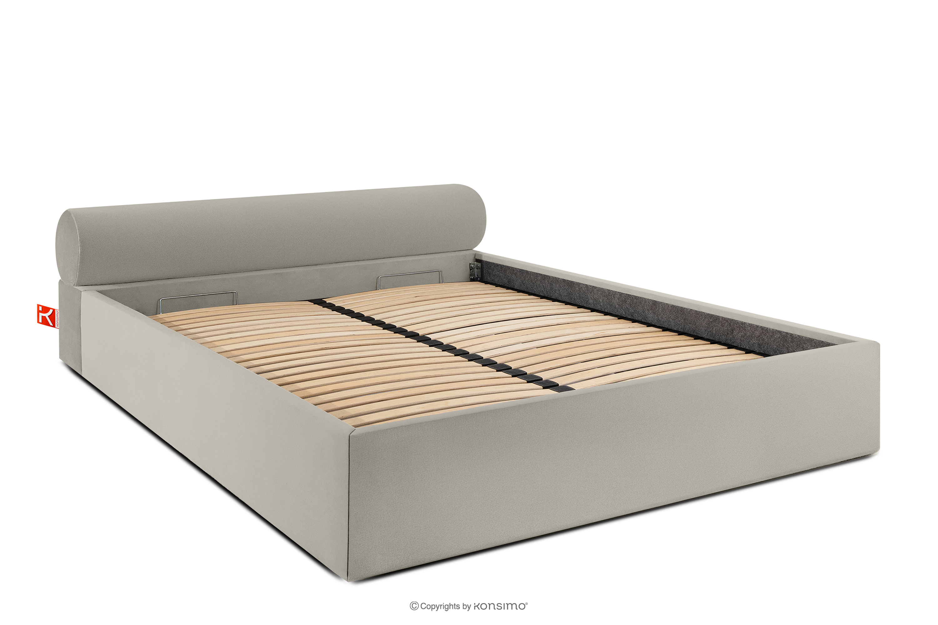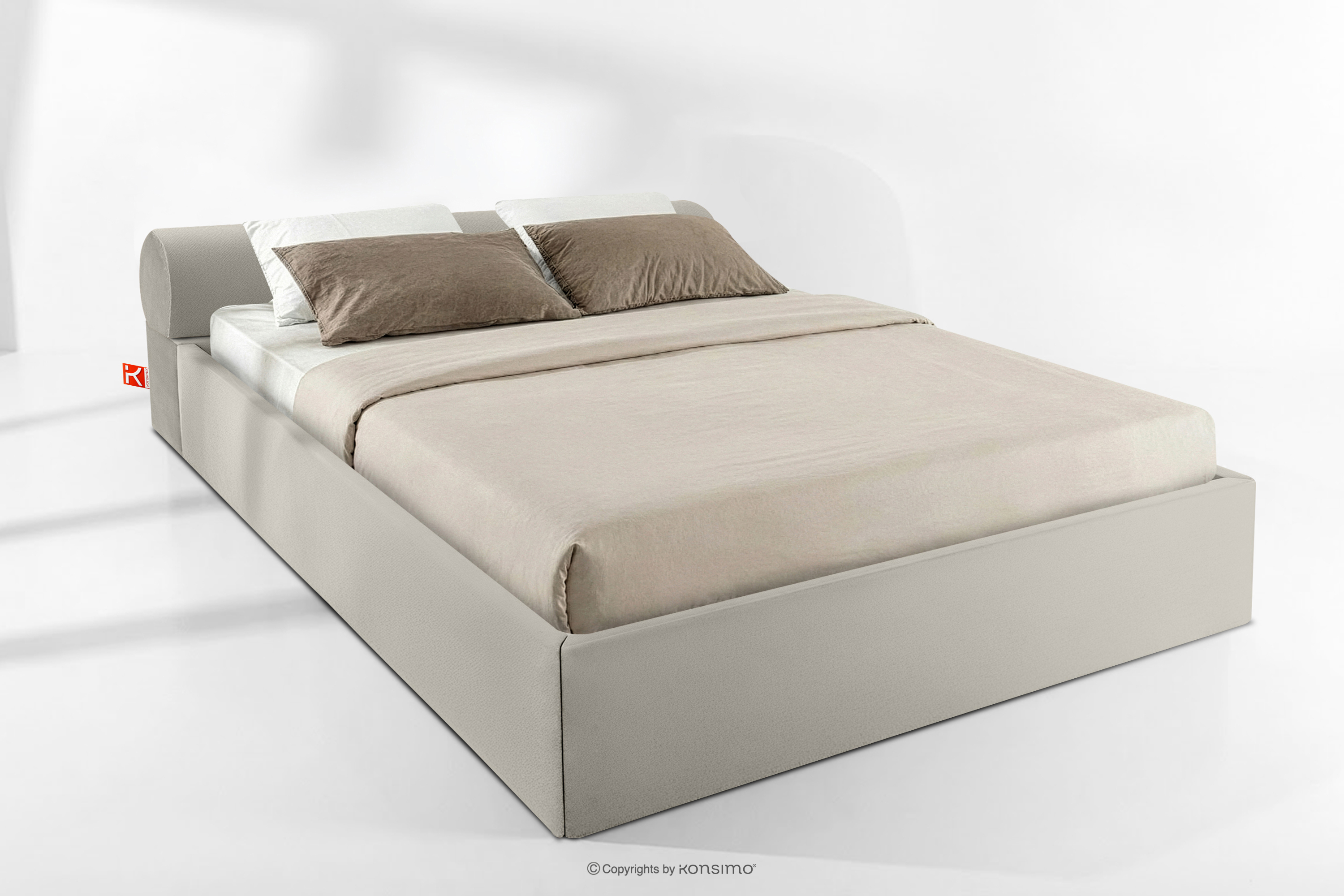 LUNEO Łóżko tapicerowane japandi z pojemnikiem na pościel 200 cm kremowy