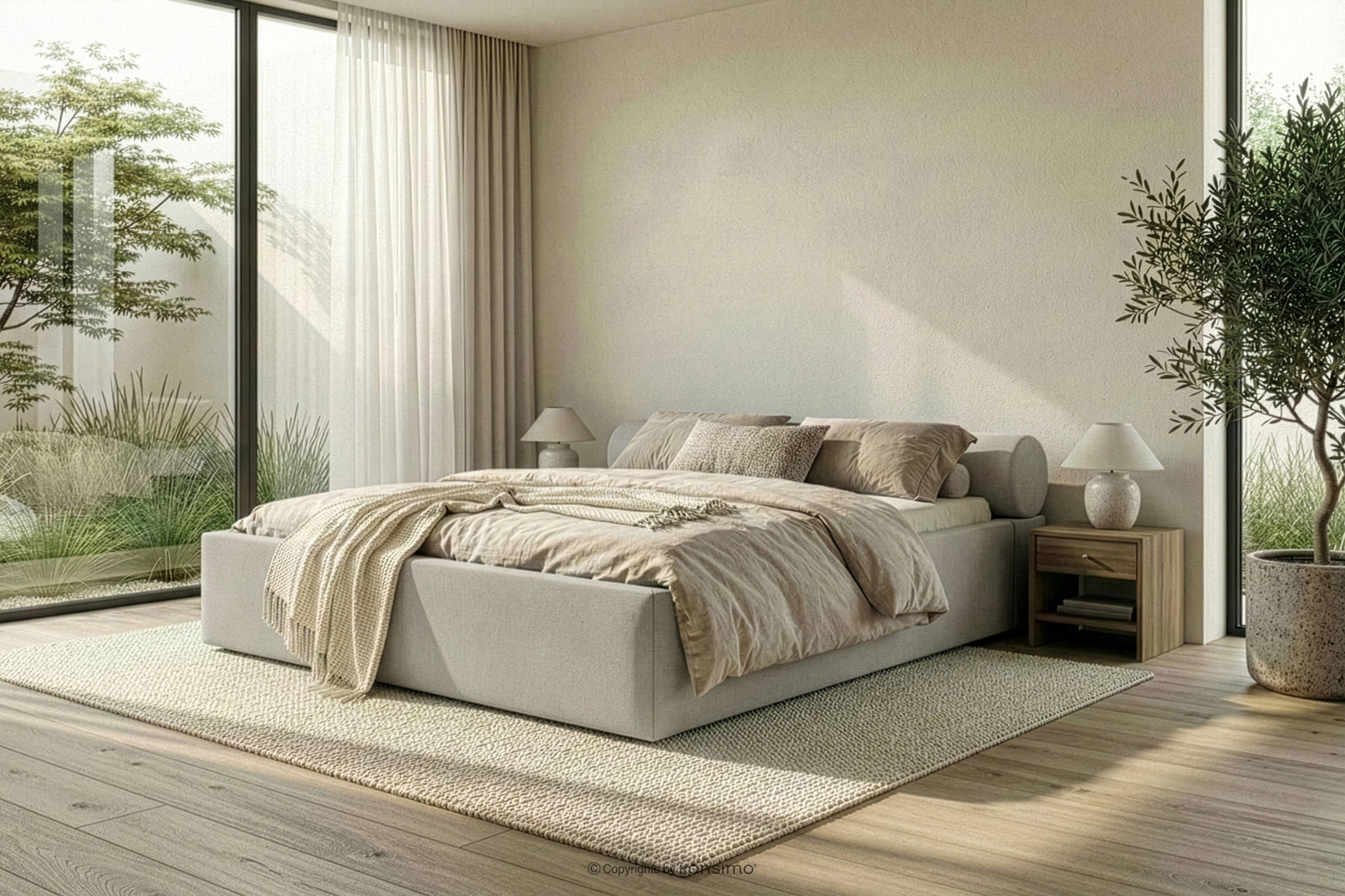 LUNEO zobacz całą kolekcję Łóżko tapicerowane japandi z pojemnikiem na pościel 200 cm kremowy- kolor kremowy