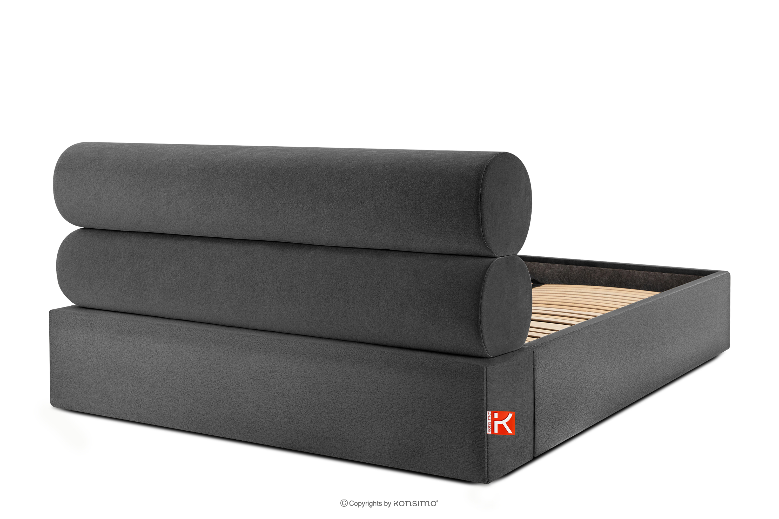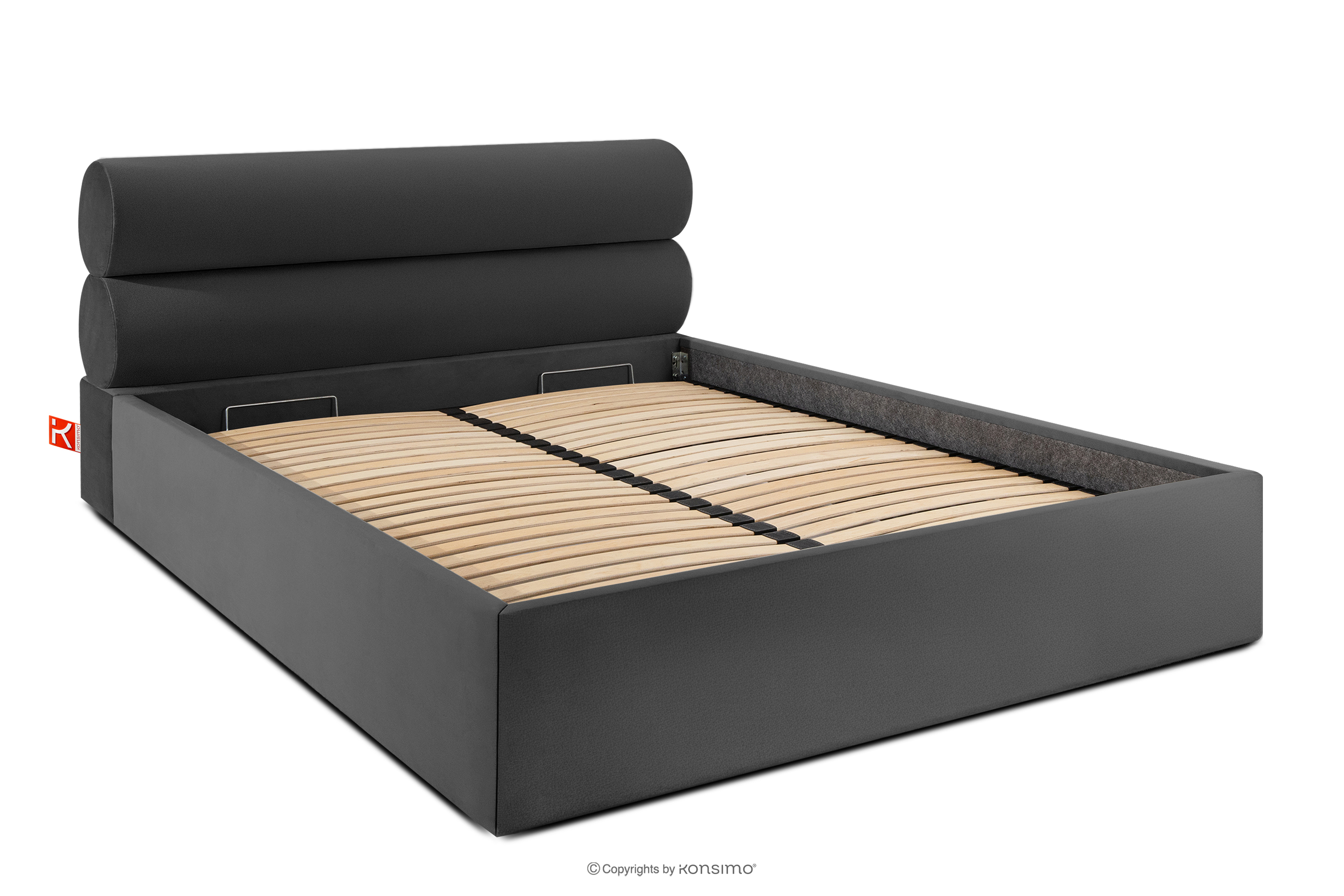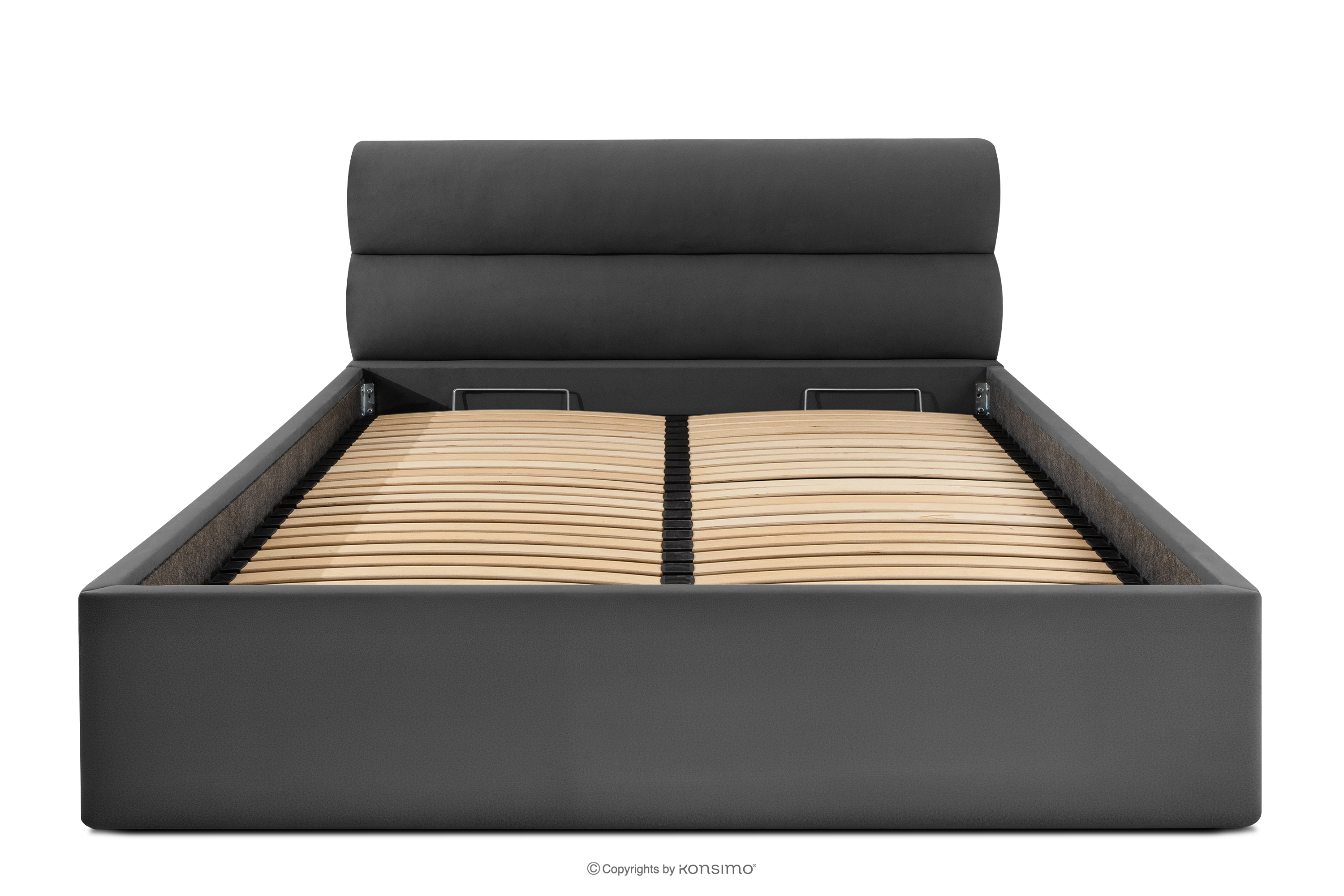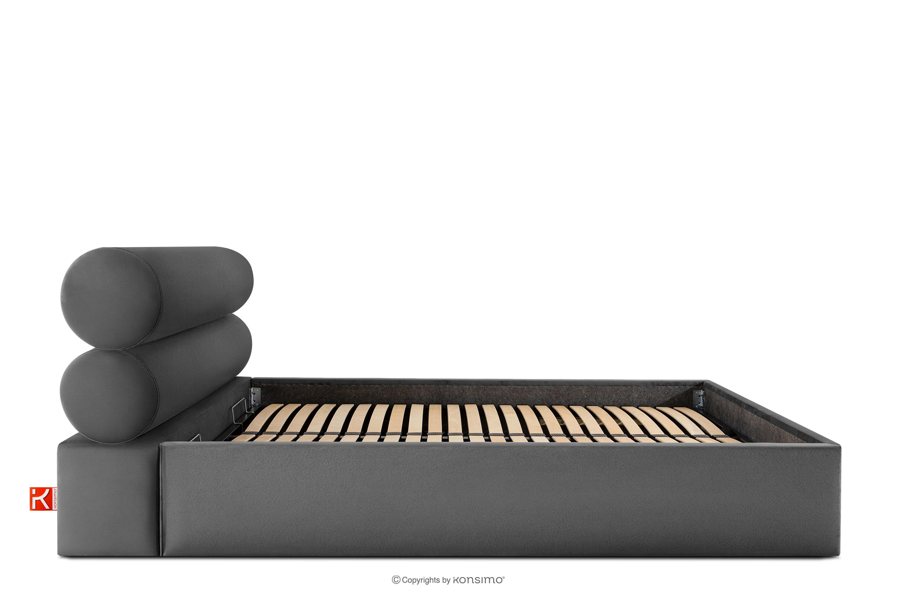 LUNEO zobacz całą kolekcję Łóżko tapicerowane w stylu japandi z pojemnikiem na pościel 160 cm antracytowy- kolor antracytowy