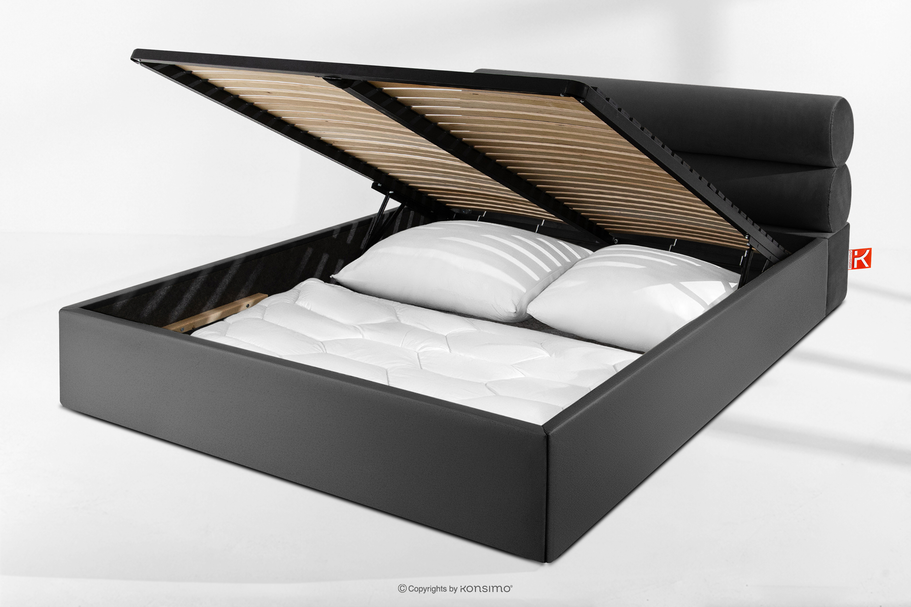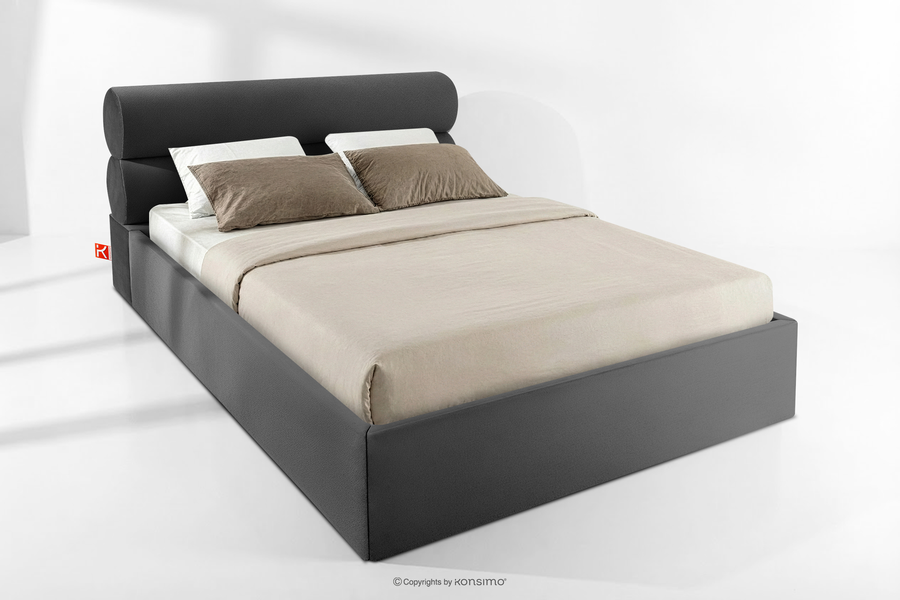 dla produktu Łóżko tapicerowane w stylu japandi z pojemnikiem na pościel 160 cm antracytowy