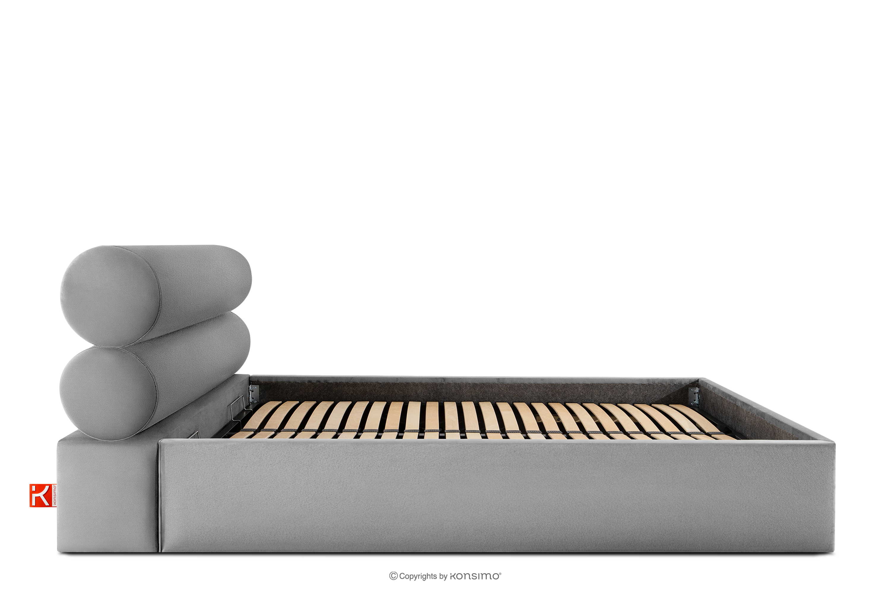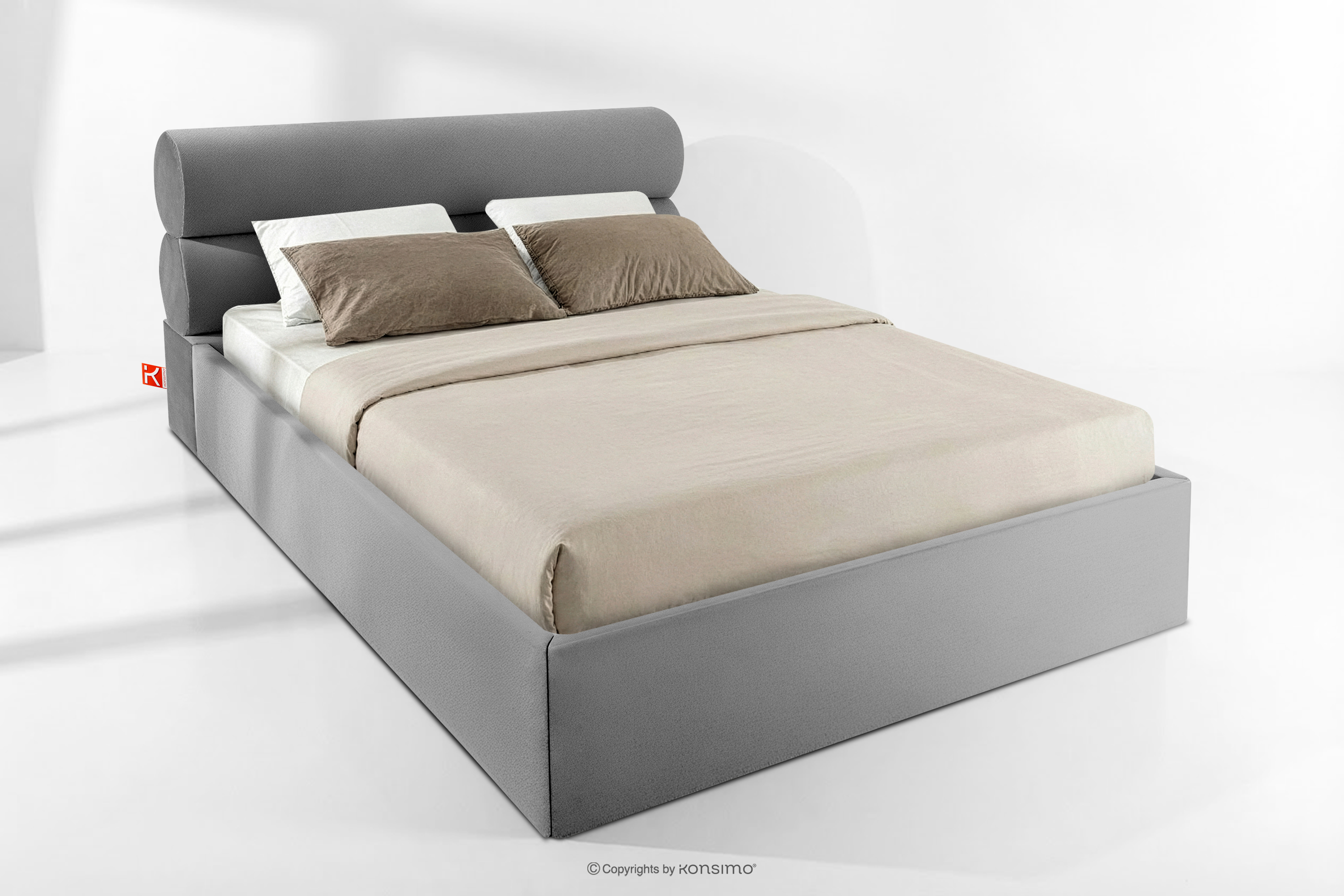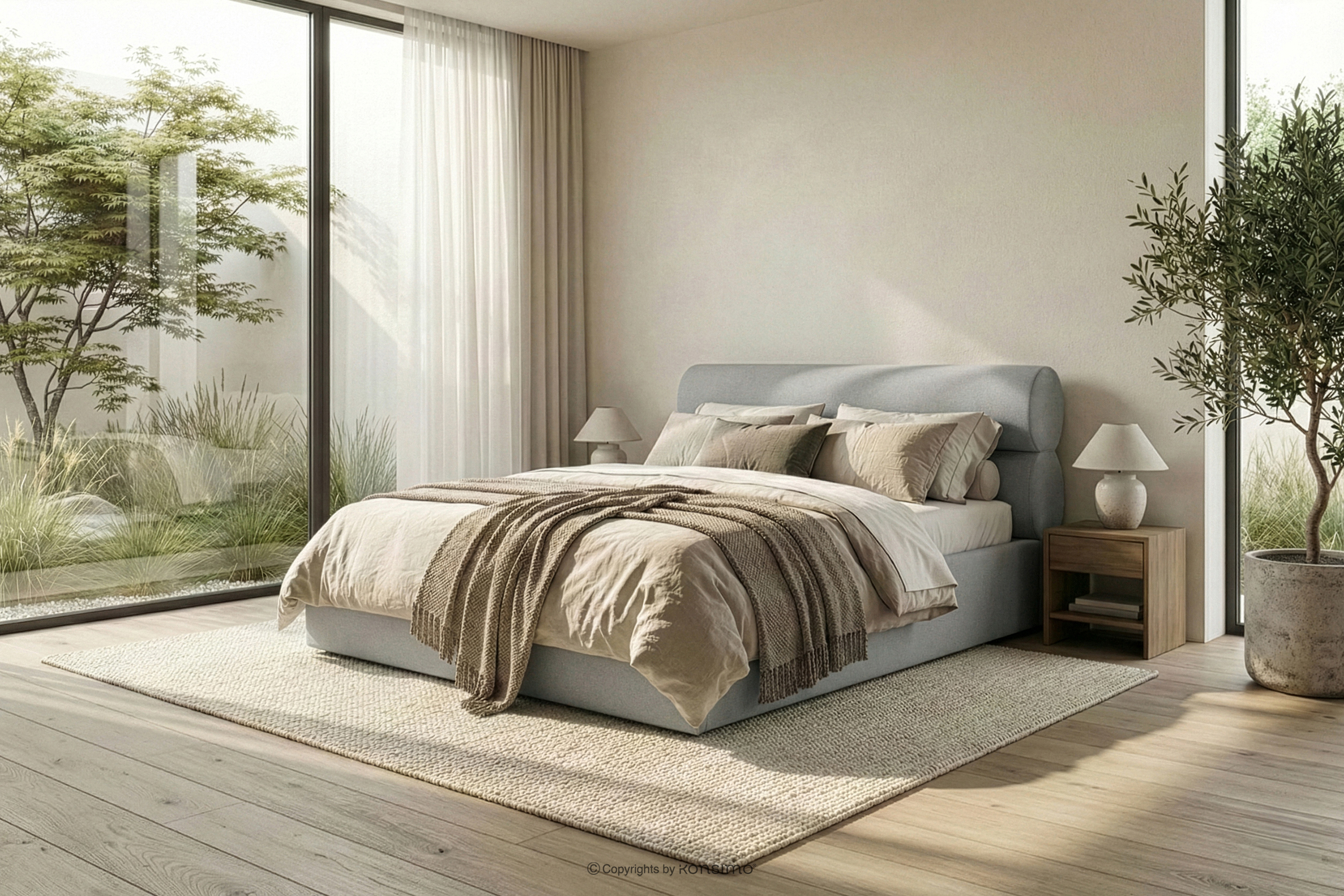 LUNEO zobacz całą kolekcję Łóżko tapicerowane w stylu japandi z pojemnikiem na pościel 160 cm jasny szary- kolor jasny szary