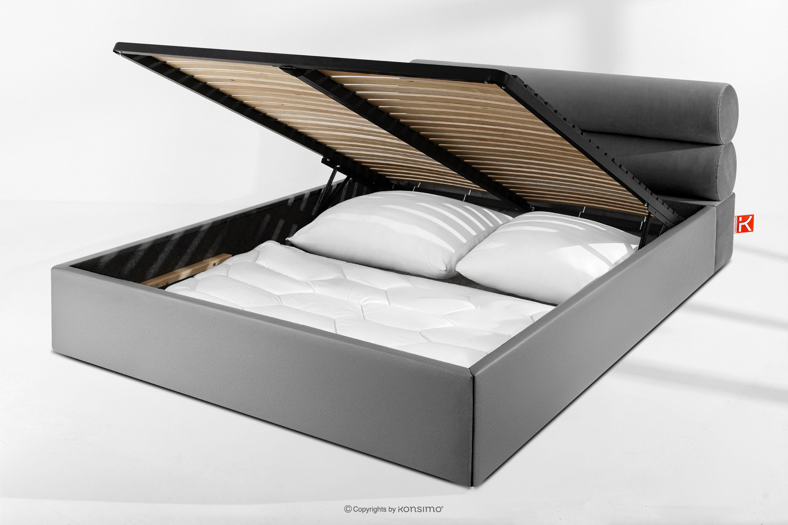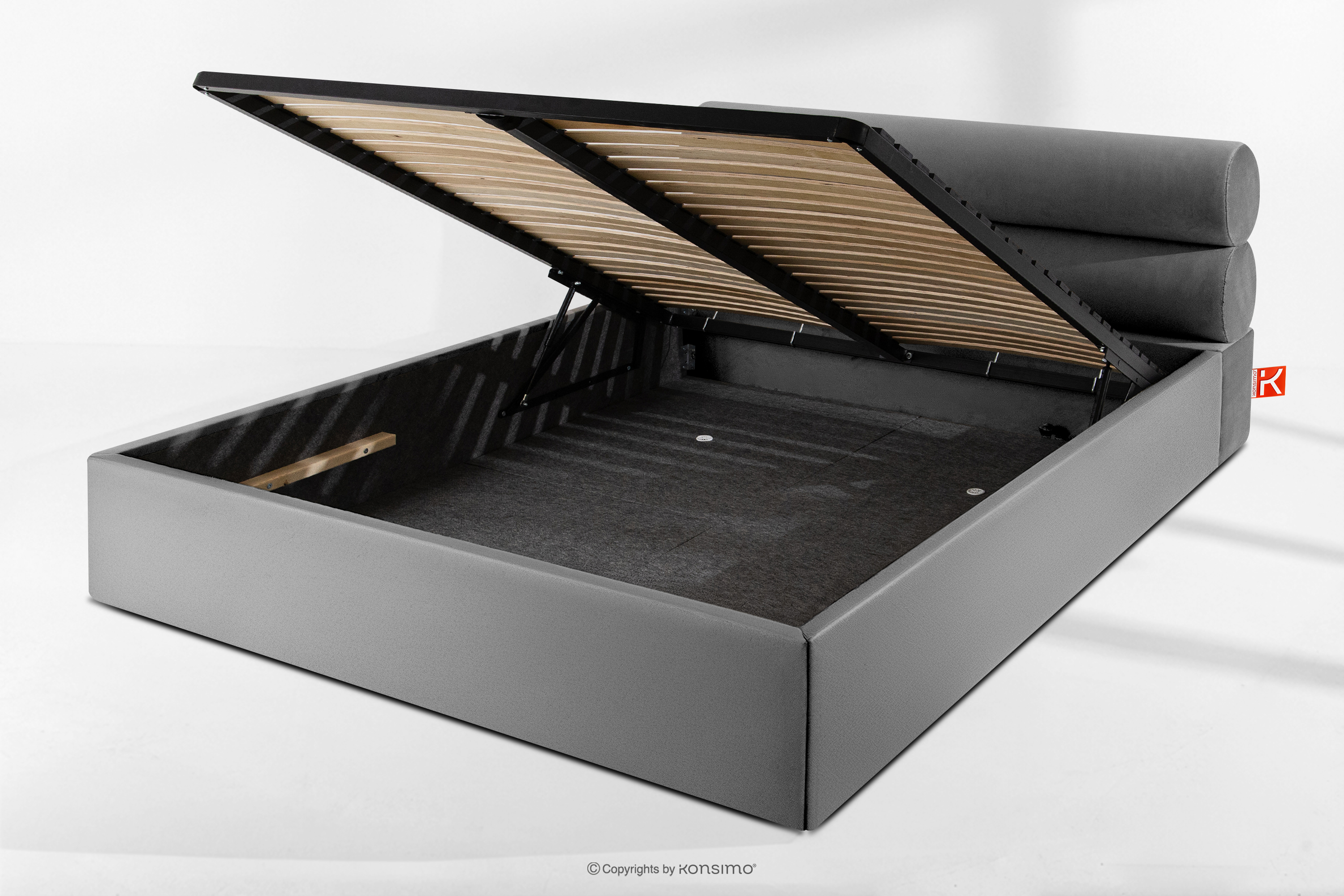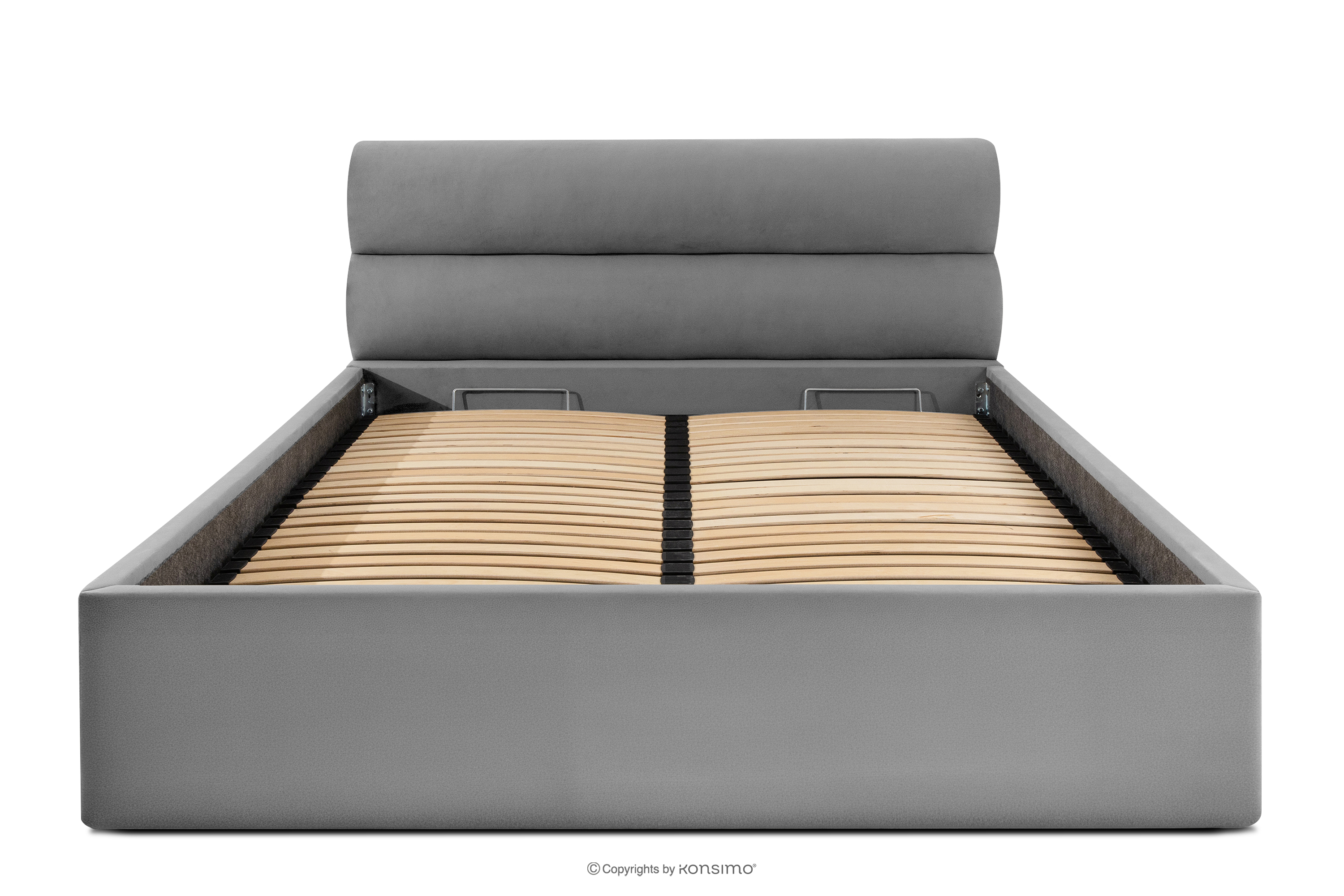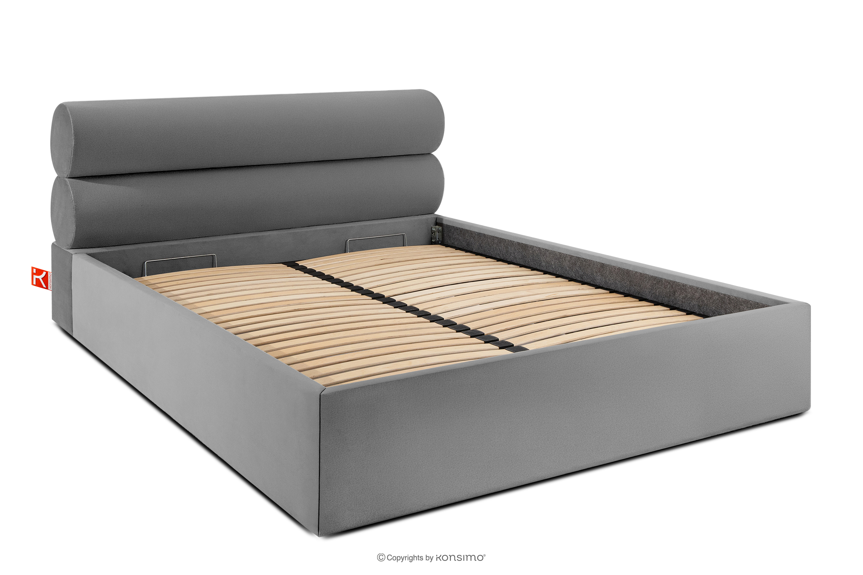 LUNEO zobacz całą kolekcję Łóżko tapicerowane w stylu japandi z pojemnikiem na pościel 160 cm jasny szary- kolor jasny szary