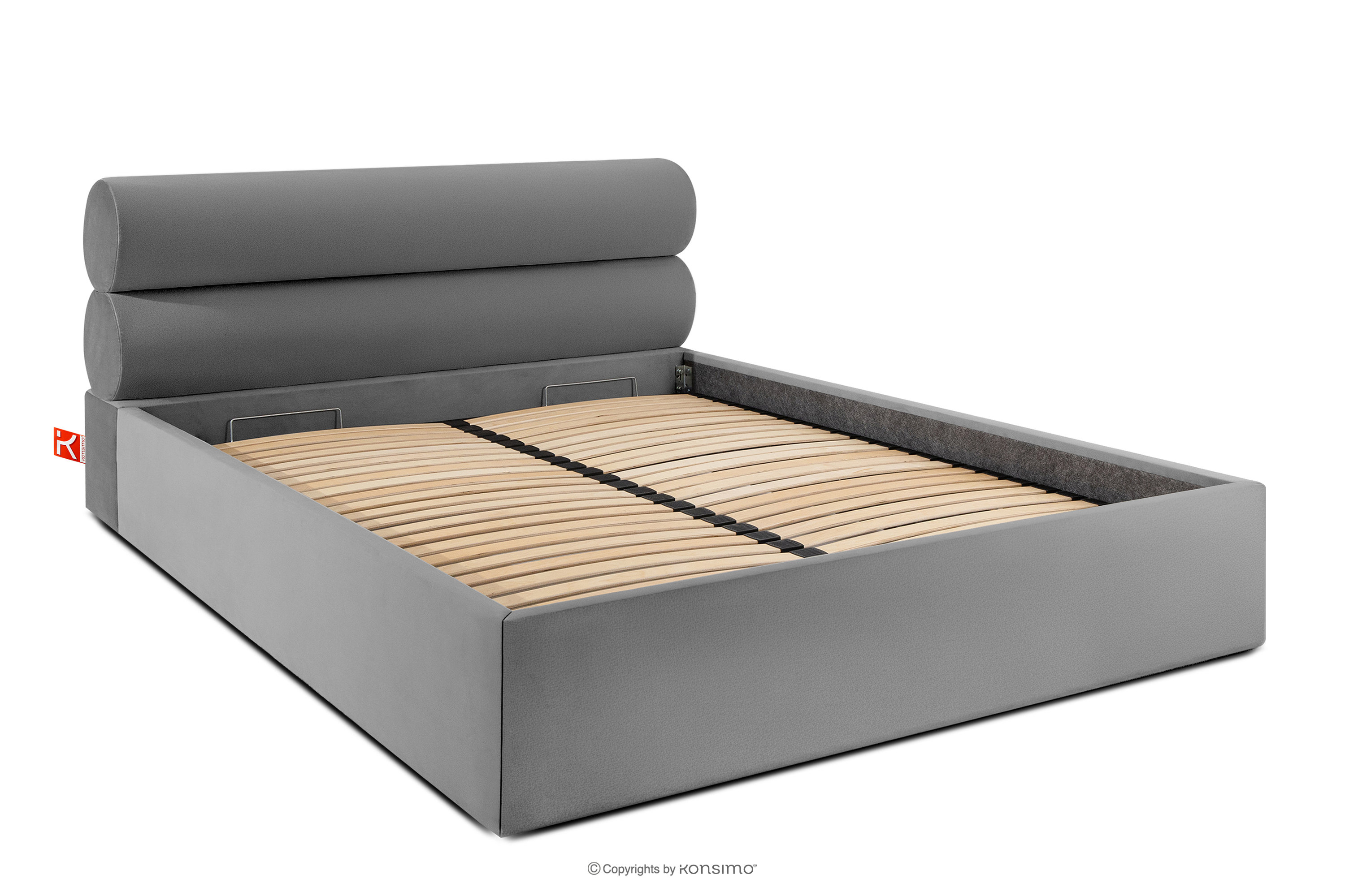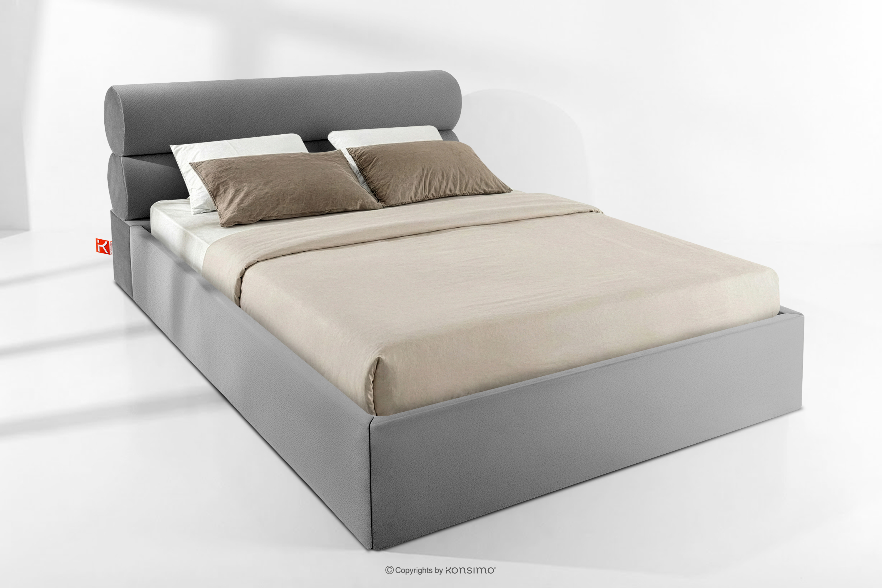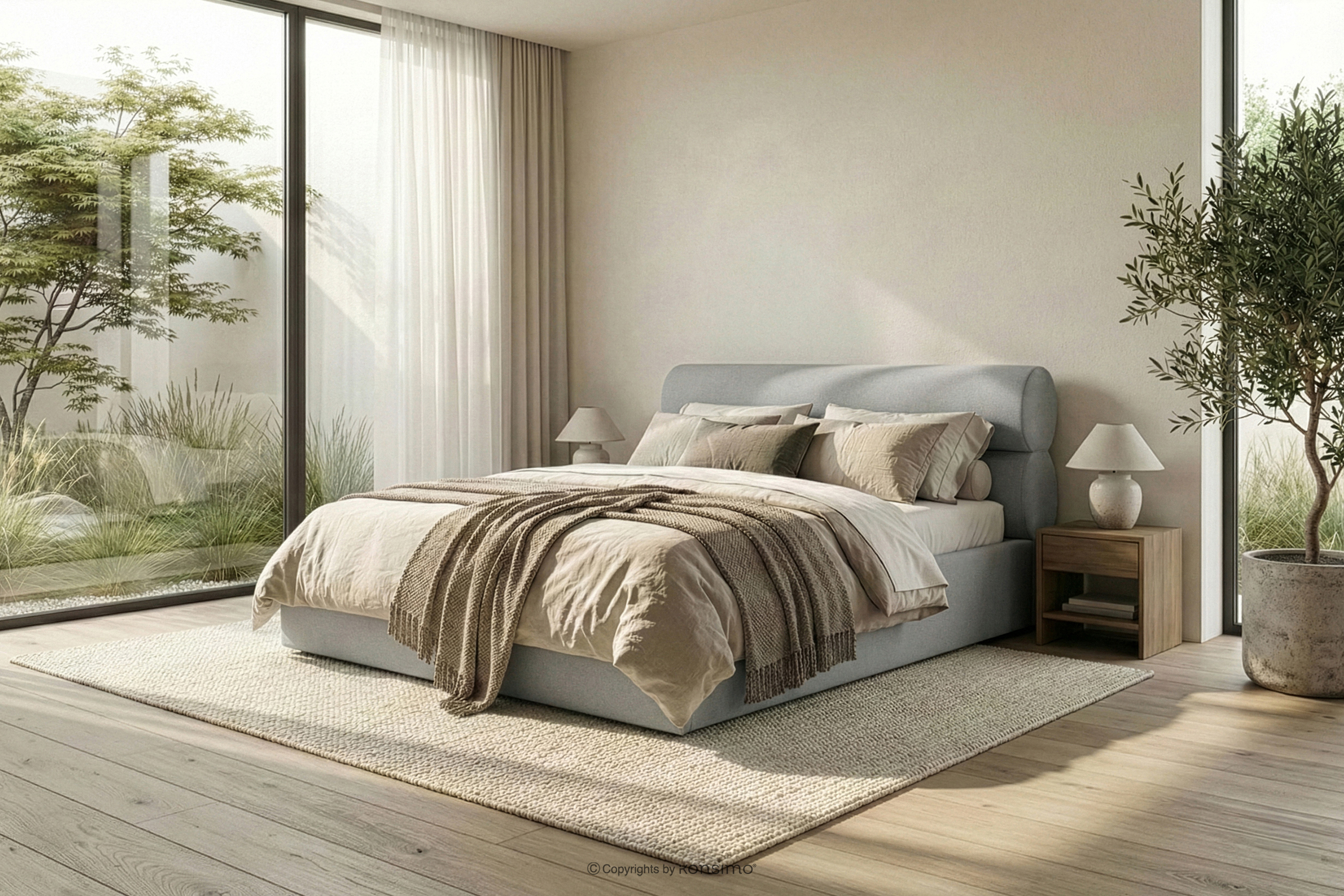 LUNEO zobacz całą kolekcję Łóżko tapicerowane w stylu japandi z pojemnikiem na pościel 180 cm jasny szary- kolor jasny szary