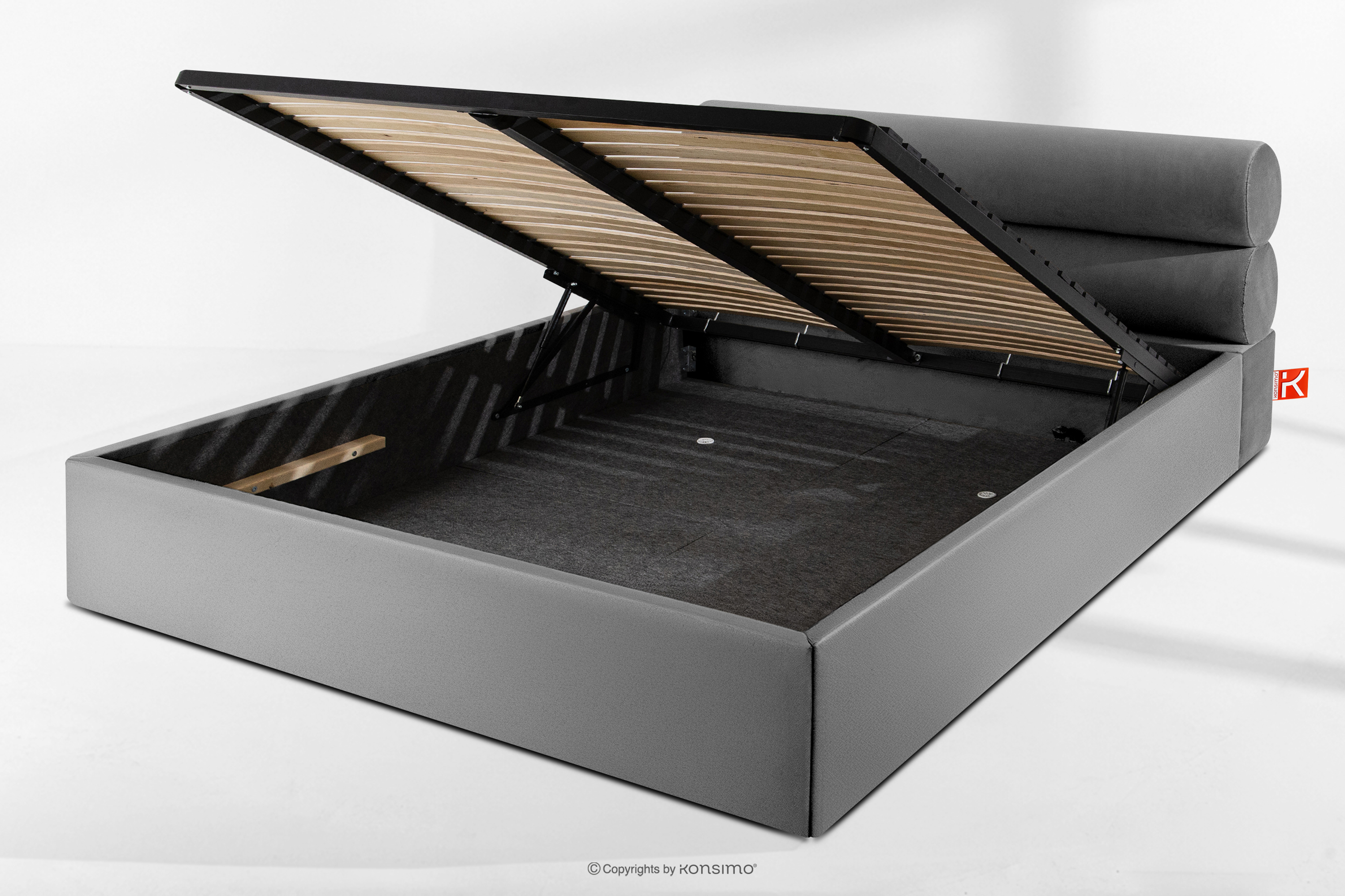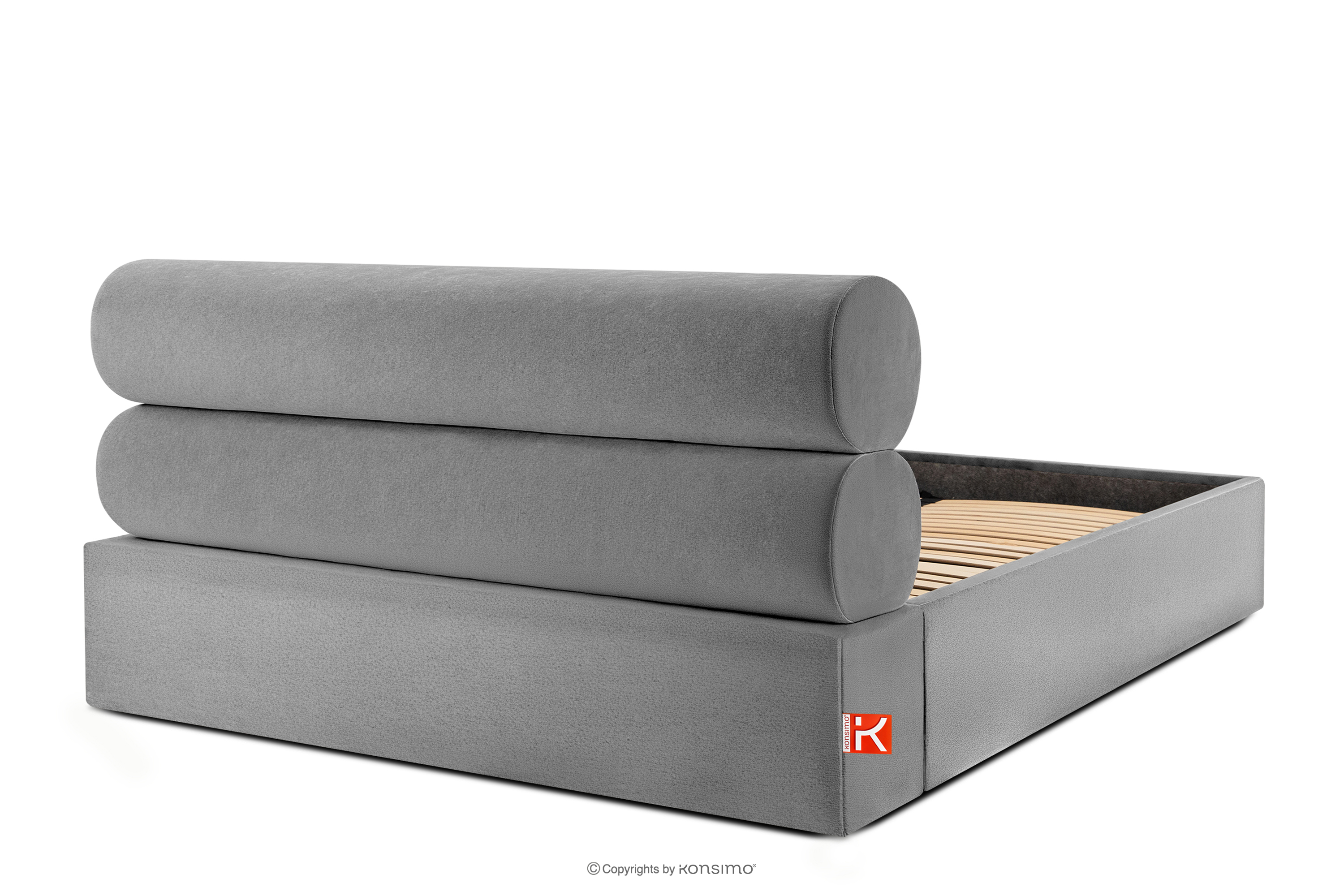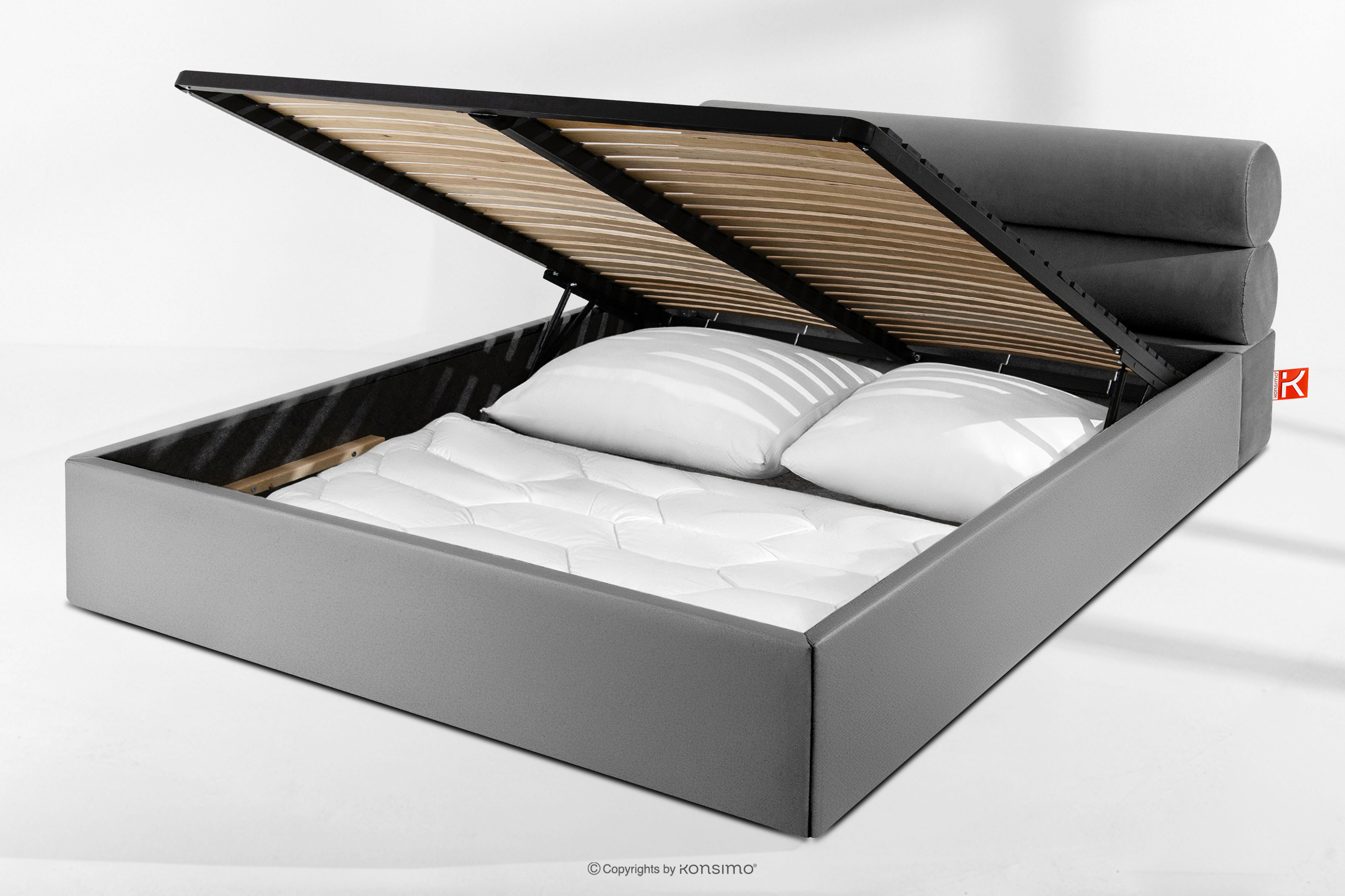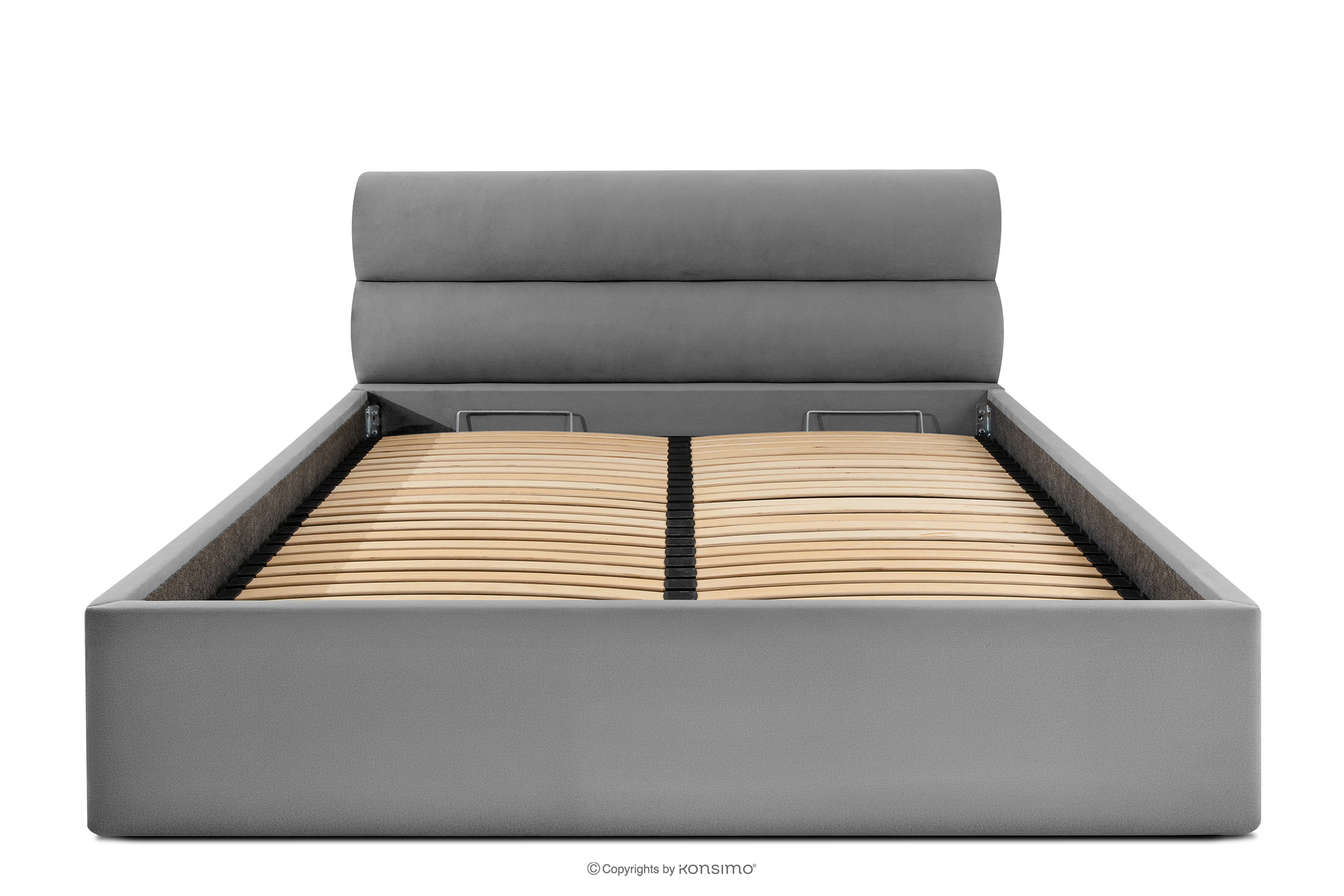 LUNEO zobacz całą kolekcję Łóżko tapicerowane w stylu japandi z pojemnikiem na pościel 180 cm jasny szary- kolor jasny szary