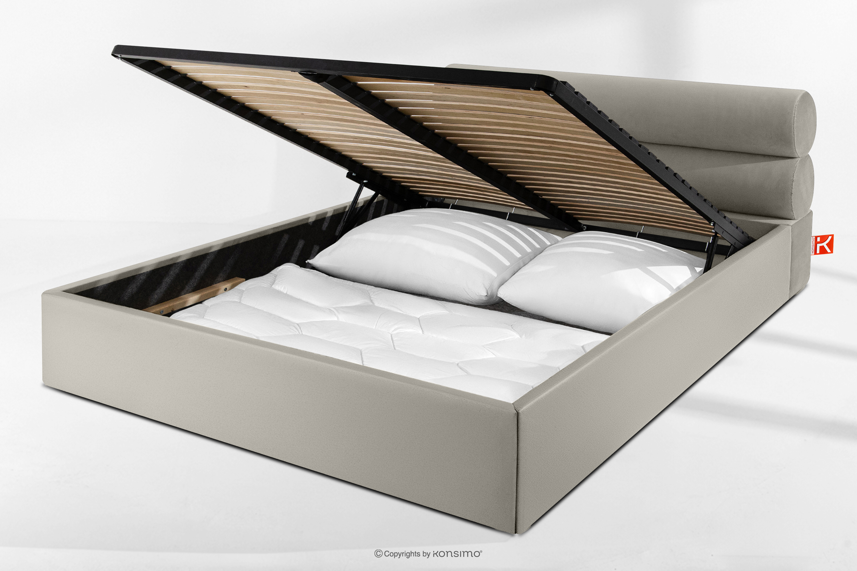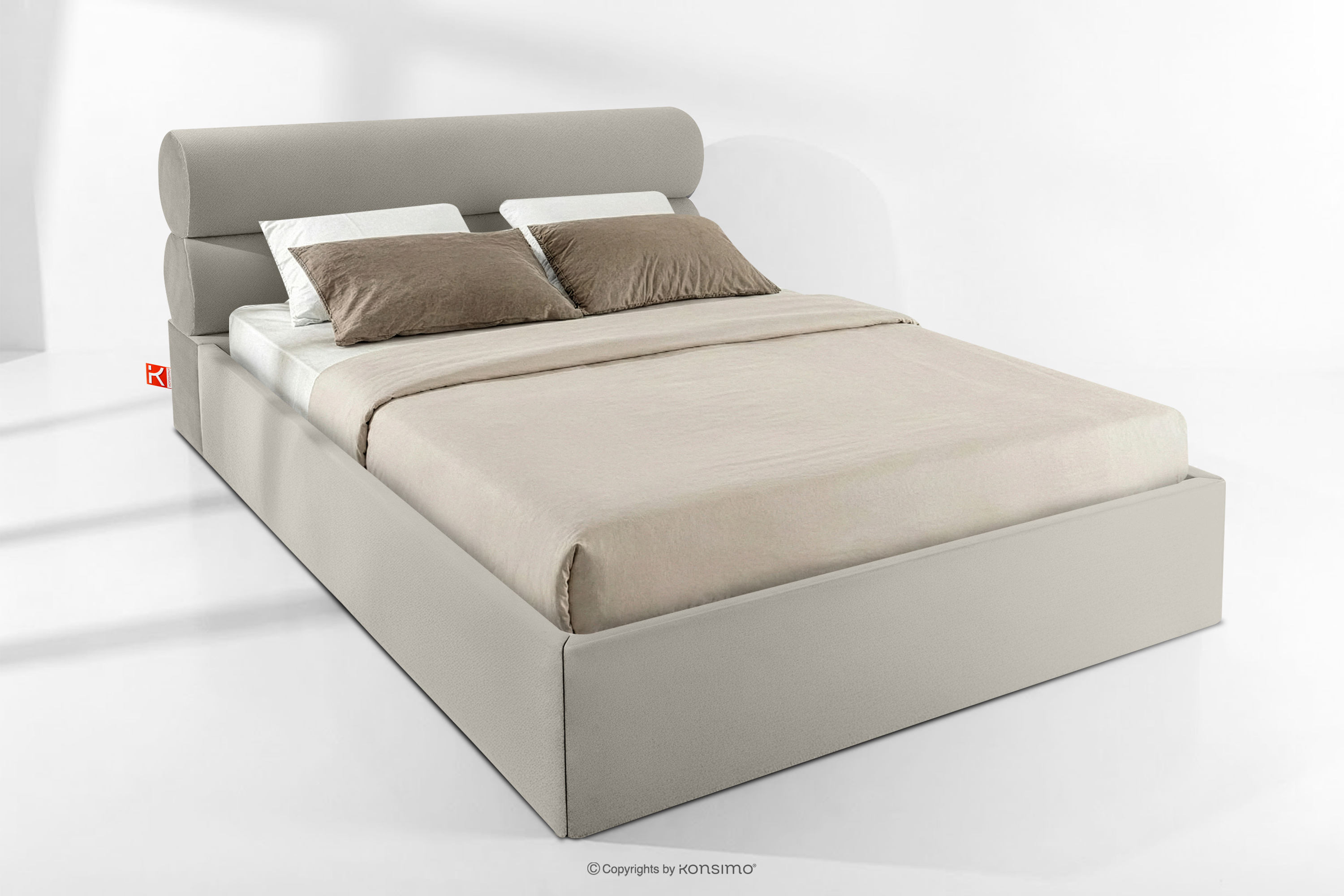 dla produktu Łóżko tapicerowane w stylu japandi z pojemnikiem na pościel 180 cm kremowy