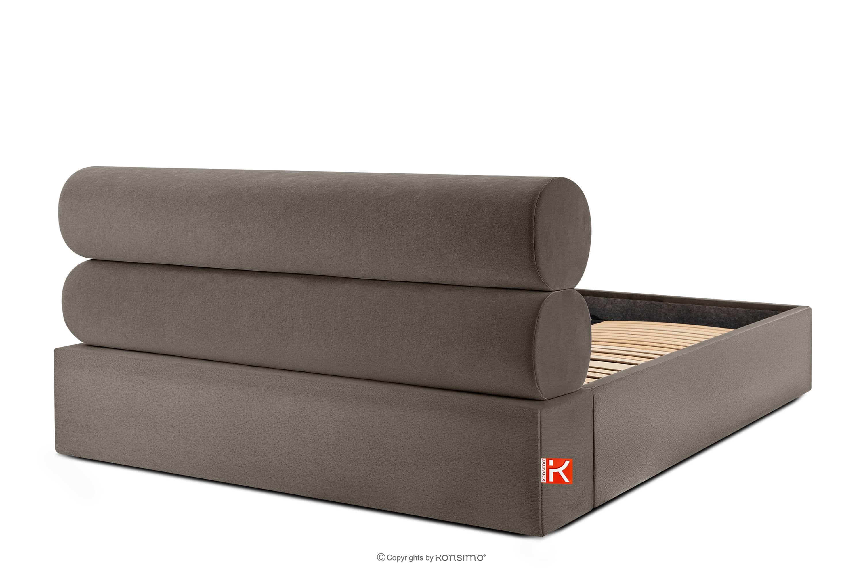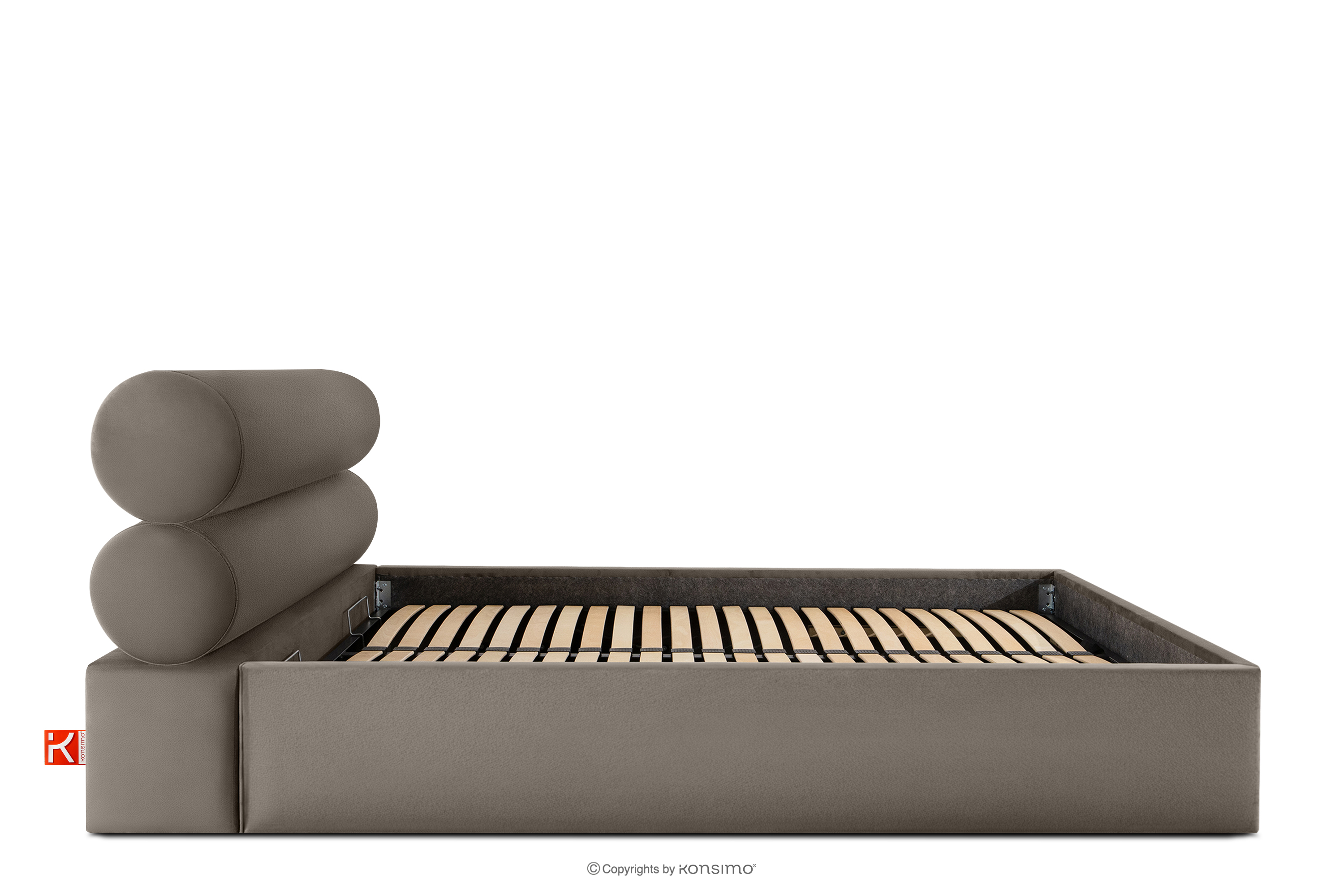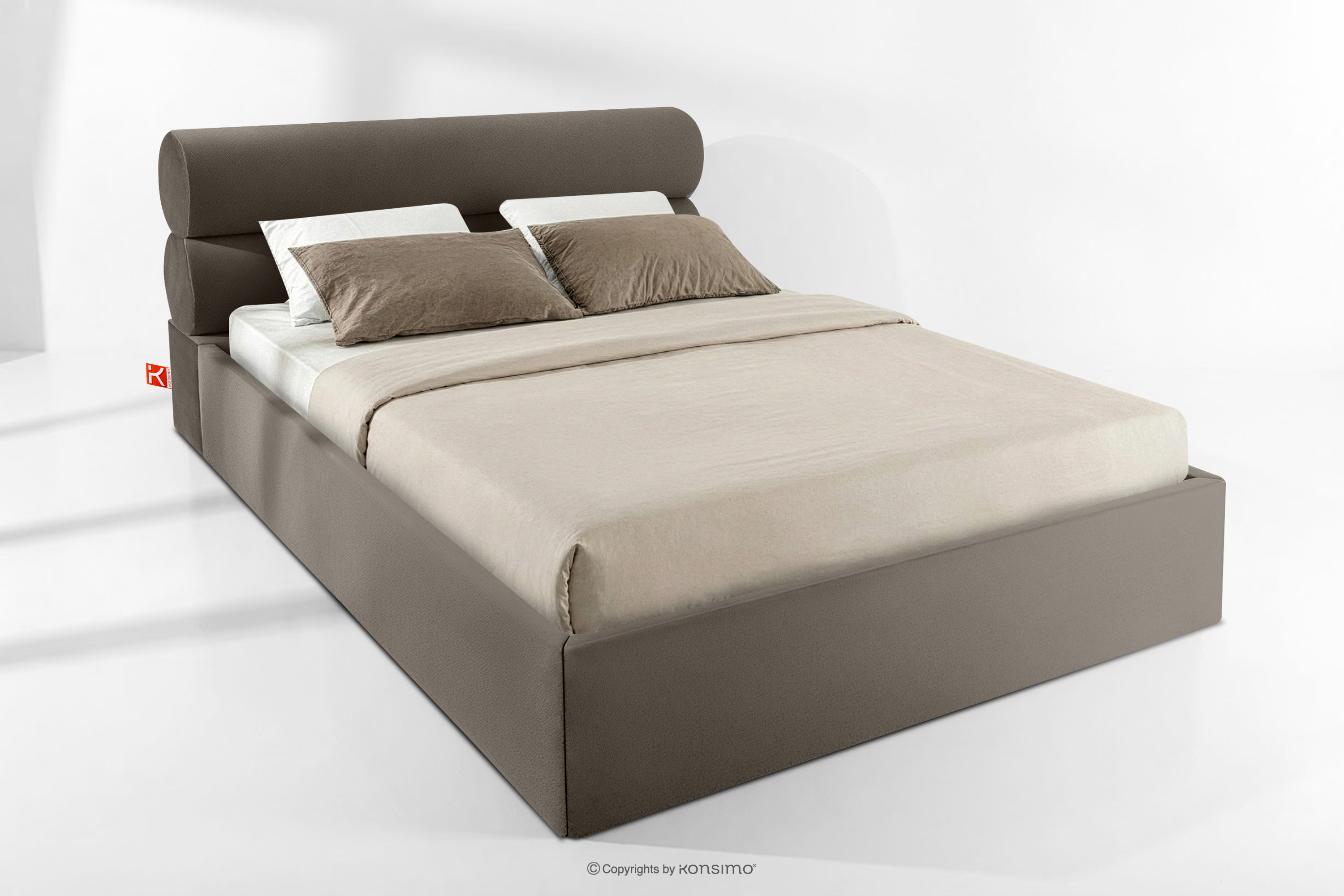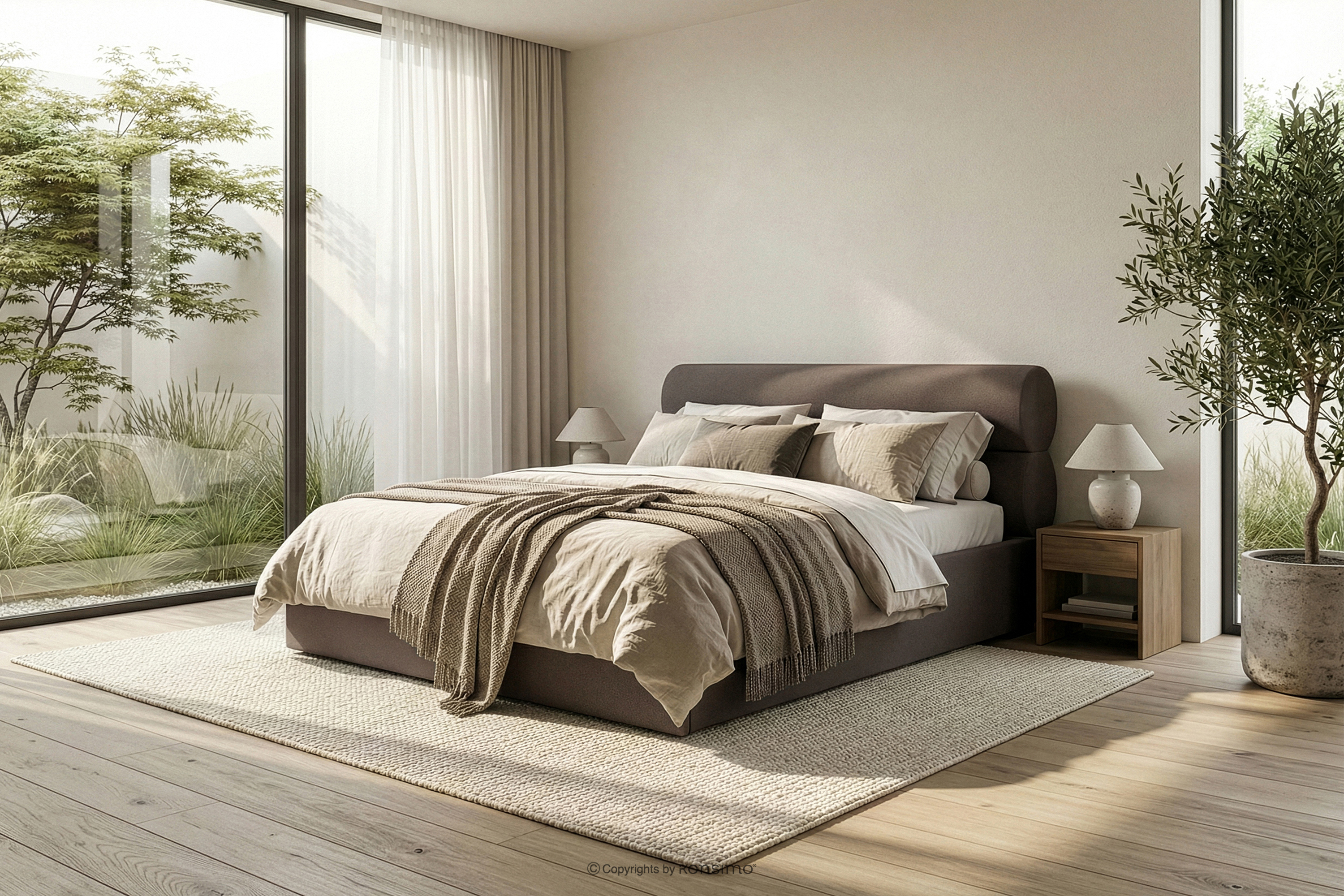LUNEO zobacz całą kolekcję Łóżko tapicerowane w stylu japandi z pojemnikiem na pościel 180 cm brązowy- kolor brązowy
